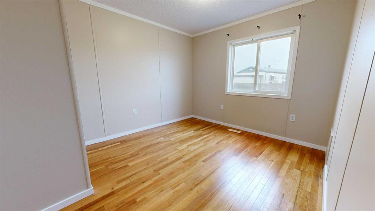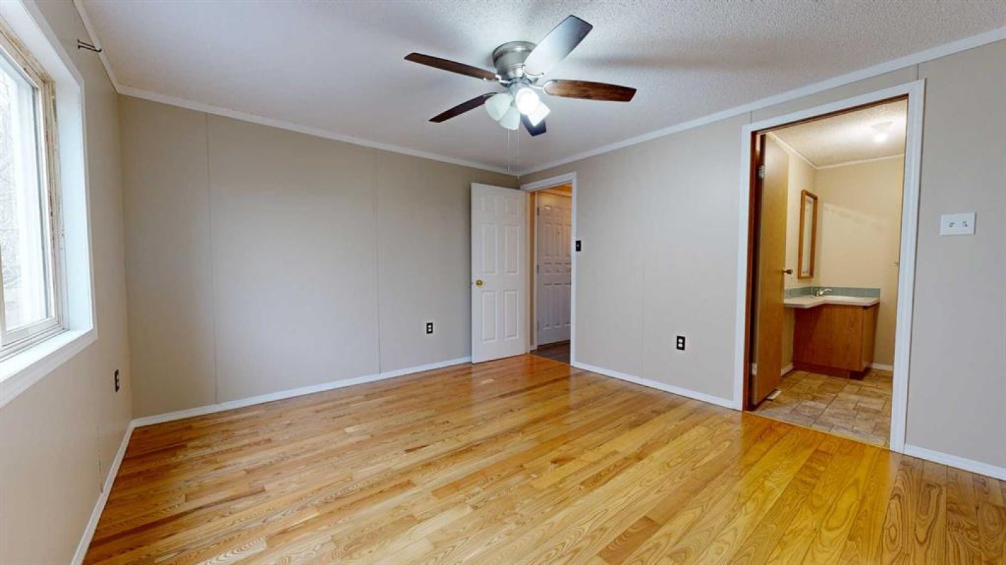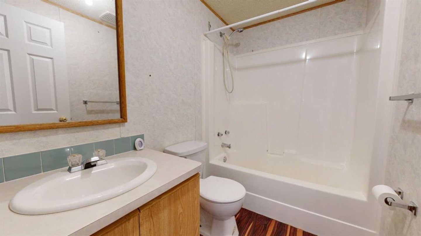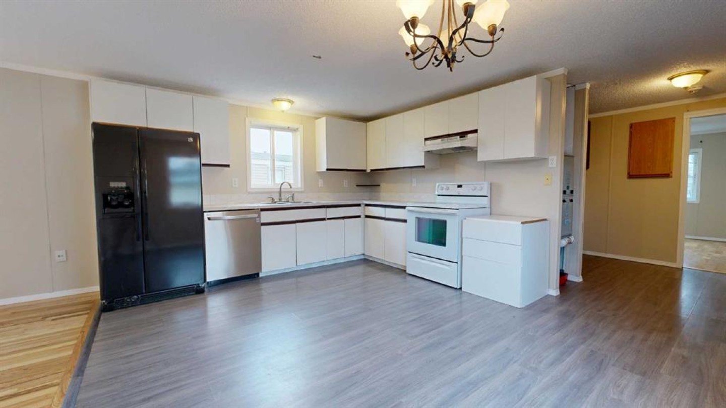 This 1996 modular offers 3 bedrooms, 2 full bathrooms, and an ideal layout with the primary suite on one end, featuring a large closet and 4-piece ensuite, and two bedrooms plus a full bath on the other, divided by a bright, open-concept kitchen, dining, and living room at the heart of the home. Recent updates provide comfort and peace of mind, including a new metal roof (2022), new sewer line, all new insulated skirting for added warmth, and a high-efficiency eco-friendly furnace installed in March 2025, plus fresh paint throughout. Inside, the home stands out with its black ash and exotic ash hardwood floors, adding warmth and character. An entrance addition and a covered deck extend your space, while the fully fenced yard is perfect for pets (with park approval) or outdoor enjoyment. Close to Clairmont school, the splash and bike parks, Clairmont arena, convenience stores, and other amenities. With thoughtful updates already complete, this home is move-in ready and waiting for its next owner. Lot rent of $560/month includes water, sewer, garbage, snow removal, and common area maintenance.