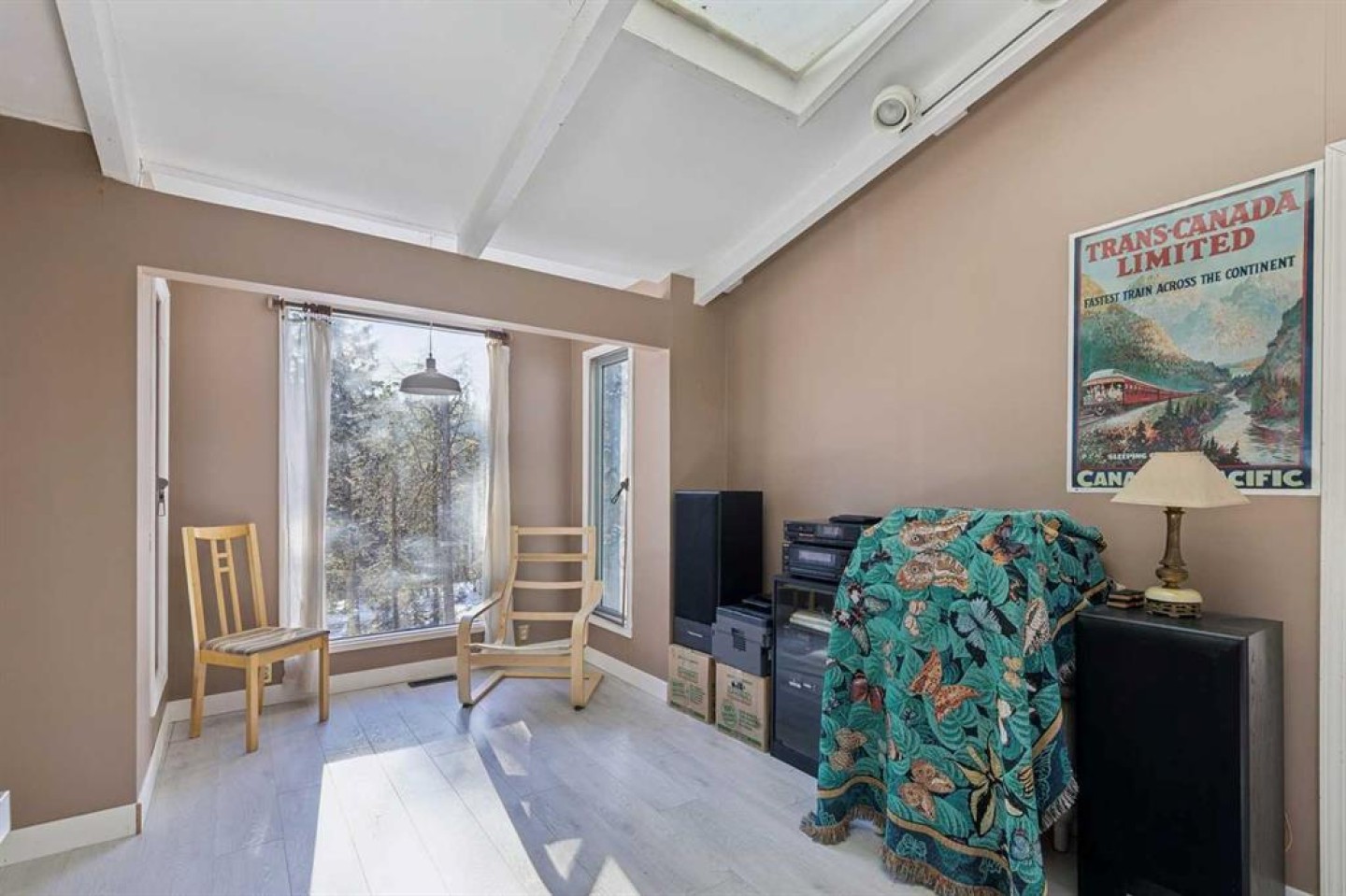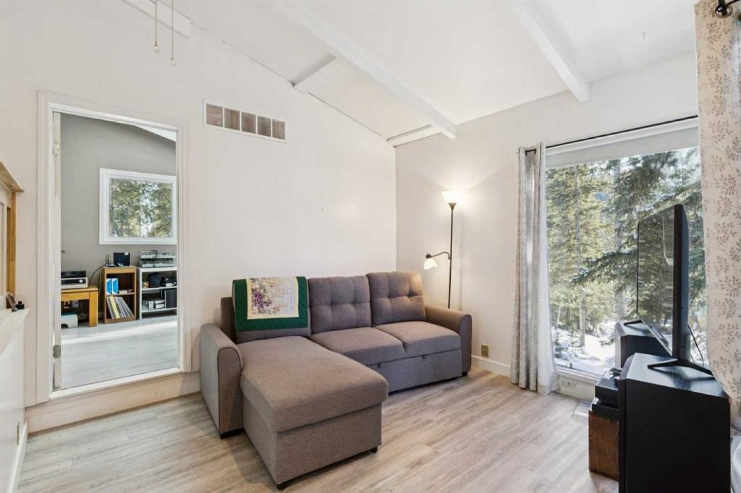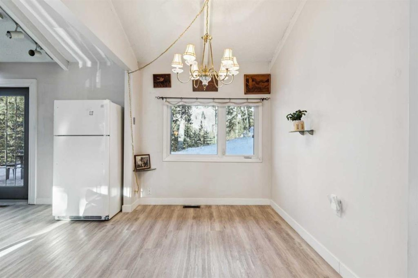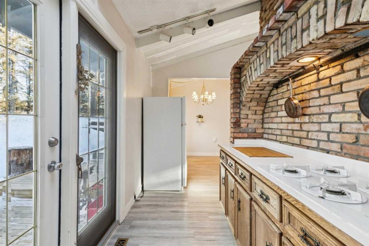ACREAGE RETREAT NEAR THE ROCKIES: YOUR COUNTRY ESCAPE WITH MODERN COMFORT. Discover the perfect blend of country living and convenience with this rancher-style bungalow, ideally situated only 30 minutes from Cochrane with the Rocky Mountains right on your doorstep. This is an unparalleled opportunity to own a peaceful retreat at a very reasonable price. SERENITY AND NATURE : Experience true tranquility. This 1380 sq ft home offers peace and quiet, with the soothing sound of the river flowing in your backyard. Watch deer graze as you enjoy the natural beauty surrounding you. RUSTIC CHARM MEETS UNIQUE ARCHITECTURE: Step into a home where rustic charm inspires. The open-concept design is anchored by a magnificent floor-to-ceiling brick fireplace, creating a warm, cohesive aesthetic. On one side, the 13-foot vaulted living room ceiling provides a cozy space to enjoy the crackling warmth of a wood-burning fire. On the other, the masonry transitions into a stunning brick cooking alcove in the kitchen, connecting the home's various spaces seamlessly from your morning coffee to evening relaxation. This unique home is meticulously maintained and offers a well-thought-out layout, including a dining room, a very large den, and an all-season sunroom. It features two bedrooms and two full baths. The primary bedroom quarters are nicely separated for privacy and include a separate entrance, offering the potential for a home business or an income-generating rental space. Recent upgrades enhance the home's value, including new vinyl plank flooring throughout, new insulation in the crawl space, and a deicer installed on the North side of the roof. The 24.5’ X 14” rear deck is perfect for entertaining, featuring ample space for a large BBQ and gathering, along with a relaxing sauna. Included in the price are two massive sheds (16’x12’ and 8’x18’), currently used as a shop and for additional storage and a log splitter. For the outdoor enthusiast, this is a dream come true. With 40 km of groomed trails, camping, fishing, hiking, mountain biking, and cross-country skiing literally on your doorstep, adventure awaits. The property is within walking distance of two rivers and the confluence of the Waiparous Creek and Ghost River. A short drive will take you to the Ghost Lake recreation area and further on to Canmore. Don't miss this little gem—opportunities like this don't come around often!