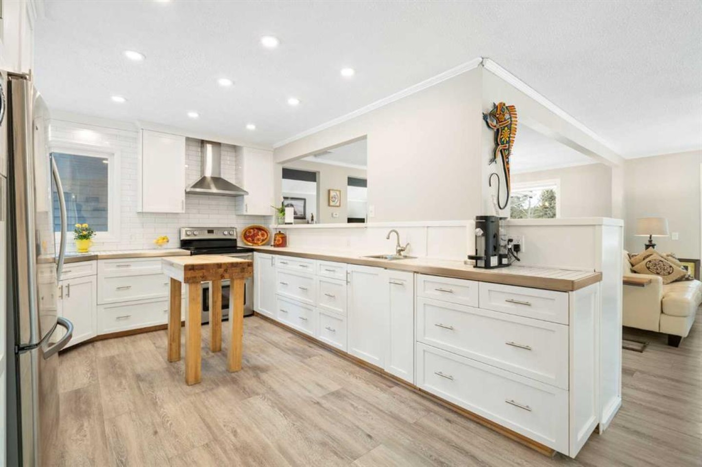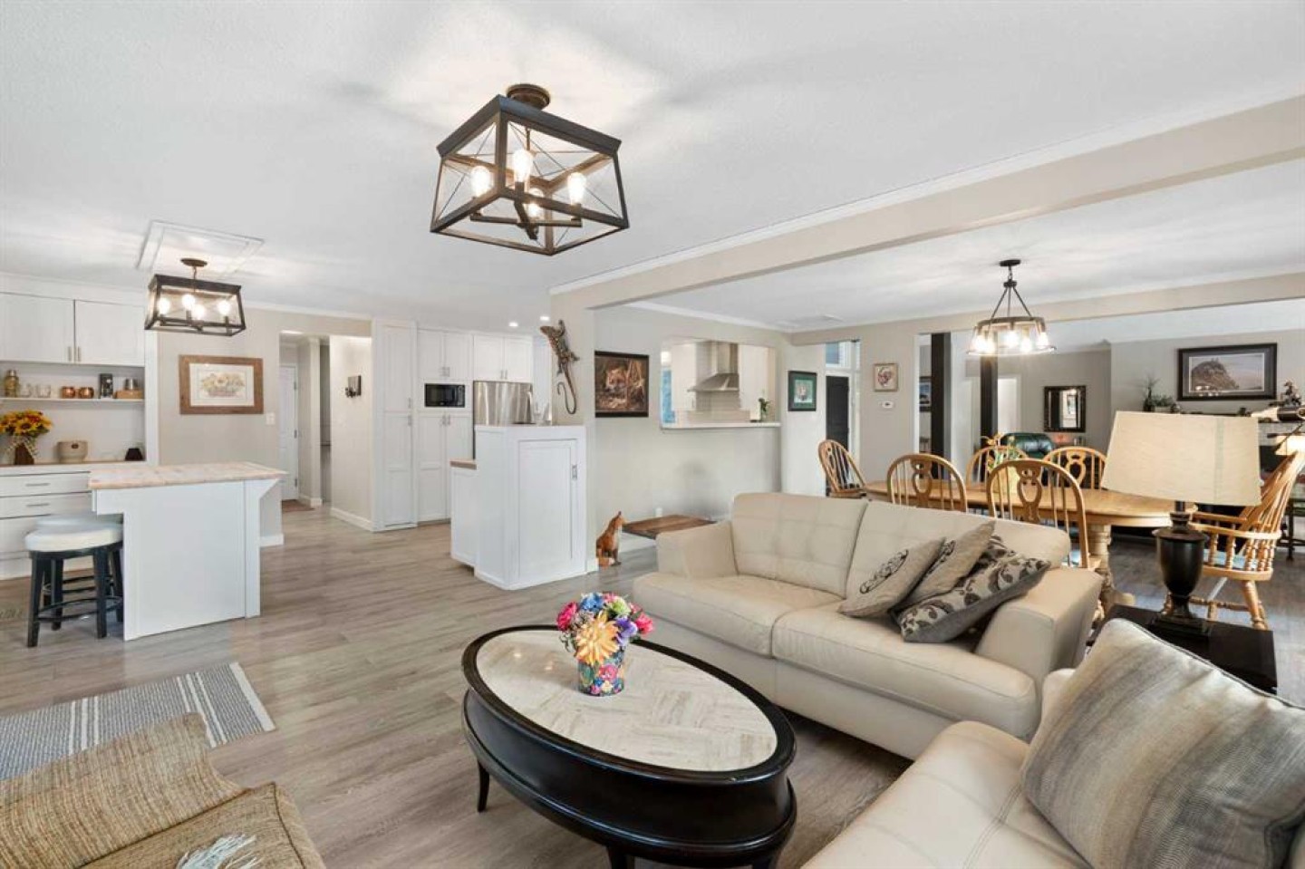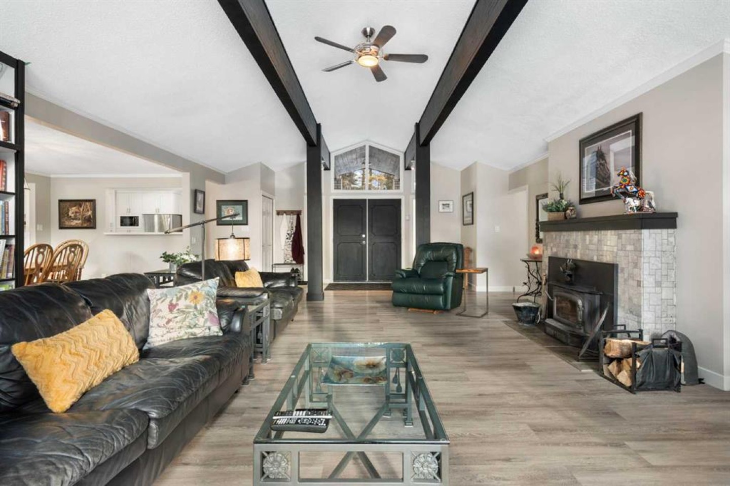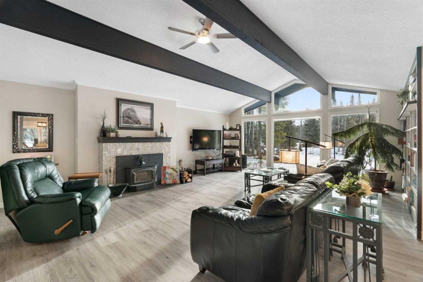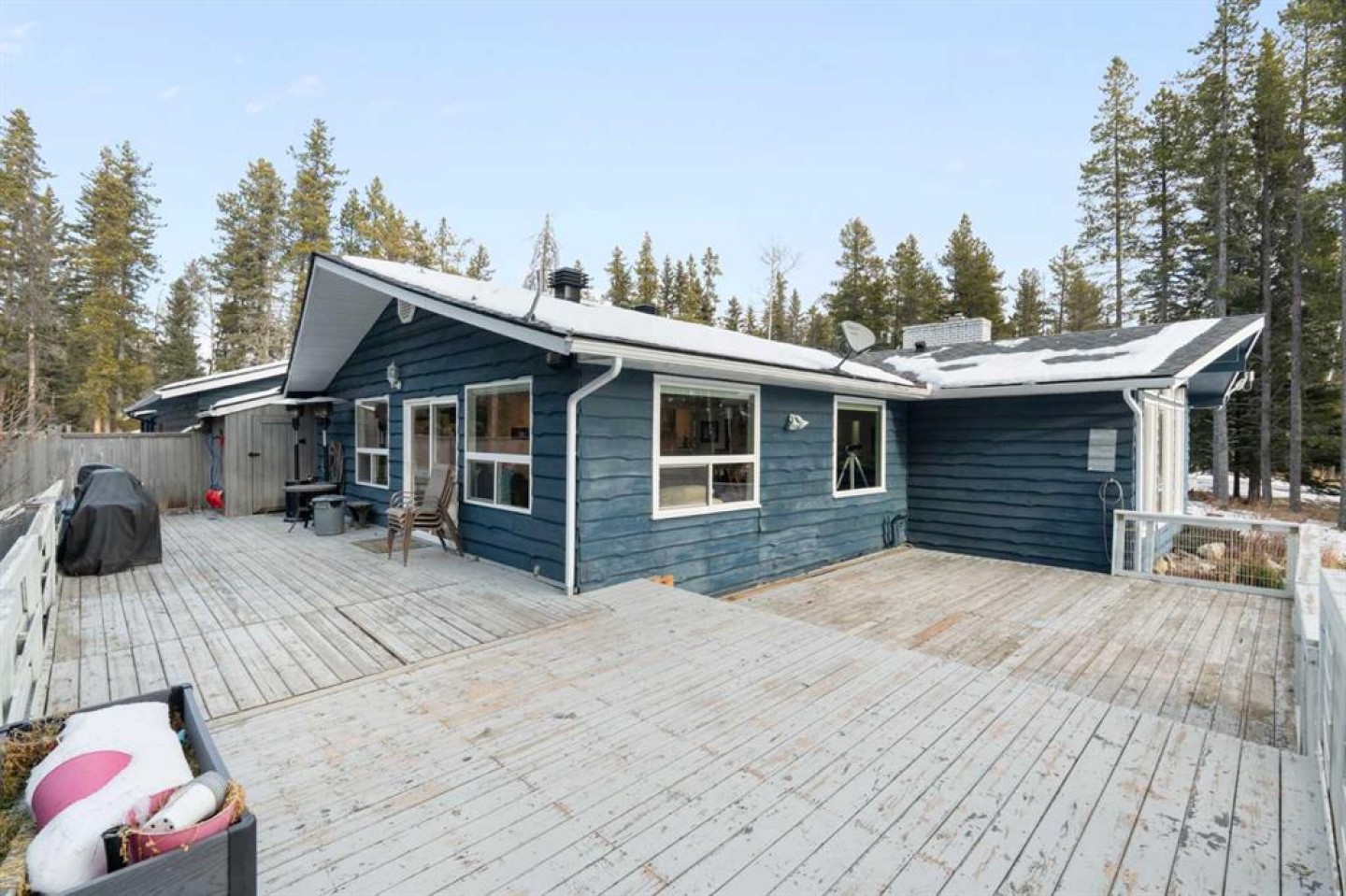 Set on a private and beautifully treed 4-acre estate parcel in West Bragg Creek, this exceptional property offers a rare blend of refined country living, modern comfort, and equestrian capability—just 7 minutes to Bragg Creek and within easy reach of Calgary. Boasting approximately 2,400 sq ft above grade, with 762 sq ft in the lower level (plus a crawl space), the home is thoughtfully designed for both elegant entertaining and everyday living. A dramatic Vaulted Family room anchors the residence with soaring vaulted ceilings, a wood-burning fireplace, and expansive windows framing breathtaking natural views in every season. The kitchen, dining, and family spaces flow seamlessly to an impressive wraparound deck, lower level reinforced to support an above ground outdoor pool and a deck storage room. Also featuring a private hot tub area under the stars—perfect for summer gatherings or quiet evenings immersed in nature. The primary suite is a private retreat with a coffee bar, oversized walk-in closet, and doors leading directly to the rear deck, complemented by a 3-piece ensuite. Two additional bedrooms, a full bath, and main-level laundry complete the living space. An attached heated and insulated garage with dog door and kennel, along with two fully fenced dedicated dog runs, caters perfectly to acreage living. An additional three-car carport provides ample covered parking for vehicles, trailers, or recreational equipment. There is a large shed off the deck for patio furniture storage, a small tool storage shed, and a skid mounted, five cord wood shed. A backup emergency generator ensures year-round peace of mind. The lower level offers a large recreation room (ideal for a home gym), a home office, utility space and pump room, and abundant crawl-space storage—perfect for a media lounge, or hobby space. Outdoors, manicured lawns, mature trees, and a tranquil pond with bridge create a secluded, park-like setting. The property is partially fenced with the East and North sides open, and ample spare posts on site. It is zoned for up to four horses, making it ideal for equestrian enthusiasts who value both beauty and functionality. Enjoy starry nights, quiet walks along the pond, or relaxing in the hot tub surrounded by nature. A rare offering that combines luxury, land, lifestyle, and location in one of the Foothills’ most coveted communities. Large Upgraded Windows, 1200 sq ft main deck, 96 sq ft master deck.