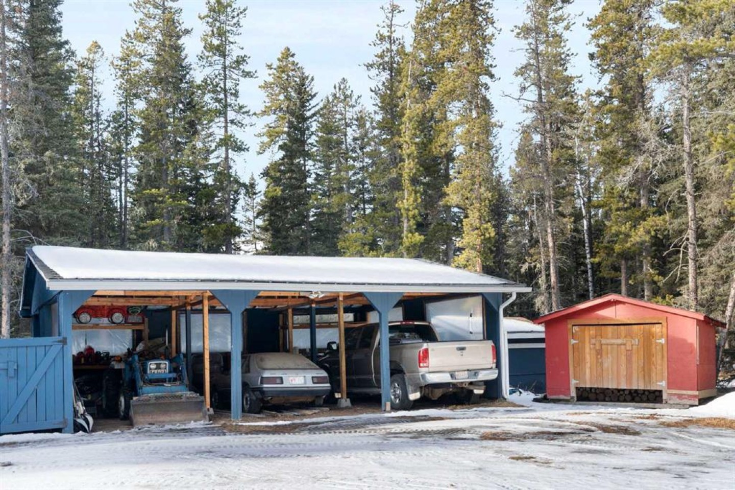 Three Sheds Total: Red Wood Shed on Skids (Holds 5 Cords), Tool Shed, Patio furniture Shed