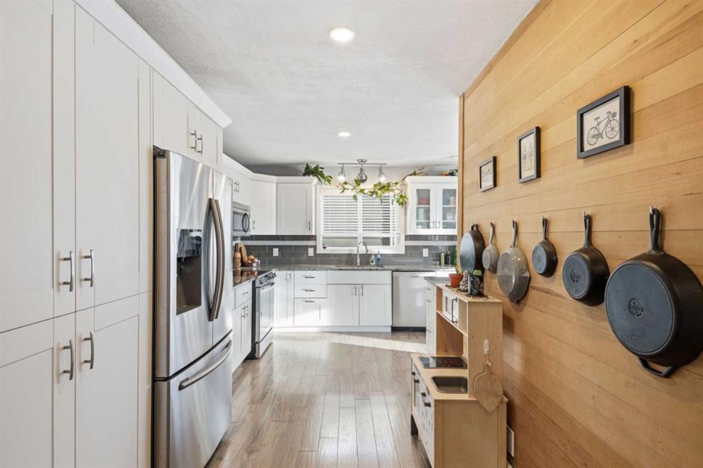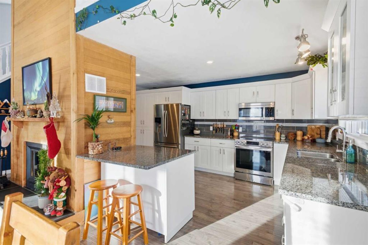 ***OPEN HOUSE Saturday & Sunday Jan. 3 & 4 from 1pm-3pm***Welcome to this beautifully renovated 4-bedroom, 3-bathroom home, ideally located within walking distance to the coffee/ice cream shops, dining, and amenities of downtown Cochrane. Thoughtfully updated from top to bottom, this property offers exceptional versatility, comfort, and excellent income potential with a basement kitchen, featuring a separate entrance. Recent upgrades include a fully renovated kitchen and bathrooms, new flooring, fresh paint, updated light fixtures, a newer roof, hot water tank, furnace, and Jeld-Wen windows and doors. The developed basement features new carpet and paint, along with a wet bar/kitchenette—ideal for a rental or extended family living. The basement was previously rented for $1200/month. The main level showcases an open-concept design with impressive 14’ vaulted ceilings and a wood-burning fireplace at the center of the home, creating a warm and inviting focal point. The updated kitchen offers newer cabinetry, granite countertops, and stainless-steel appliances. Main Floor Laundry adds everyday convivence. The primary bedroom is also conveniently located on the main level and features a walk-through closet, 3-piece ensuite and French door leading to the back yard. Upstairs, you’ll find two additional bedrooms with generous storage, an open office area, and a 4-piece bathroom. The private backyard is perfect for entertaining and relaxing, featuring an oversized deck with pergola, a large yard, and an impressive oversized 24’ x 24’ double garage with 10’ ceilings and in-floor heating. Just steps from the Tim Bannister Memorial Ice Rink and within walking distance to Cochrane Christian Academy, Cochrane Valley Montessori School, and Rocky View School, this move-in-ready home offers an outstanding combination of location, upgrades, and income potential.