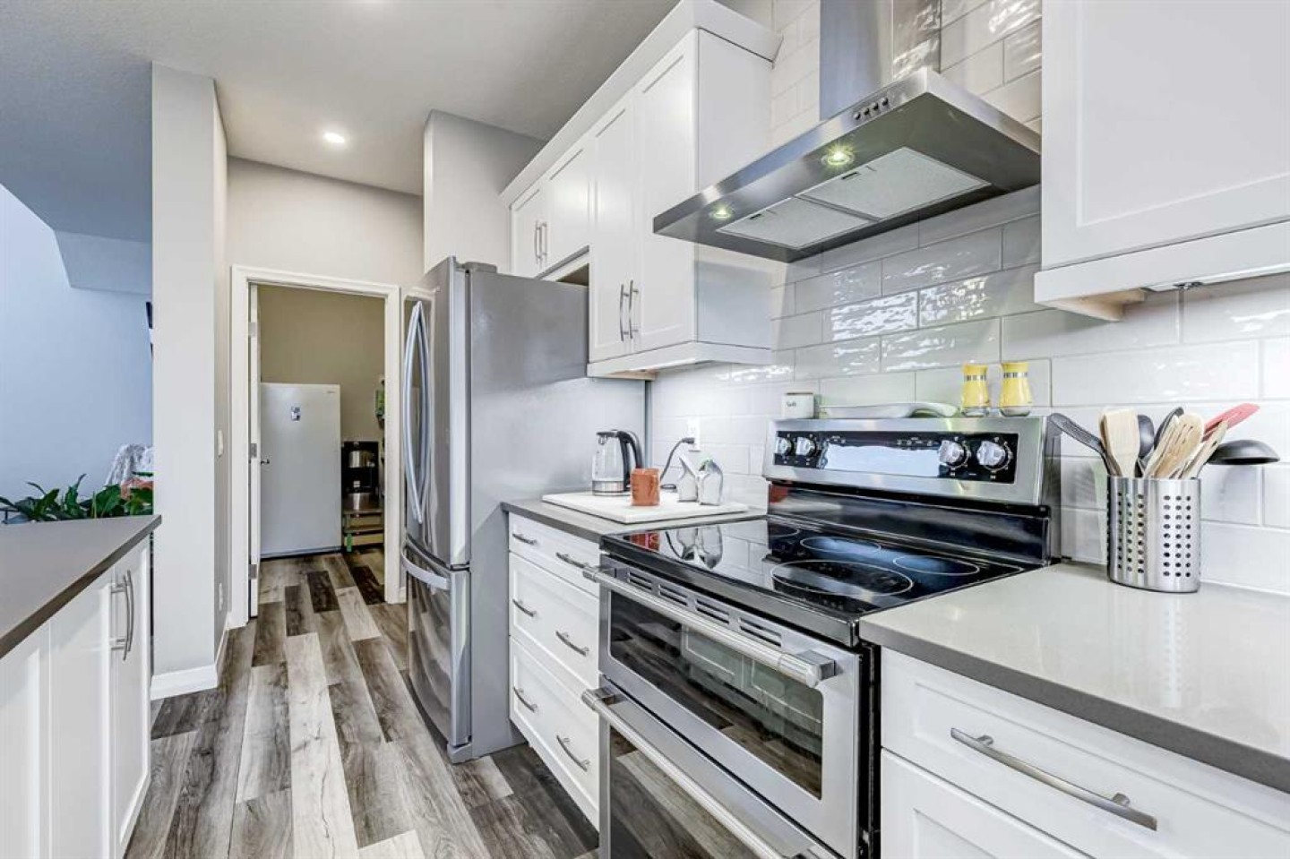 OPEN HOUSE SUNDAY JAN 11 (12-2pm). Perfectly positioned on a prime corner lot in the vibrant, family-oriented community of Evanston. Boasting exceptional curb appeal with new siding and a unique, weather-resistant bamboo fence, this property stands out as a true neighborhood gem. A Light-Filled Main Level Step inside to a bright, sun-drenched living space defined by soaring vaulted ceilings and an expansive open-concept layout. The interior is flooded with natural light through a wealth of oversized windows, creating an immediate sense of home. The gourmet kitchen is a chef’s delight, featuring timeless white cabinetry, premium quartz countertops, and high-end stainless steel appliances. A central island serves as the heart of the home, designed for both effortless meal prep and social gatherings, while a dedicated coffee and appliance station leads to an impressively oversized walk-in pantry and storage room. The dining area flows effortlessly to the rear deck, making indoor-outdoor entertaining and grilling a breeze. The Tiered Privacy Layout The intelligent design of this home offers distinct zones for every member of the family across its unique tiered levels. The second level features a spacious bedroom and a full 4-piece bath, providing an ideal private wing for a teenager, a guest suite, or a quiet home office. Perched on its own private top level, the owner's retreat is a true sanctuary. This primary suite boasts a 5-piece ensuite with "his and hers" sinks, a deep soaker tub, and a separate shower, all complemented by a generous walk-in closet. For added convenience, the laundry space is located on the upper level near the bedrooms, while the vaulted open hallway maximizes the light from the main level's many windows. Expansion Potential & Outdoor Living The unspoiled basement is clean, dry, and ready for your vision. With large windows already in place, there is a clear opportunity to add additional bedrooms or a massive recreation room to suit your lifestyle. Outside, the backyard offers a perfect balance of a functional deck and plenty of grassy space for children and pets. The property is also ideally configured for the future addition of a garage with easy back-alley access. The Evanston Lifestyle Live in a community that offers the best of suburban tranquility and urban accessibility. Evanston is a modern suburban community that provides an abundance of green spaces, top-tier local schools, and quick access to all major roadways and urban amenities.