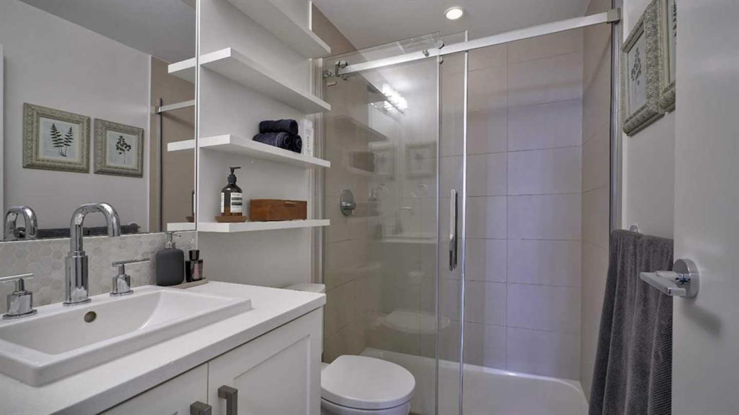Welcome to the best condo in Bridgeland Crossing. This bright, spacious, and immaculately maintained home offers nearly 1,000 sq ft of living space. The large kitchen with its massive island is perfect for entertaining or casual breakfasts in the morning. Just off the kitchen you will find the dining room, something extremely rare in condo living. The living room has oversized windows that flood the space with natural light, making it perfect for any plant lover. Step onto the balcony and you will be amazed by the size, quickly realizing it is one of the largest in the entire building. The first large bedroom is versatile and can easily be used as a bedroom, office, or anything in between. Across the hall is the 4-piece bathroom with a deep soaker tub, ideal for relaxing. The primary bedroom is a true oasis of comfort, easily accommodating a king-sized bed along with additional furniture, and comes complete with a beautifully finished ensuite. On top of that, this condo includes in-suite storage, in-suite laundry, titled underground parking, and a separate storage room conveniently located on the same floor. Bridgeland Crossing is one of the most popular buildings in the city—book your showing today before this home is gone