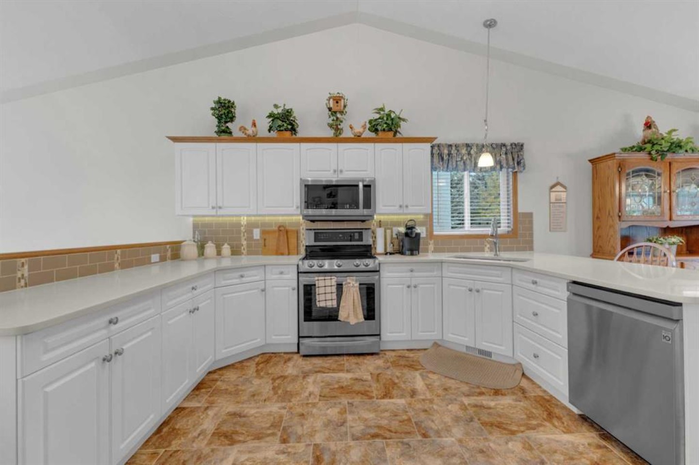 This exceptionally maintained Anders bi-level is anything but ordinary. Built in 1999 and meticulously cared for by the original owners, this home offers a rare blend of quality, character, and thoughtful design. Unlike traditional bi-levels, this home features soaring ceilings and a dramatic south-facing wall of windows stretching from ground level to near the ceiling, flooding the interior with natural light and creating an unforgettable lower-level living space. The layout is unique, intentional, and designed to feel open, bright, and welcoming! With four bedrooms and three full bathrooms, including an updated three-piece ensuite in the primary bedroom, there’s room for family, guests, and flexibility. The main floor offers convenient laundry and a spacious, sun-filled kitchen with quartz countertops, perfect for everyday living and entertaining. The lower level is warm and inviting, featuring in-floor heating, a cozy family room, two additional bedrooms, an updated bathroom, and a dedicated storage room, which is ideal for growing families or multi-purpose living. The attached double garage is a bonus, complete with ample storage and quartz counter workbench, making it perfect for hobbies and projects. Step outside to a fully landscaped, private backyard oasis with mature trees, garden fountain, flower beds, deck, and patio. It is a peaceful retreat you’ll enjoy all season long. Solar panels add long-term value by helping reduce monthly utility costs and supporting energy efficiency. This is a truly one-of-a-kind home in a sought-after Anders location. It is exceptionally maintained, architecturally distinctive, and now priced to attract serious buyers. If you’ve been waiting for something special, this is your moment.