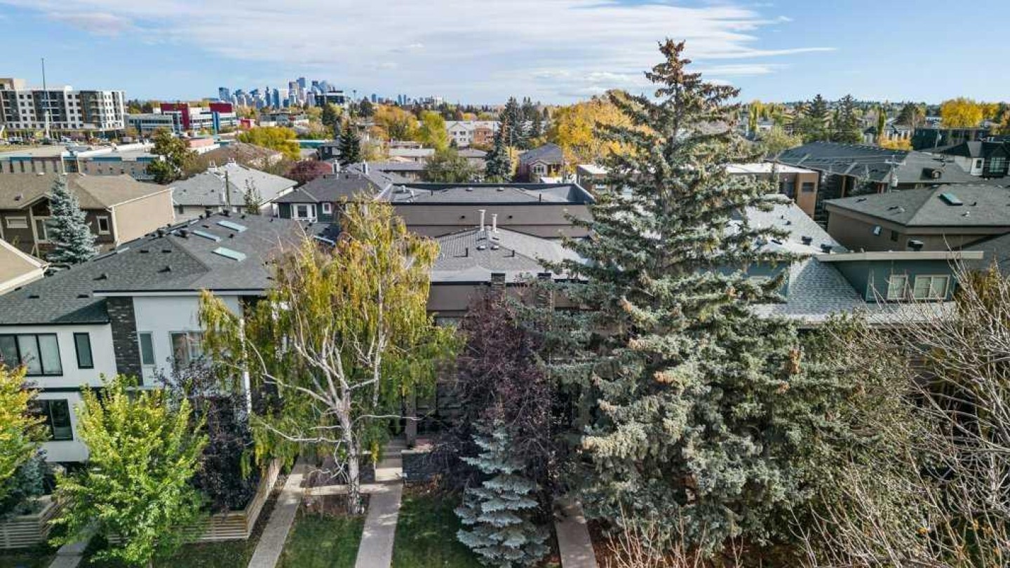 Well maintained, modern, and quiet 2-storey townhome offering nearly 2,000 sq ft of developed living space in the heart of Killarney. This 3-bedroom, 3.5-bath home features 2 bedrooms up and 1 down. The primary bedroom offers high ceilings, double sinks, a spacious shower, and walk-in closet. The second upstairs bedroom includes its own ensuite, plus convenient second-floor laundry. Fully developed basement with a large third bedroom, 4-piece bathroom, and second living room—ideal for guests or a home office. Recent updates include new flooring, fresh paint, and updated light fixtures. Features include a double-sided fireplace between the living and dining rooms, quartz countertops, gas range, stainless steel appliances, and ample storage. Low condo fees, single detached garage, and an excellent inner-city location—just a 3-minute walk to the LRT for an easy commute downtown, with quick access to 17 Ave, Crowchild Trail, transit, and local amenities.
