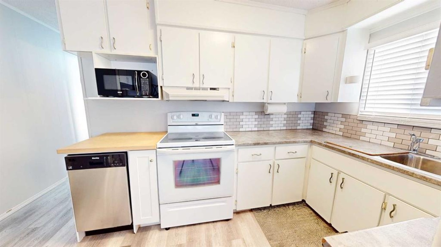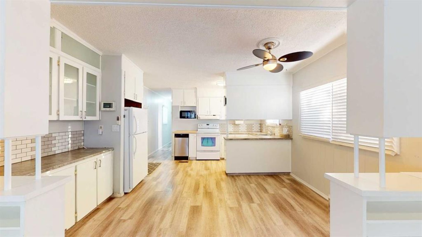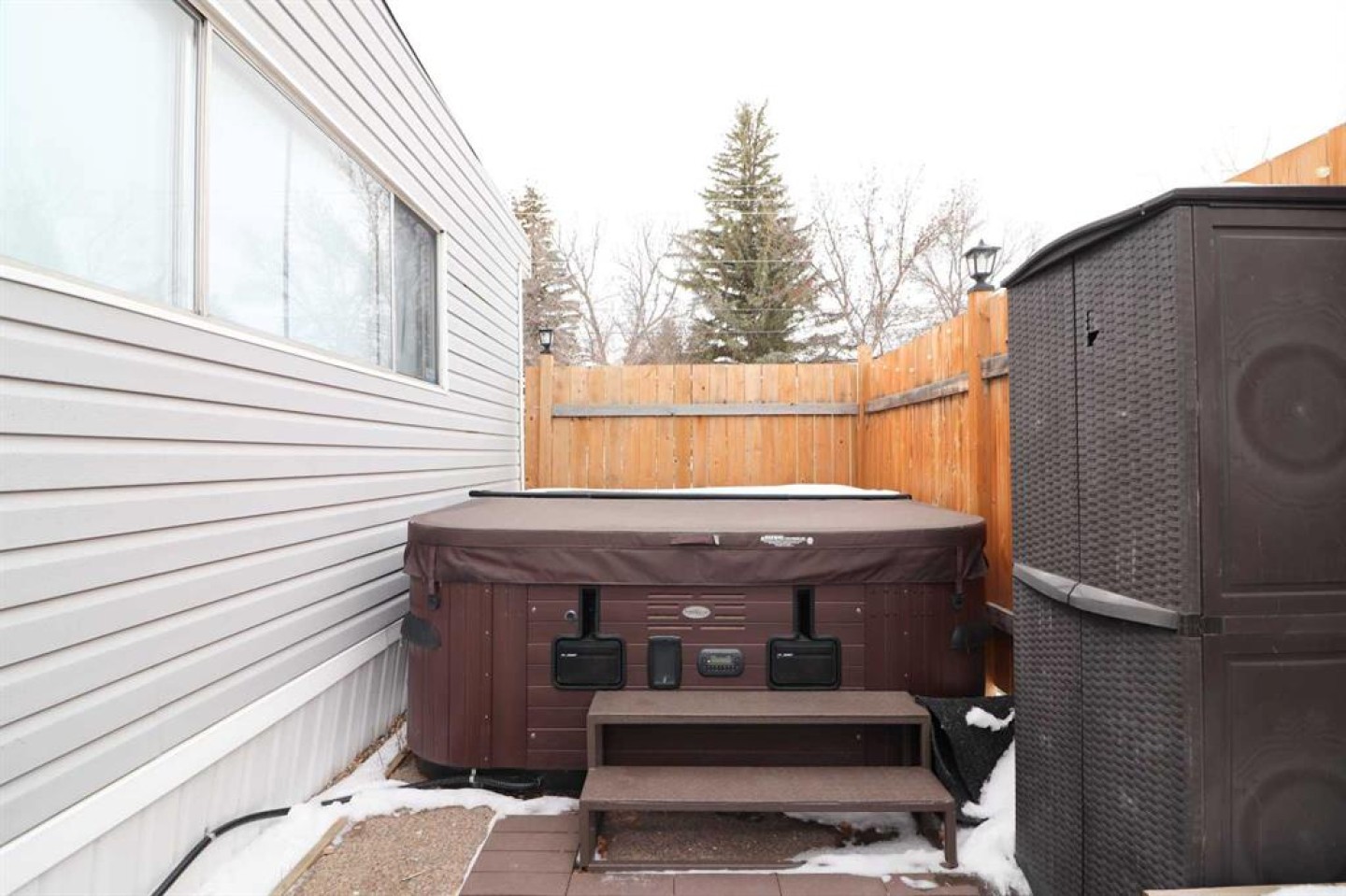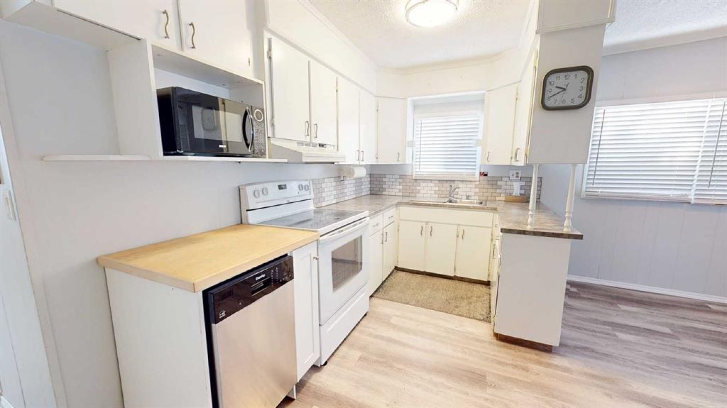 Crestwood Community Mobile Home Park hosts this lovely 3 bedroom, one bath laundry combination home with beautiful features such as an open floor plan, newer large shower, newer window and skylight in bath, fresh paint, newer vinyl plank floor, new central air, new hot water tank, full appliance package, new skirting, new fence and deck. Outside you have your own park like yard that backs onto a park and a private area for your enjoyment while you sit in your hot tub and just relax. Your yard has solar powered aggregate stones that glow, flower gardens and two plum trees. Your hot tub comes with cover, chemicals and headrests. What a perfect place..close to walking paths, shopping, schools and so much more. Lot is big enough to build a garage with park approval. Park is quiet and well cared for. This home offers the opportunity for afforable living and is in immediate move in condition. Utilities average 281.00 per month. Water is billed to the park.