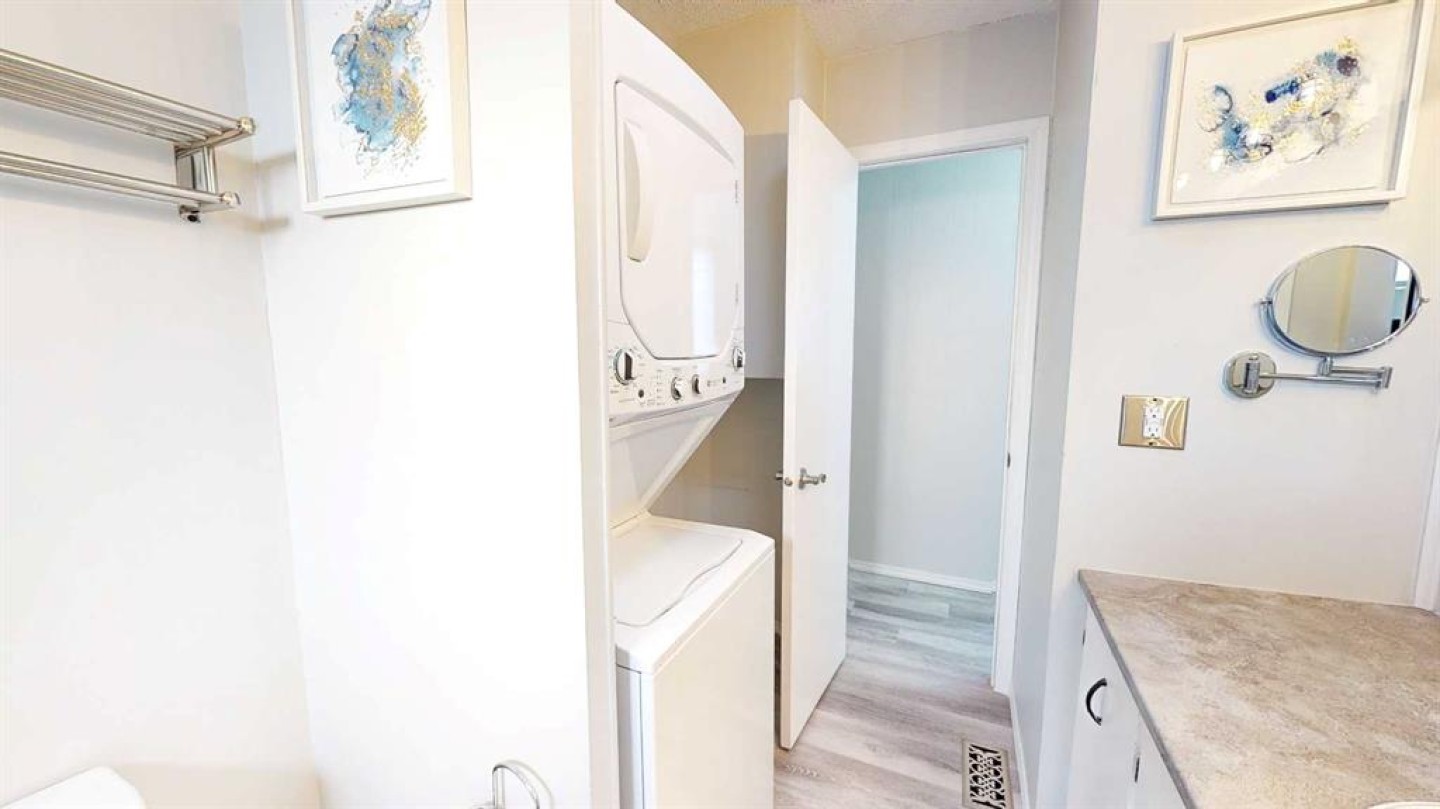Central Air Conditioner, Dishwasher, Microwave, Refrigerator, Stove(s), Wall/Window Air Conditioner, Washer/Dryer Stacked, Window Coverings