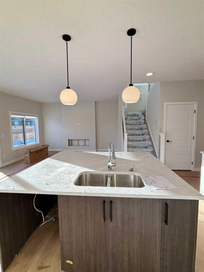Welcome to this beautifully crafted, newly built McKee home located in the sought-after community of Chinook Gate. Designed with both elegance and functionality in mind, this home features an open-concept floor plan that creates a seamless flow between living spaces, perfect for everyday living and entertaining alike. The main floor offers a rare and highly desirable open concept home office. A spacious kitchen anchors the heart of the home, showcasing stylish upgrades, ample cabinetry, and generous counter space that will impress any home chef. The inviting living area is highlighted by a contemporary fireplace, while 9-foot ceilings on the main floor enhance the sense of space and natural light throughout. Upstairs, you’ll find three generously sized bedrooms, including a luxurious primary retreat complete with a well-appointed ensuite bathroom. A large bonus room provides flexible living space and is bathed in natural light from expansive windows, making it the perfect area for relaxation, media, or family gatherings. Additional features include an optimal south-facing backyard, ideal for enjoying sunlight throughout the day, and a convenient side entrance offering added versatility and future potential. Located in a vibrant, family-friendly community, this exceptional McKee home combines thoughtful design, quality craftsmanship, and modern comfort in one outstanding package.