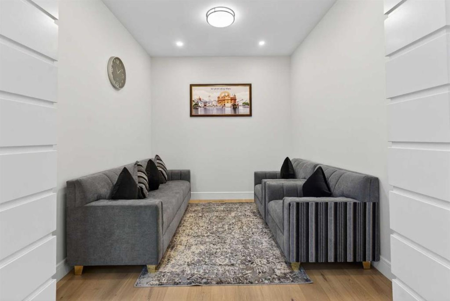 Welcome to this exceptional custom-built luxury residence situated in the prestigious community of Coopers Crossing , this refined two-storey home offers nearly 4,000 sq.ft. of meticulously designed living space, blending elegance, comfort, and timeless craftsmanship. With 4 generously sized bedrooms and 3.5 beautifully appointed bathrooms, this home delivers a grand first impression from the moment you step inside the impressive front foyer, featuring soaring double-height ceilings, a bespoke staircase with wrought iron railing, and a striking designer chandelier. The main level showcases elevated finishes and exceptional attention to detail, highlighted by rich custom millwork, expansive ceilings, a private office, and a versatile flex space suited for modern luxury living. The gourmet kitchen serves as the centerpiece of the home, complete with premium built-in appliances, a sleek gas range, thoughtfully designed cabinetry, and sophisticated finishes throughout. The adjoining dining area comfortably accommodates a 10-person table, ideal for hosting elegant gatherings, while the oversized island provides additional seating and functionality. The living room is both refined and inviting, offering custom built-ins and a dramatic fireplace framed by bold black tile, creating a modern yet timeless focal point. Upstairs, the custom staircase leads to an oversized bonus room with built-in entertainment cabinetry, perfect for relaxation or entertaining. The primary retreat is truly impressive, featuring double-door entry, designer wall detailing, integrated speakers, and a stunning fireplace. The spa-inspired ensuite is equipped with a double vanity, deep soaker tub, and an expansive steam shower, delivering a true resort-like experience. Two additional spacious bedrooms complete the upper level, each offering its own walk-in closet. The fully developed basement continues the luxury theme, designed as an entertainer’s retreat with custom built-ins and a generous wet bar ideal for showcasing fine spirits. A fourth bedroom and full bathroom complete the lower level, providing exceptional comfort for guests or extended family. Additional premium features include central air conditioning, central vacuum system, and a heated garage designed for year-round convenience. The garage is further enhanced with a fully equipped kitchen setup, ideal for cooking spicy or aromatic foods, offering both practicality and thoughtful design. This remarkable home offers sophisticated living in one of Airdrie’s most sought-after communities. Book your private showing today and experience this stunning property firsthand.