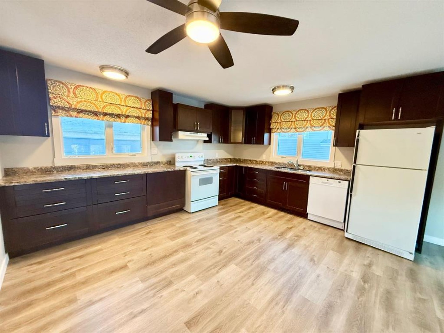 Welcome to this beautifully renovated home in the sought after Hinton Hill District, just steps from trails, parks and outdoor recreation. Situated on a fully fenced lot with a large concrete drive and an impressive 30 X 24 detached garage, this property offers both space and functionality. The main floor features an open concept layout, ideal for entertaining, with vinyl plank flooring throughout and an abundance of natural light. The kitchen includes a pantry that flows seamlessly into the living and dining areas. Three bedrooms are located on the upper level, including a spacious primary suite with a convenient 2 piece ensuite. Finishing off the upper level is a renovated 4 piece main bathroom with a soaker tub. The fully developed basement adds exceptional living space with a wet bar. You'll also find laundry with an additional sink, three more bedrooms, and another 4 piece bathroom. Quick possession is available!