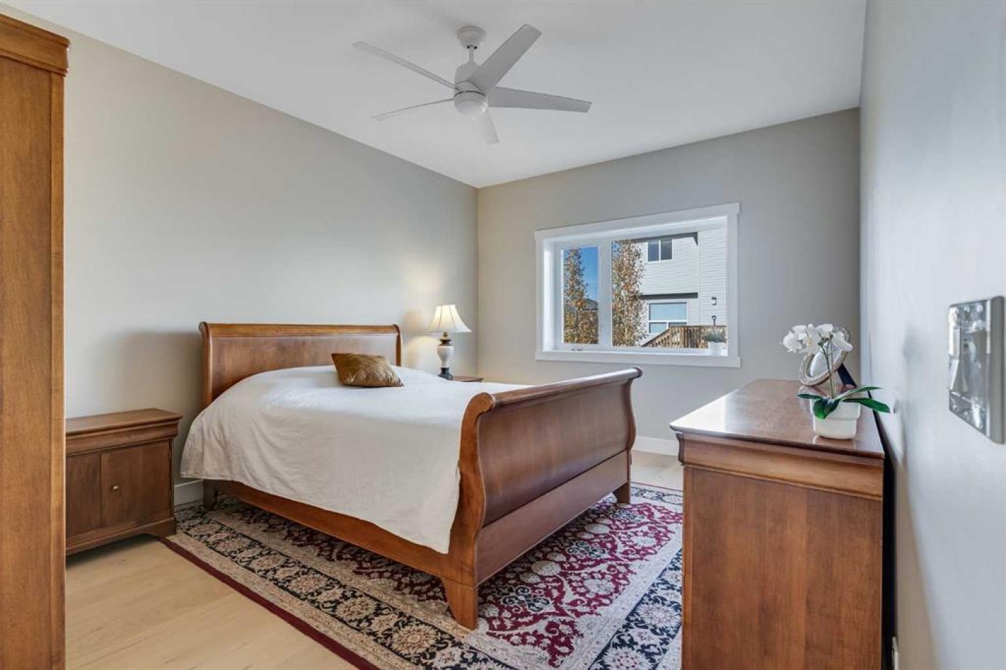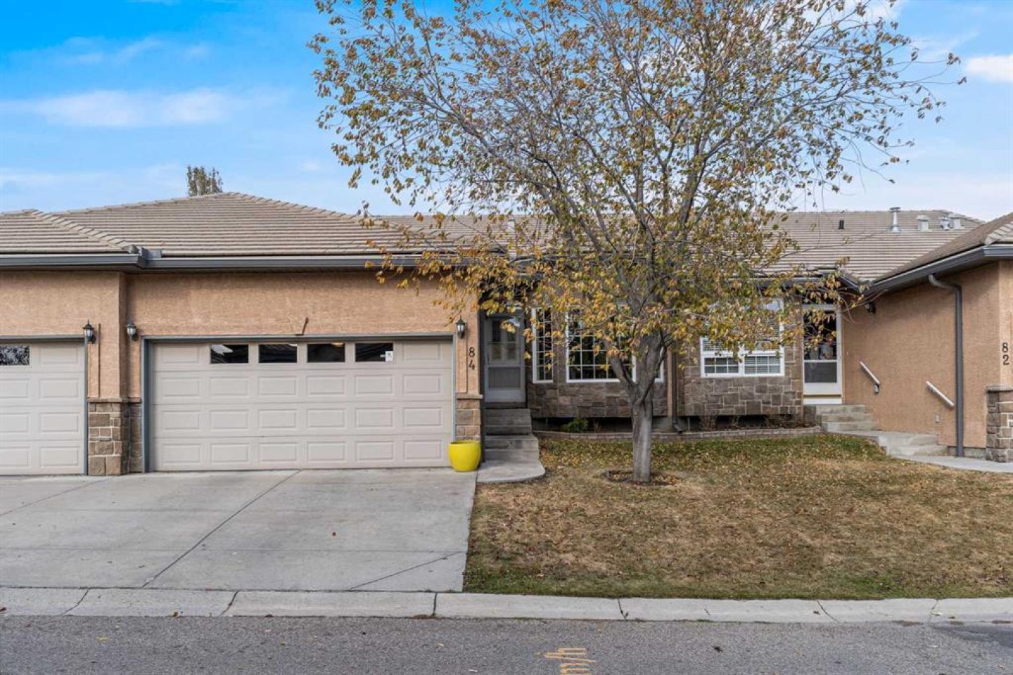 ** OPEN HOUSE SAT JAN 10th from 2:00PM - 4:00PM ** Sophisticated villa-style BUNGALOW offering over 2,530 sq.ft. of beautifully developed living space in a quiet, well-managed adult (35+) community. Thoughtfully designed for comfort and style, this home features ELEGANT UPGRADES including ENGINEERED HARDWOOD floors, QUARTZ countertops, modern lighting, newer carpets, a high-efficiency furnace, and hot water tank. The inviting main level showcases an open, sunlit layout with a spacious living room anchored by a cozy GAS FIREPLACE, a bright kitchen with stainless steel appliances, corner pantry, and cheerful breakfast nook surrounded by windows. FRENCH DOORS open to a private deck and meticulously landscaped backyard — perfect for relaxing or entertaining. The king-sized primary suite includes DUAL his and hers CLOSETS + a WALK-IN CLOSET and a beautifully RENOVATED ensuite complete with quartz vanity, soaker tub, and separate shower. Convenient main floor laundry and a powder room complete this level. Downstairs, the fully developed lower level offers a large family room with a second gas fireplace, an oversized second bedroom with walk-in closet, a full bathroom, and a NEWLY ADDED SOUNDPROOFED FLEX ROOM —ideal as a MUSIC STUDIO, home office, gym, or creative space. Enjoy the ease of low-maintenance living with a double attached garage, large driveway for an additional 2 vehicles and a CONCRETE TILE ROOF, stucco exterior, and condo fees that include landscaping, snow removal, and exterior maintenance. This complex offers endless visitor parking, perfect for the upcoming holidays while you host family and friends in your beautiful new home! Ideally situated near Fish Creek Park, shopping, LRT, and easy access to Stoney Trail.