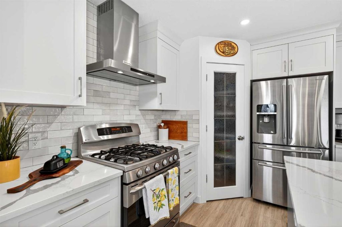 WOODSIDE Renovated BUNGALOW With TRIPLE CAR GARAGE This home seamlessly combines modern comfort with timeless charm, offering a perfect retreat for families and entertainers alike - offering over 2563 sq ft of Developed Space. Step inside to discover a brand-new ZEN LIVING KITCHEN featuring sleek quartz countertops, stylish cabinetry, and contemporary finishes. Kitchen also features Gas Stove, Chimney Hood Fan and New Light Fixtures. The Whole House shines with NEW paint, NEW flooring, NEW Light Fixtures and TRIPLE-PANE windows (installed in 75% of the home), flooding the space with natural light while ensuring energy efficiency. Enjoy cozy evenings by the WOOD BURNING FIREPLACE, or unwind on the covered rear deck overlooking the beautifully landscaped backyard. The yard is a true gardener’s paradise, complete with raised garden beds, a SHE SHED, strawberry patch, and apple trees. The FULLY FINISHED basement with 9-foot ceilings adds incredible living space, offering two additional bedrooms, a large recreation room, and a modern 3-piece bath—perfect for guests or family living. Car enthusiasts and hobbyists will love the insulated TRIPLE-CAR garage, complete with a heater and sub panel for tools or workshop equipment, and Hot and Cold Water Taps. Additional upgrades include attic insulation upgraded to R60 - both House and Garage, Two new exterior doors for added comfort and efficiency, AIR CONDITIONING to cool off during the Heat of the Summer and Furnace and Duct Cleaning alray done for you as well. With every detail thoughtfully updated, this home is truly move-in ready and situated in one of Airdrie’s most sought-after neighborhoods. Don’t miss your chance to own this exceptional property—schedule your private showing today!