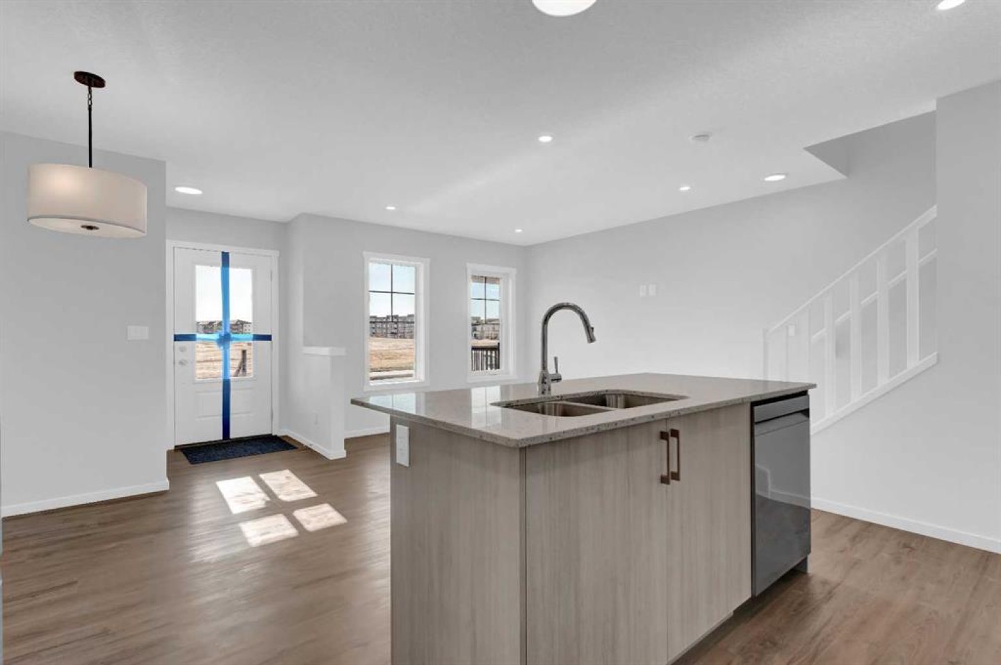 You are invited to view this Never occupied, absolutely Brand New and Freehold (No Condo Fee) Townhome equipped with Solar Panels that has it all- Front Porch, very practical layout of the living, dining and kitchen as large as some detached homes, a large mudroom with inbuilt shelves and coat hooks leading to a large powder room and the best of all- A double attached Garage adding much needed convenience over the winters to come. Upstairs: Owner's suite that consists of a large bedroom with attached balcony, a true walk-in closet and a 4 pc ensuite. There are two more Bedrooms that can all fit king sized bed, another common 4 pc bath and a must have 2nd level laundry. The home is sunlit all day due to the exposure and the evergreen finishes. There's a fence across the back alley separating the rear lane from the homes behind, for a nice clean access to the garage. Come and check it out today!