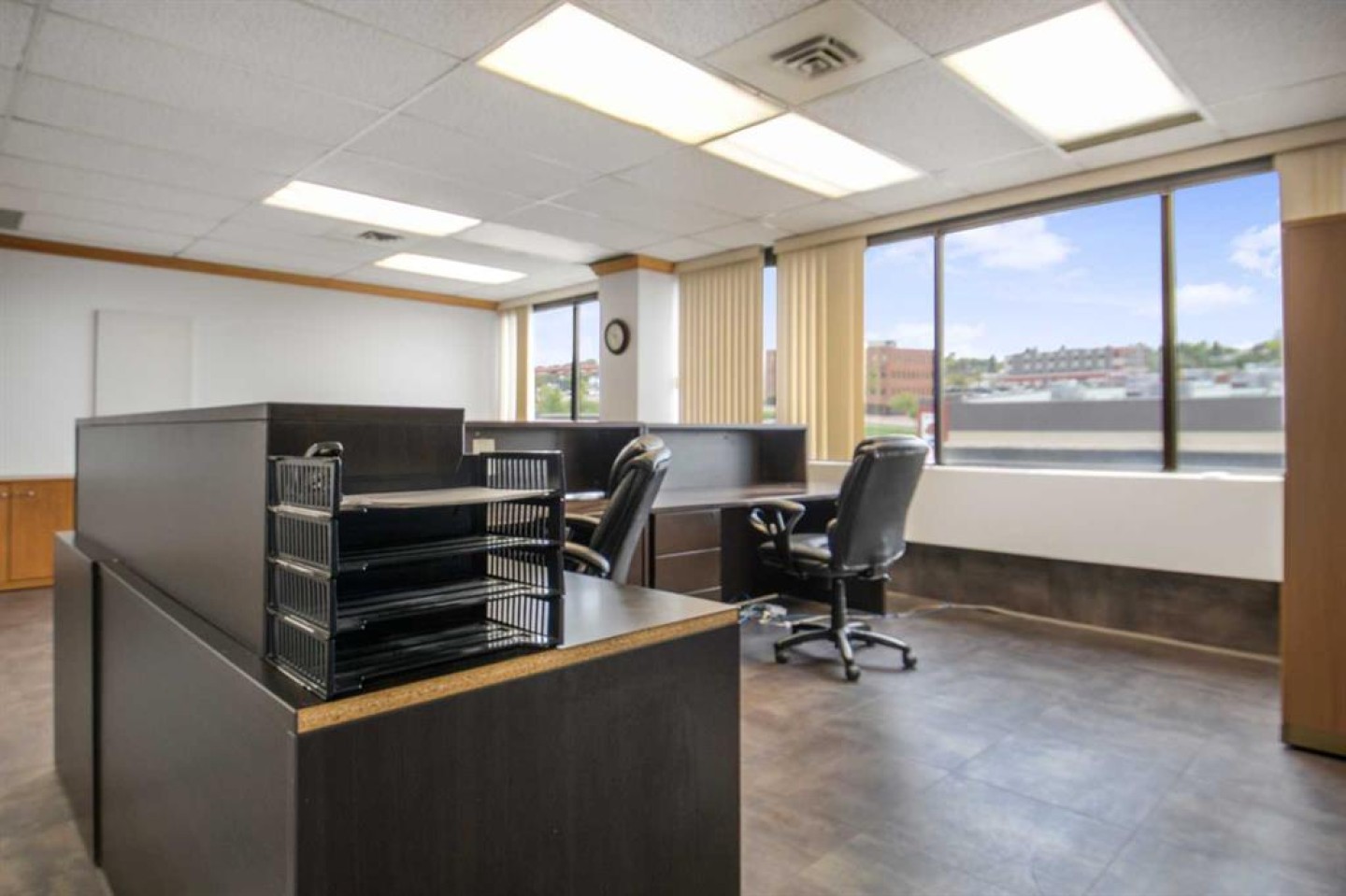 Third floor space for lease in the Windsor Court professional building downtown Grande Prairie. Currently developed as office space with a reception area, 7 large offices, a boardroom, kitchen area and file storage room. Common area costs are estimated at $14 sq.ft. including utilities. Monthly base rent is $3,192.58, monthly common area cost is $3,438.17 for a total monthly rent of $6,630.75 plus GST. Parking allocated on proportionate share. Landlord will consider demising space for the right tenant and term. Landlord willing to demise space according to tenant requirements on the right terms. Available for immediate occupancy. Contact a commercial real estate professional for more information or to view.
