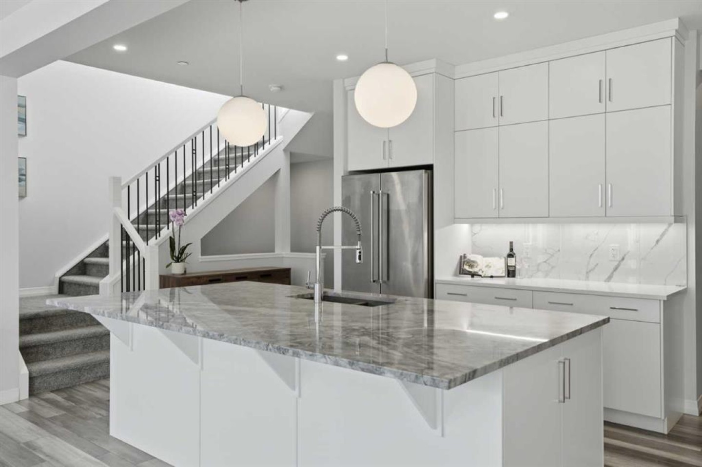 Luxury Living | 3 Beds | 2.5 Baths | 2,619 SqFt | Gorgeous Modern Finishes | Expansive Living Space | Chef's Kitchen | Sparkling Quartz Countertops | Gas Cooktop | Built-in Stainless Steel Appliances | Spacious Kitchen Island with Barstool Seating | Walk-through Pantry | Mud Room | Main Level Office | High Ceilings | Electric Fireplace | Central AC | Recessed Lighting | Large Windows | Incredible Natural Light | 3 Upper Level Bedrooms | Upper Level Family Room | Upper Level Laundry | Great Storage | Unfinished Basement with Future Potential | Fully Fenced Backyard | Rear Deck | Great Lawn | Front Double Attached Garage | Driveway. Welcome home to your stunning 2-storey family home boasting 2,619 SqFt throughout the main & upper levels with an additional 1,088 SqFt in the unfinished basement. This home is full of spectacular modern finishes that shine throughout. Open the front door to a foyer with great walk-in closet for a neat and organized space. Step up into the main level where you'll find a home office and a welcoming open floor plan kitchen, dining and living area great for entertaining. The kitchen is outfitted with full height cabinets, a gas cooktop, stainless steel appliances, sparkling quartz countertops and a grand centre island with barstool seating. The kitchen has a walkthrough pantry that leads to the mud room connecting your interior garage to the rest of the home. The dining and living rooms are full of natural light as they are framed with sliding glass doors and large windows that overlook the backyard. The sliding glass doors off the dining room make an easy transition of indoor/outdoor living in the warm summer months! This leads to the deck and lawn waiting for your favourite outdoor furniture. The living room is modern and comfortable; a stunning floor to ceiling marbled tile accent wall frames an electric fireplace. The main level is complete with a 2pc powder room. Upstairs holds 3 grandiose bedrooms, 2 bathrooms, a family room and laundry room. The primary bedroom is a personal oasis with plush carpet flooring, a private 5pc ensuite bath and walk-in closet. The ensuite has a deep soaking tub, double vanities, a makeup vanity, walk-in shower and private washing closet. The walk-in closet connects to the laundry room making it extremely accessible to you. Located in the middle of the upper level is the family room; this comfortable space separates the primary bedroom from the 2 additional bedrooms. Bedrooms 2 & 3 are both a great size and share the 5pc bath which has a pocket door separating the double vanity area from the washing area making it functional for more than one person at a time. Downstairs, the basement is untouched meaning you can develop this space to fit your family's needs! Add something custom to this home as you grow in the space. The double attached garage & driveway give you ample parking. Hurry and book a showing at this incredible home today!