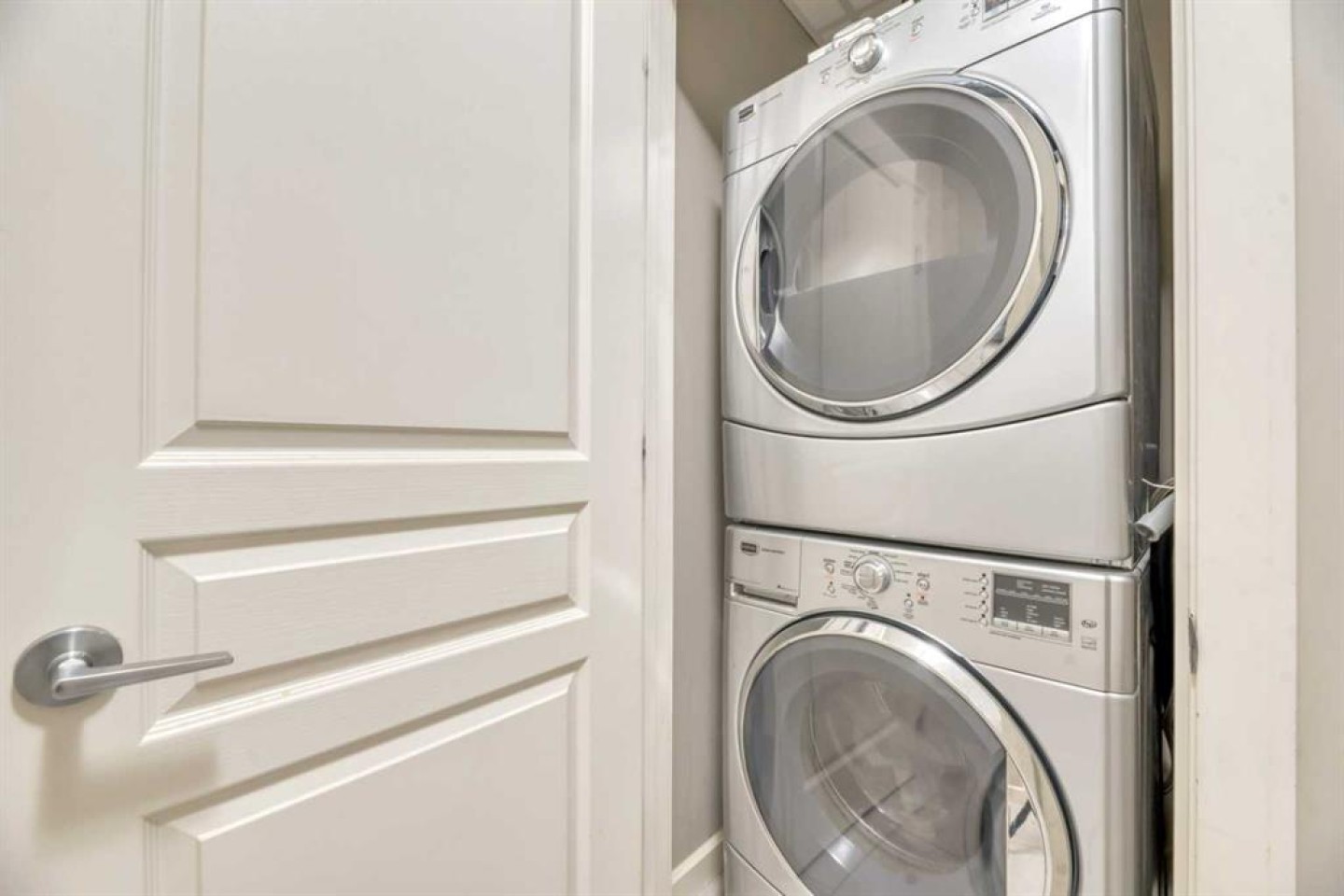 Dishwasher, Electric Stove, Refrigerator, Washer/Dryer Stacked