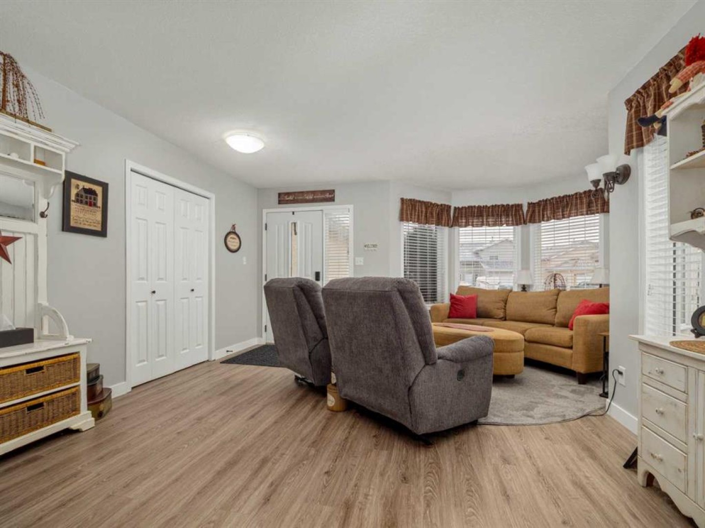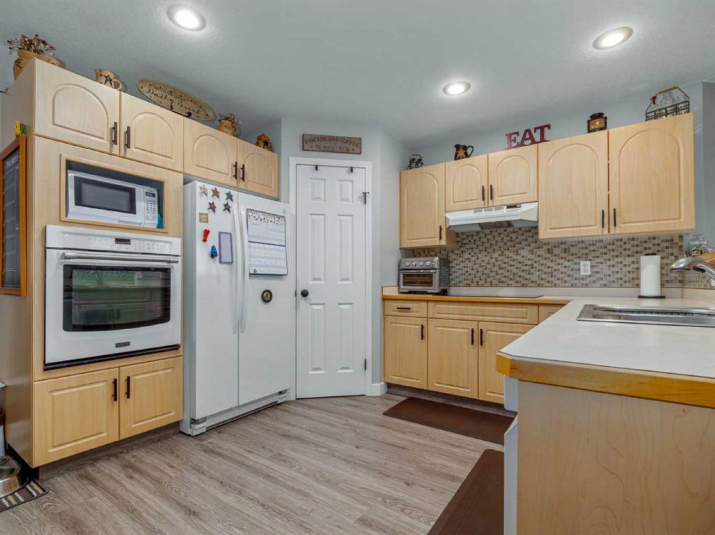 Immaculate raised bungalow with main-floor laundry and a bright, inviting atmosphere. This custom-built Soroka Homes property showcases exceptional care and thoughtful design throughout. Four bedrooms plus a flex room. Clean finishes, and well-chosen fixtures create a modern, cohesive look. Updated flooriing including vinyl plank and carpet. Hot water tank is 1 year old. The low-maintenance front yard and fully fenced backyard (57 ft wide) back onto green space with a nearby playground and side onto a walkway. The 18 x 21 ft attached garage is drywalled and insulated (ceiling not insulated) and includes a convenient side man door. The fully developed lower level offers excellent natural light, a cozy fireplace with fan and thermostat control, a versatile flex space (part of family room measurement) that could be converted to an additional bedroom.