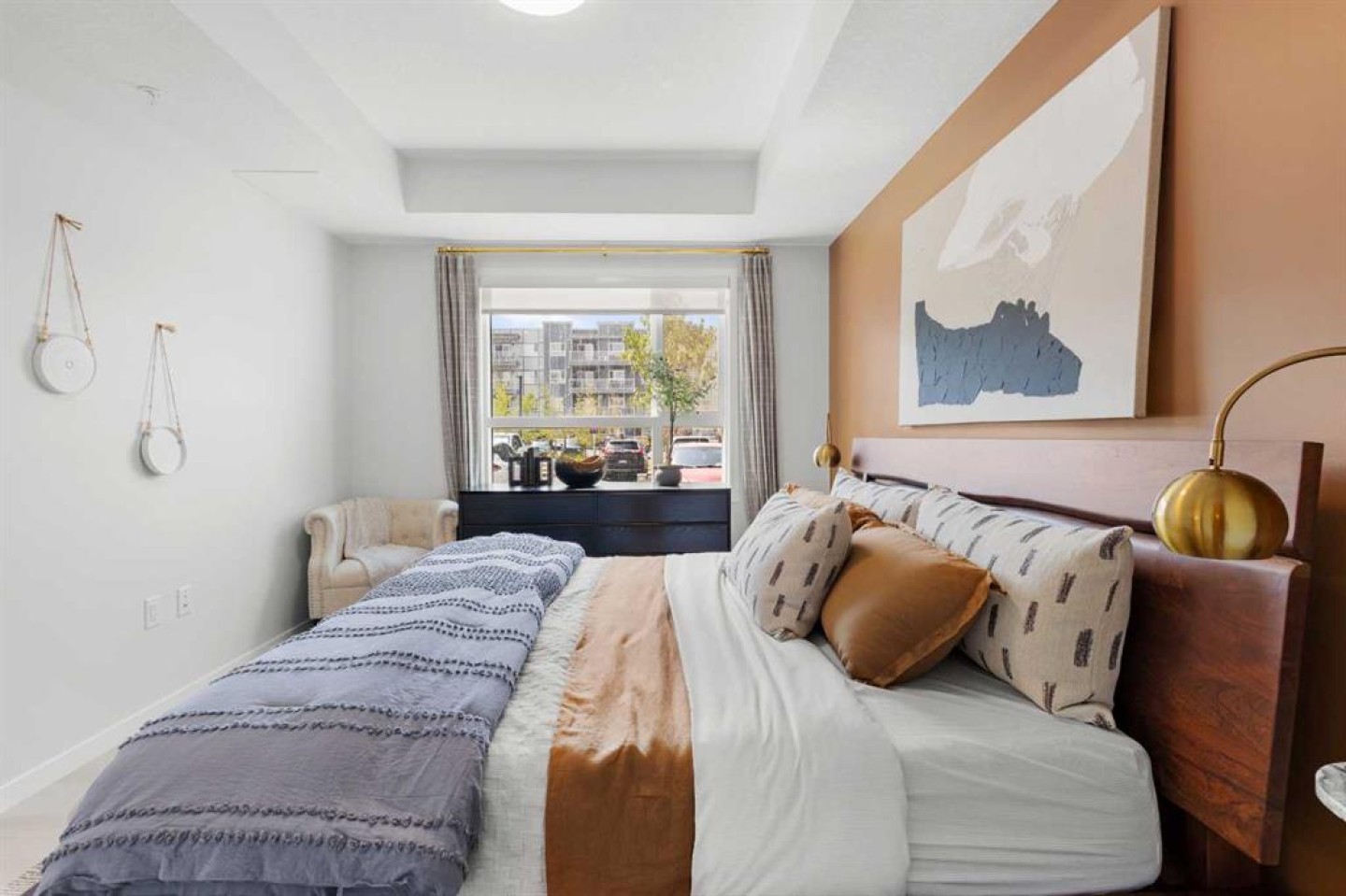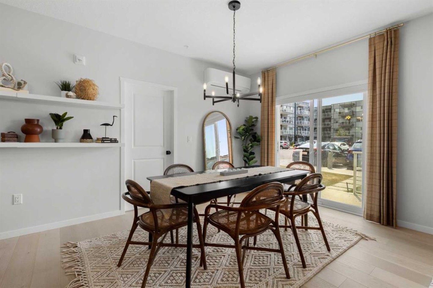 Welcome to 80 Carrington Plaza NW — a former Cedarglen show home offering elevated design, premium upgrades, and outstanding long-term value. This 1,283 sq ft main-floor condo features 3 bedrooms and 2 full bathrooms, combining refined finishes with a highly functional layout ideal for both discerning homeowners and savvy investors. The open-concept living space is anchored by a stylish fireplace and flows seamlessly into a designer kitchen complete with built-in appliances, upgraded cabinetry, a pantry, and a built-in wine fridge—features that elevate everyday living while enhancing rental desirability. As a former show home, this unit stands apart with thoughtful details, timeless finishes, and a level of quality rarely found in condo living. The primary suite offers a walk-in closet and private 4-piece ensuite, while two additional bedrooms provide flexibility for guests, home office use, or family living. Additional highlights include air conditioning, in-suite laundry, generous storage, and private main-floor patio access, adding comfort, convenience, and year-round appeal. The location is a major asset — everyday amenities, shops, dining, and services are just steps away, making the property exceptionally walkable and attractive to tenants and owners alike. With quick access to Stoney Trail (Highway 201), commuting across the city or heading out of town is effortless. Situated in the growing NW community of Carrington, surrounded by parks and pathway systems, this area continues to see strong demand and long-term growth. A rare opportunity to own a show home–quality condo that delivers luxury living today and enduring investment value for the future.
