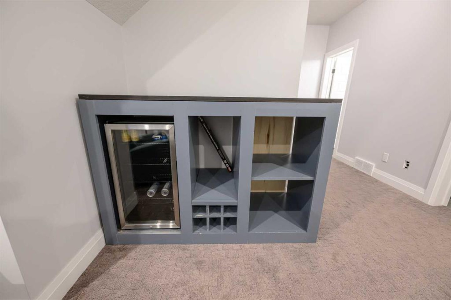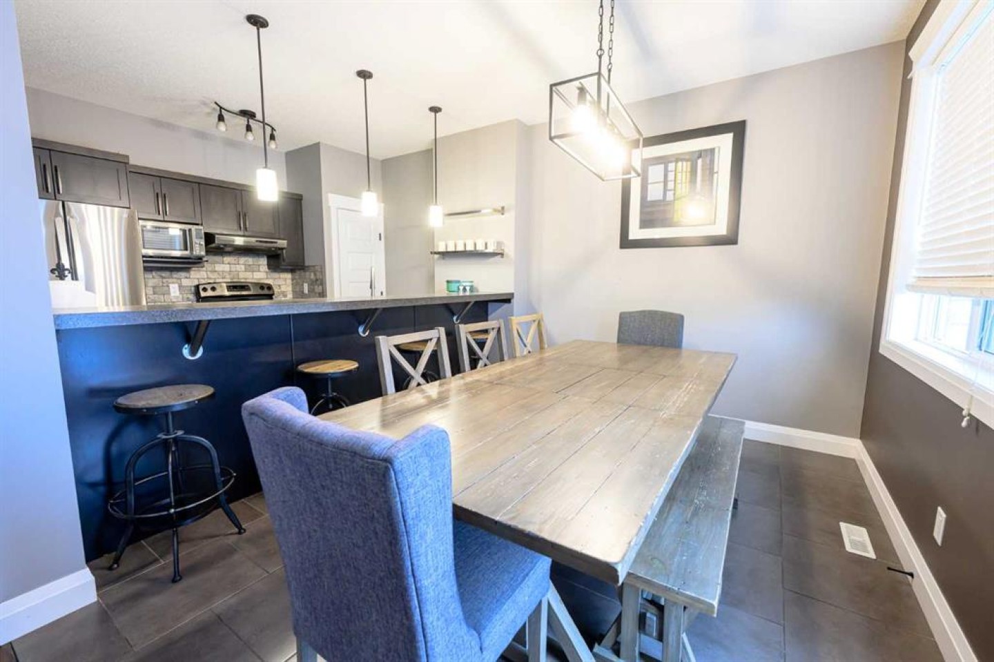 fridge, stove, dishwasher, washer, dryer, mini fridge, dry bar, blinds, garage heater