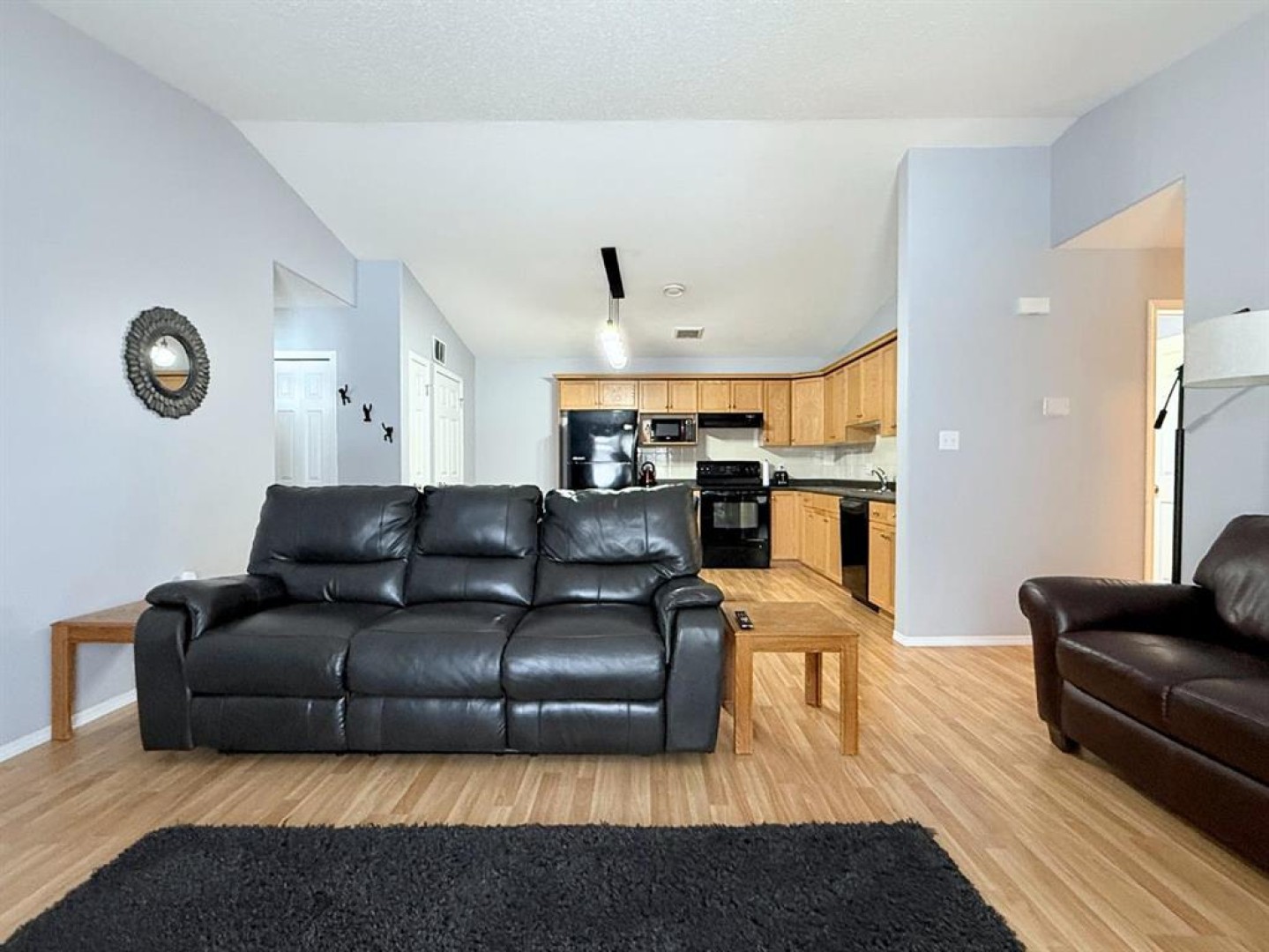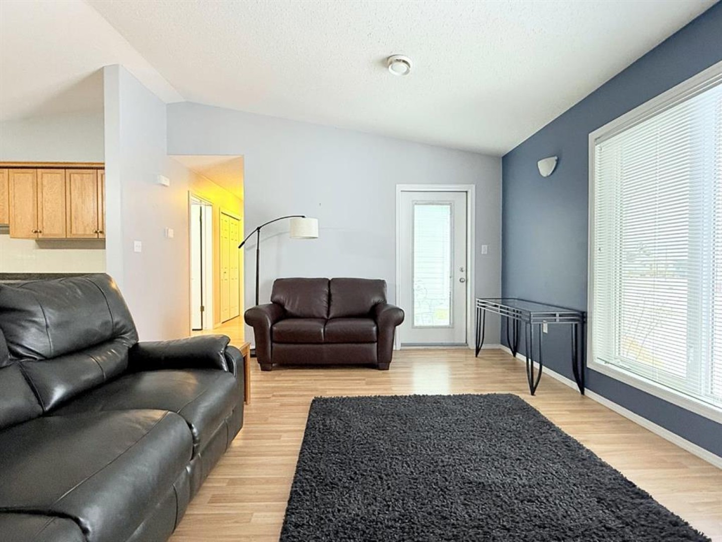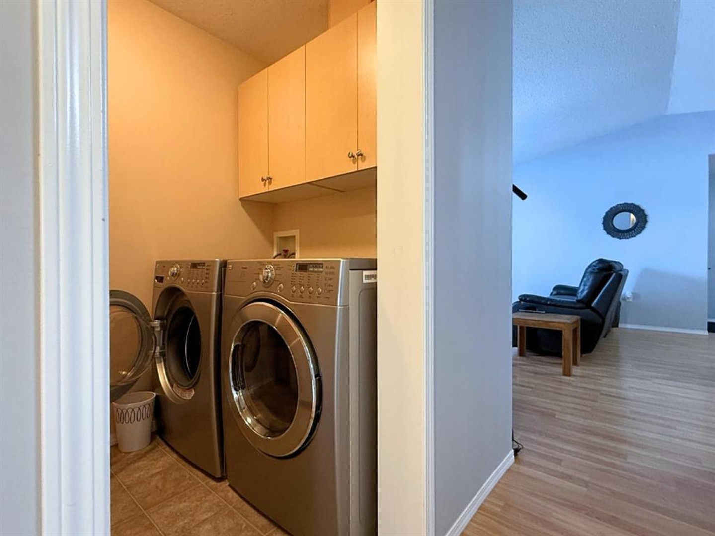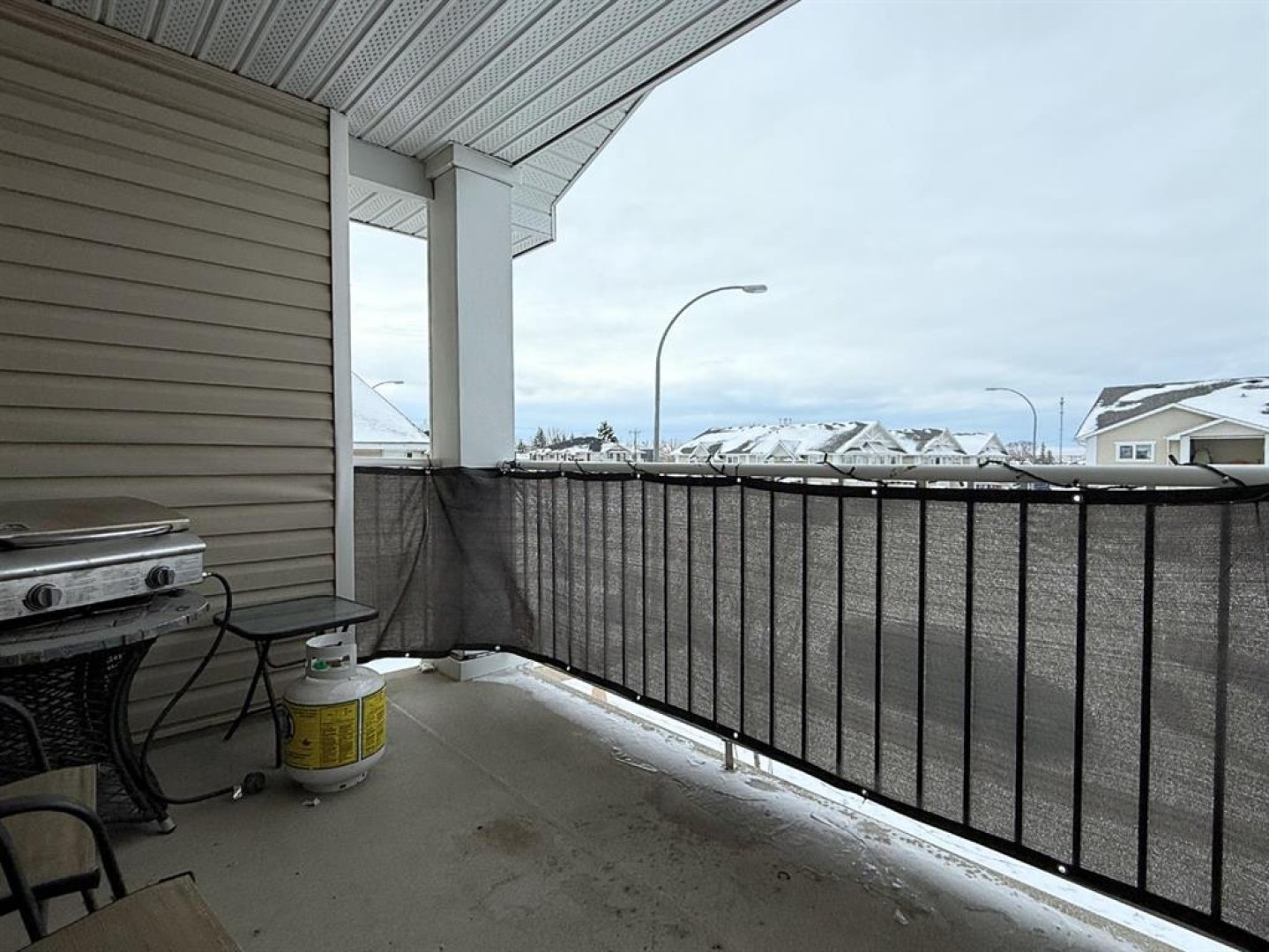 Enjoy low condo fees of only $175 per month, with ample parking, in a very quiet corner of Redcliff, within walking distance of multiple athletic amenities. This bright upper-floor condo, tucked away in a quiet cul-de-sac, offers a comfortable sense of space and ease the moment you step inside. With vaulted ceilings and an open layout, the home feels airy, welcoming, and effortless to live in. Natural light fills the living area, complementing the two-bedroom, one-bathroom design that works beautifully for first-time buyers or those seeking a low-maintenance investment. A standout feature is the dedicated in-unit laundry room, complete with counter space for folding and everyday organization—a detail that truly adds convenience. The hot water tank was replaced in 2022, offering peace of mind moving forward. Step out onto the balcony, perfect for relaxed evenings. The unit also includes TWO assigned parking stalls, deep interior storage, and is located in a quiet, well-maintained building with friendly neighbors. Pet-friendly (with restrictions), this condo blends comfort and functionality with ease. Set within the welcoming community of Redcliff, the location is truly a highlight. Enjoy being just steps from the local ice rink, tennis courts, and baseball diamond, along with nearby parks, schools, walking paths, and local shops. With easy access to Medicine Hat and major routes, this cul-de-sac setting adds an extra layer of calm while keeping everyday amenities close at hand. Bright, comfortable, and thoughtfully designed, this upper-floor condo is a wonderful place to call home or a smart addition to your investment portfolio. Contact a real estate agent today to book your showing!