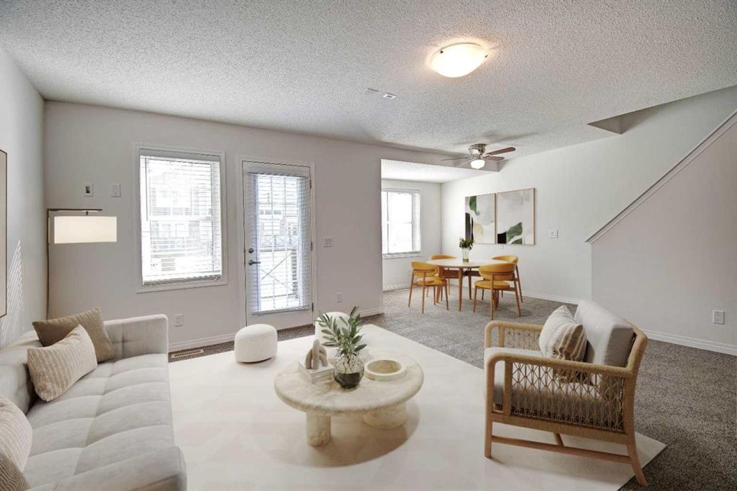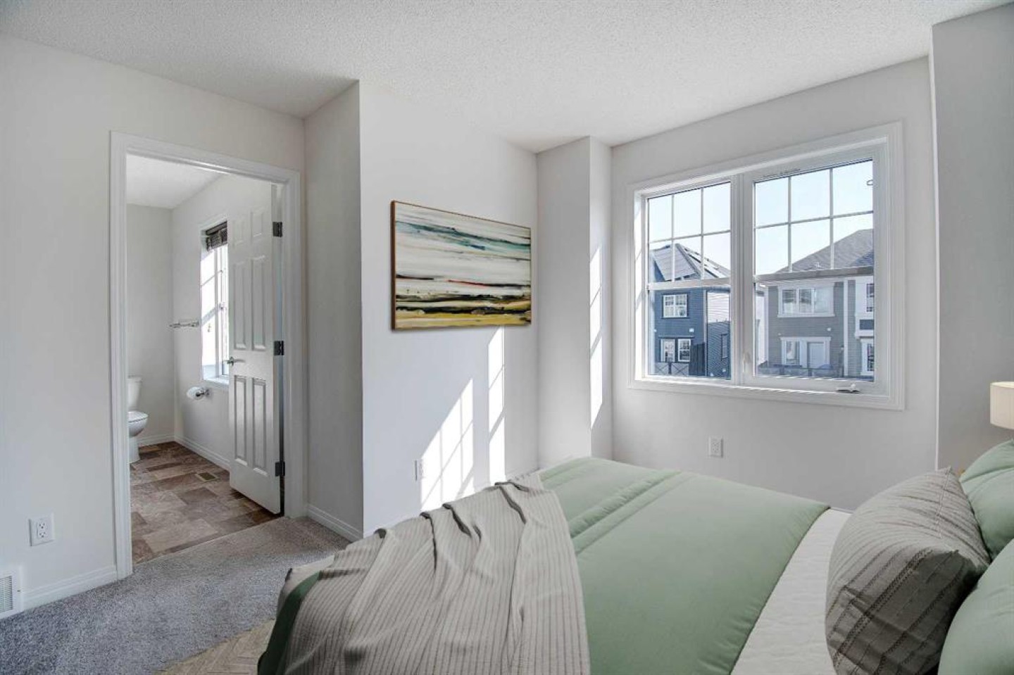 OPEN HOUSE 1-3 SATURDAY , JANUARY 10, 2026! NO CONDO FEES! This END UNIT townhome is in immaculate condition and ready to welcome its new owner. With over 1,447 square feet of exceptionally designed living space, this plan features dual primary bedroom suites with two and one half bathrooms. This AIR-CONDITIONED unit offers loads of storage, NEW CARPET in portions and a neutral décor. The large foyer offers three storage closets and access to the oversized single garage. The kitchen overlooks the main living space and was designed with entertaining in mind with rich cabinetry, tile backsplash, stone counters, built-in pantry, gas stove and raised breakfast bar. The living room and dining room are open and have many windows offering tons of natural light. The east-facing patio with natural gas BBQ line and custom retractable screen door. A 2pc bath and stackable laundry complete this floor. The upper level you will find two large bedrooms, each with walk-in closets and their own 4pc ensuite bathrooms. Networked for high speed internet with two fibre optic lines already installed, this is great for home offices or the tech in the family! Zero maintenance landscaping is an added touch! Enjoy all that Hillcrest has to offer including walking paths, playgrounds, its close proximity to schools and convenient shopping at Cooper's Town Promenade. Call to book your showing today! *Some photos have been virtually staged*