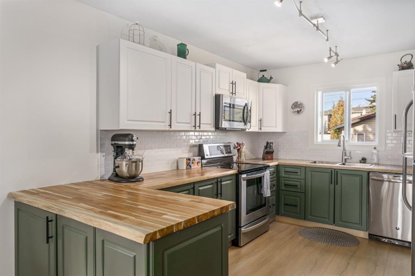 Fantastic home with great illegal basement suite. Great opportunity enjoy the benefit of live up, rent down, or investment property. This amazing property offers an ideal location, quiet cul de sac, close to all amenities and downtown Airdrie, making it a lucrative investment opportunity or perfect for young family. situated on a massive flat lot with large garage. Well maintained and pride of ownership shows throughout. Brand new vinyl flooring, updated Kitchen, bright and spacious living area. The primary suite features a convenient 3-piece ensuite and laundry. An additional 4- piece main bathroom plus the basement with full bathroom, 1 bedroom and additional laundry room.