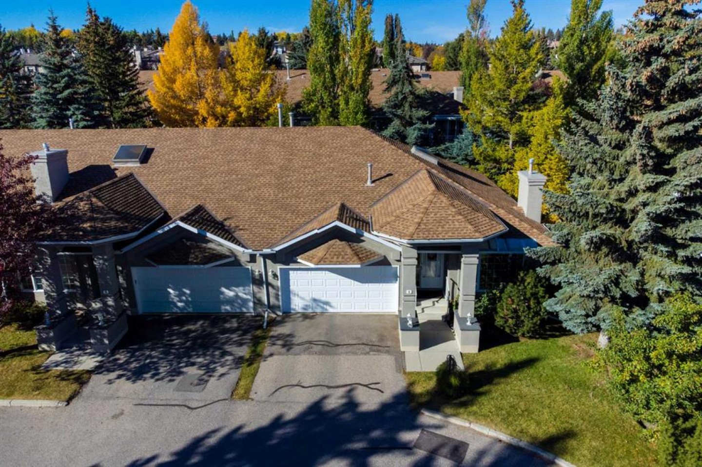 END UNIT BUNGALOW STYLE VILLA with double attached garage located in desirable Christie Gardens complex! This property is in fairly original condition needing upgrading and is a GREAT OPPORTUNITY for someone to do a partial or full scale renovation. With a total of over 2600 ft2 of living space, this property has lots of space to work with! It offers a PRIVATE AND QUIET LOCATION at the end of the cul de sac with mature trees surrounding it. OPEN MAIN FLOOR PLAN with VAULTED CEILINGS and large centre skylight which floods the living area with NATURAL LIGHT! Main floor has 2 bedrooms plus an office/den with built in desk and shelves. Spacious primary bedroom features a 5 piece ensuite bath with air jetted tub and separate shower. Spacious white kitchen with breakfast nook opens onto SUNNY, SW exposed back deck surrounded by trees for PRIVACY. Fully developed basement includes large rec room with built in shelving, 3rd bedroom (note: window is not egress size), full bath, laundry and plenty of storage. One of the storage rooms could be used as a wine cellar with built in sink and shelves, plus a cold room attached. GREAT LOCATION within walking distance of the Sirocco LRT station, West Market Square, Sunterra Market, and featuring many walking/biking trails just minutes away. Great access to schools, shopping, downtown and west to Kananaskis, Banff and the Rocky mountains. This home offers an easy "lock and leave" lifestyle at an unbeatable value! It's been a few years since any unit has sold for less than $600K in this complex!