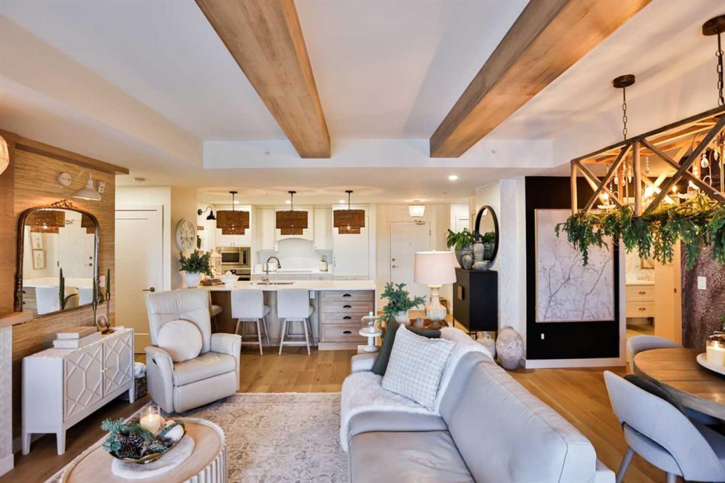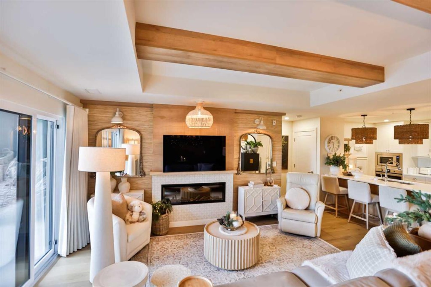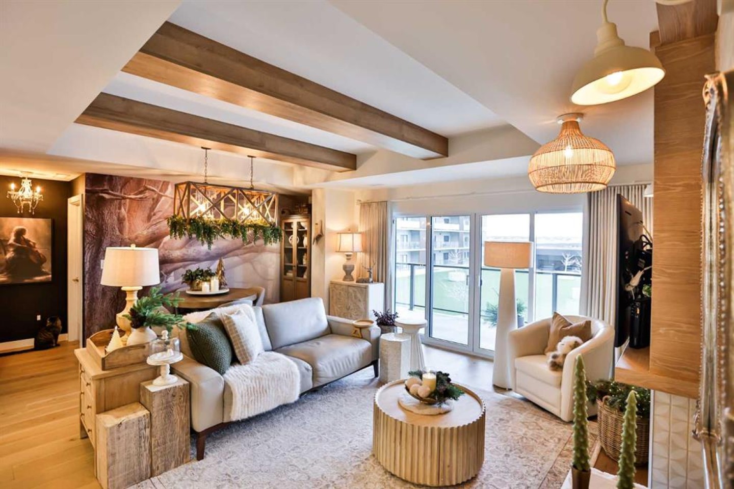 Luxury condo living with stunning views at 102 Scenic Drive. This beautifully decorated, high-end 2 bedroom, 2 bathroom residence offers over $40,000 dollars worth of upgrades to create a truly amazingly appointed and unique home. The inviting living space features a lovely dining room and living room space that blend together seamlessly featuring a built-in fireplace and large custom wood beams, all overlooking the courtyard. This condo is decorated in warm neutral colors, bleached wood laminate floors, and custom paint and wallpaper features in every room. The custom kitchen showcases off-white shaker cabinetry, custom paneled fridge and dishwasher, built-in wall oven and microwave, and an induction cooktop with a custom hoodfan. The upgraded fridge offers water and ice dispenser for true convenience. The finishing touch to this beautiful kitchen is the crisp quartz countertops with a custom quartz waterfall edge on the peninsula and a full seamless quartz backsplash behind the stove. The gorgeous master suite has a large walk through closet with custom built-in cabinets, a glass tiled shower, vanity with make-up desk and extra tall vanity cabinet, quartz countertop, and sliding glass doors to the balcony. The second bedroom can function either as a guest bedroom or your personal home office, featuring tall floor to ceiling custom cabinets and sliding glass doors to the balcony. The expansive balcony offers an amazing view and access from every room in the condo. The underground parking and storage unit included with this condo are perfectly located close to the elevator to add everyday ease. Enjoy exceptional building amenities including a gym, sauna, theatre, golf simulator, car wash and more. A rare opportunity to enjoy luxury, views, and the convenience of lock-and-leave living, in one of Lethbridge’s most desirable locations. Contact your favorite real estate agent to view.