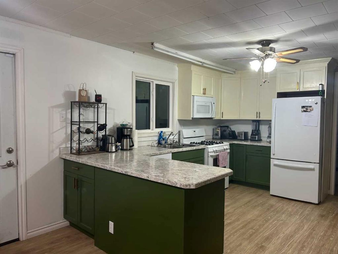 2 fridges in basement, freezer, cabinets in storage room, all as is where is