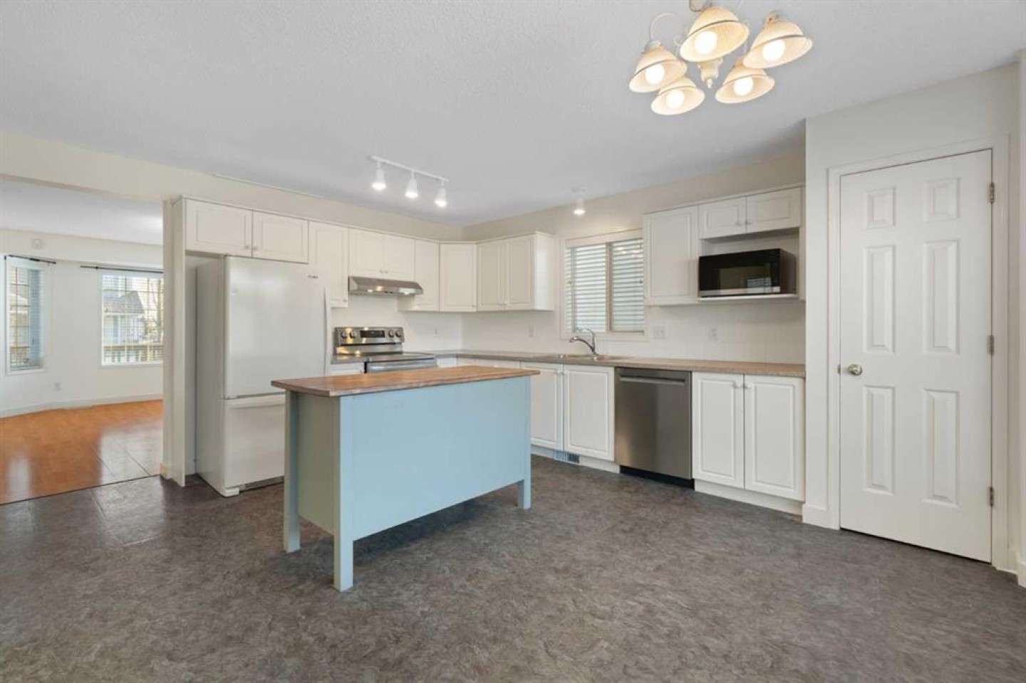 Moveable Kitchen island, Garage door controls. Security alarm hardware in as is condition as current owner has never used it.