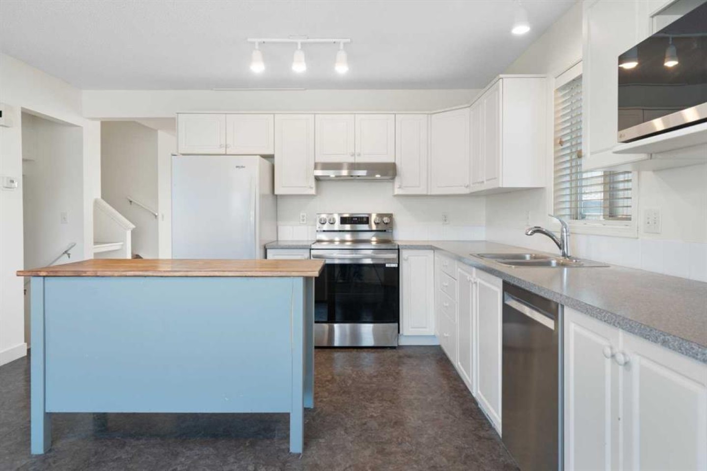 Dishwasher, Dryer, Electric Stove, Microwave, Range Hood, Refrigerator, Washer, Window Coverings