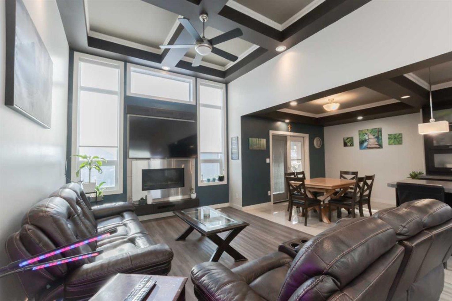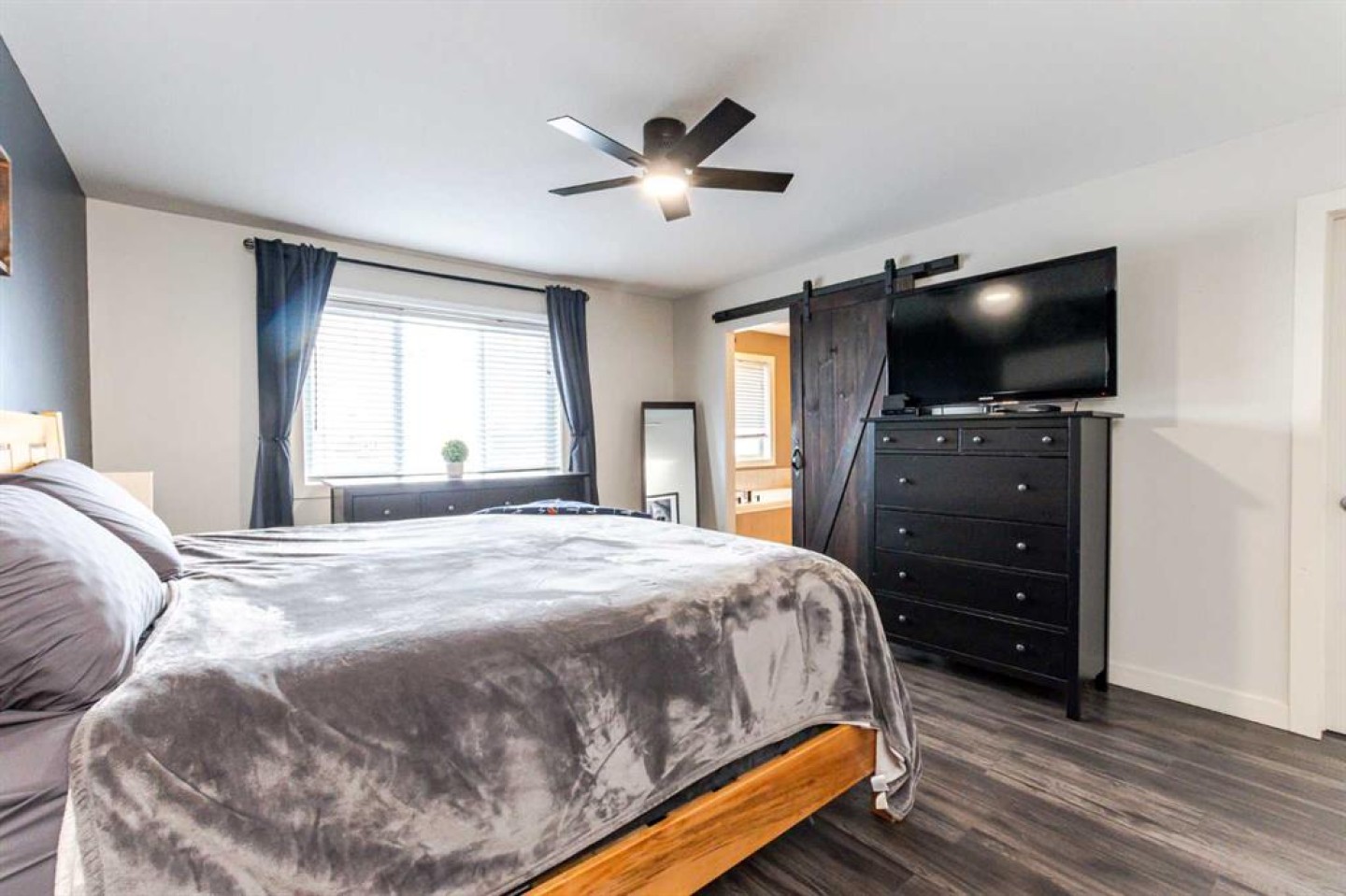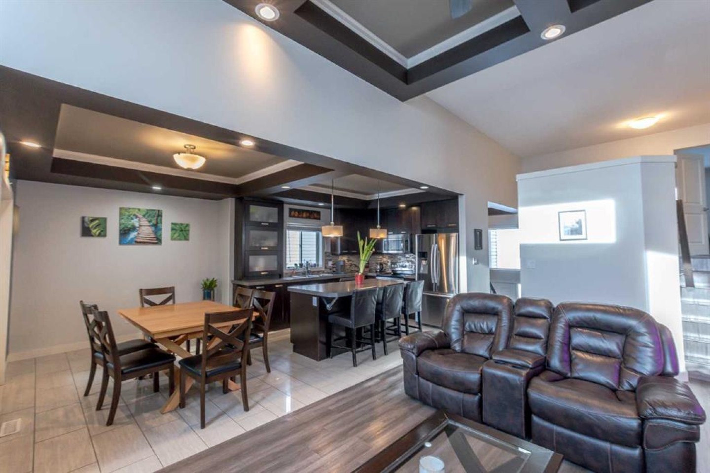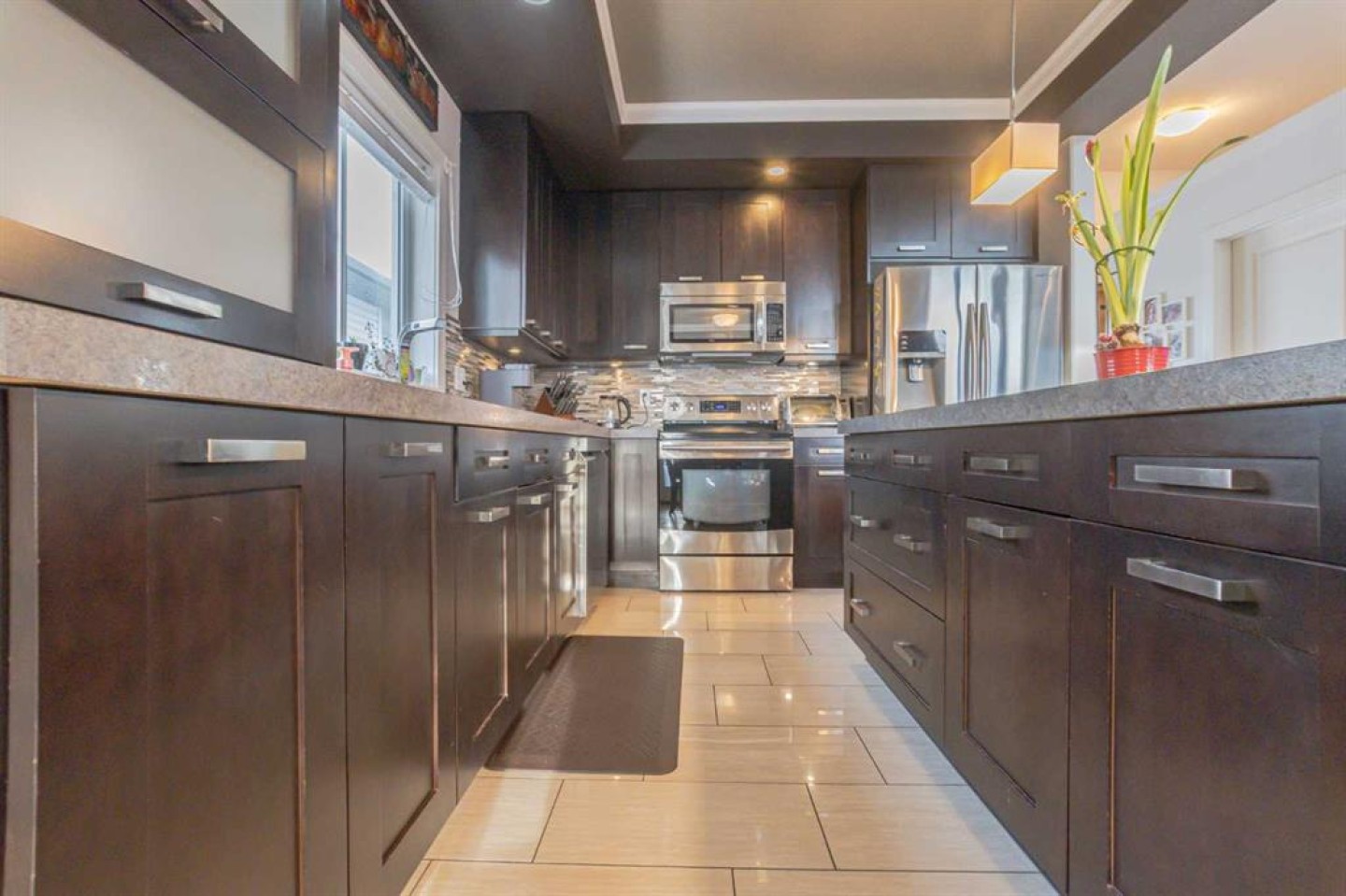 Welcome to this fully developed modified bi-level that impresses from the moment you step inside. Flooded with natural light and accented by coffered ceilings, this home offers an elegant touch while still feeling warm and inviting. The open-concept kitchen is both functional and stylish, featuring a walk-in pantry, an abundance of cabinetry, and seamless flow into the dining area with direct access to the backyard—perfect for everyday living and entertaining alike. The primary bedroom is a true retreat, offering generous space, a 5-piece ensuite complete with a jetted tub, double-sink vanity, walk-in shower, and a versatile nook area currently used as a home office. Additional bedrooms are all well-sized and thoughtfully laid out. Downstairs, the fully developed basement is ideal for entertaining, boasting a spacious family room, bar area, an additional bedroom, full bathroom, and ample storage space. Outside, enjoy a south-facing, fully fenced backyard, perfect for soaking up the sun. Located directly across from a children’s playground and close to schools, restaurants, shopping, medical offices, and the Eastlink Centre, this home offers both comfort and convenience in a sought-after location.