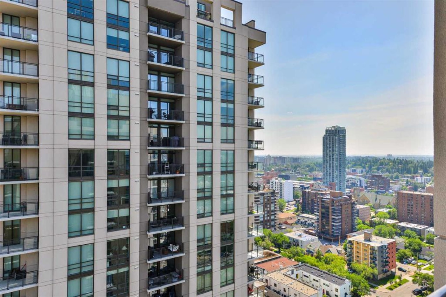 Experience elevated urban living in this stunning sub-penthouse unit on the 24th floor of the Nova Building, featuring one of the most spectacular panoramic NE corner views in the city. This highly coveted floor plan offers 2 bedrooms + den, 2 full bathrooms, titled underground parking, and 2 storage lockers, providing exceptional comfort and convenience. Recently updated throughout, this move-in-ready home has been freshly painted, including ceilings, with new doors and baseboards adding a crisp, modern finish. All kitchen and bathroom cabinets have also been repainted and refinished, enhancing the fresh, modern aesthetic. The open-concept layout features floor-to-ceiling windows, flooding the space with natural light and showcasing the breathtaking skyline. Interior details include luxury wide-plank laminate hardwood flooring, quartz countertops, a massive kitchen island, and brand-new, never-used stainless steel appliances including a fridge, microwave/hood fan, and dishwasher. Perfect for entertaining or day-to-day living, the seamless flow between the kitchen, dining, and living areas makes this home both functional and inviting. The generously sized primary suite offers a true retreat with a spacious walk-through closet leading to a spa-inspired ensuite featuring dual vanities, a soaker tub, and a separate glass shower. The Nova offers premium amenities, including a fully equipped fitness centre, sauna, residents’ lounge/party room, and landscaped courtyard. Located in the heart of the Beltline, you’re just steps to 17th Avenue’s vibrant dining, shopping, and nightlife, with Co-op grocery store right across the street for ultimate convenience. Don’t miss this opportunity to own one of the best units in the building.