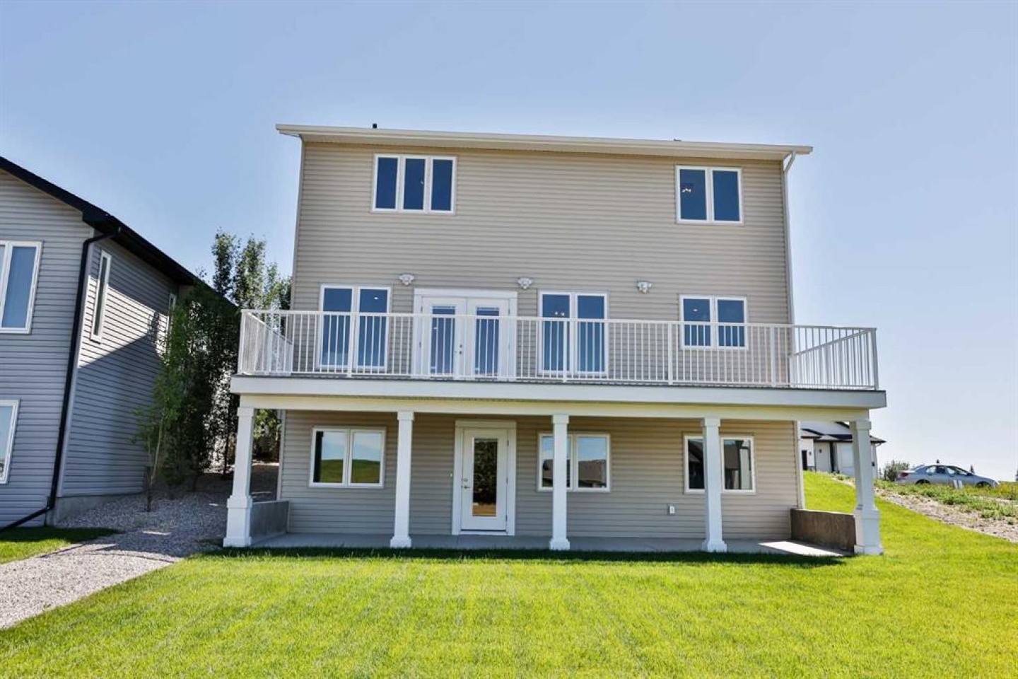 Welcome to your NEXT home! As you approach this residence, you'll immediately notice the beautifully landscaped yard, complete with underground sprinklers that are Wi-Fi enabled for your convenience—a rare upgrade in a newly constructed home. The stunning exterior rock work highlights the front of the property, and who doesn’t appreciate a spacious driveway? Step inside this open-concept home, where vinyl plank flooring flows throughout the main level. Large windows line the back of the house, allowing natural light to fill the space, while a gas fireplace adorned with wood mantle detailing adds warmth and character to the living room. The kitchen features elegant white cabinets and quartz countertops that enhance the room's brightness. You'll find an abundance of pots and pans drawers, accented with lovely black handles. All stainless steel appliances, a built-in butler’s pantry, and a dedicated desk area with upper cabinets provide ample storage and functionality. The windows at the back of the home offer breathtaking views of the Rocky Mountains and the 12th green of the Vulcan Golf Course. Step out onto your expansive deck that spans the width of the home, perfect for entertaining guests. This outdoor space is finished with vinyl decking and aluminum railing, for low maintenance lifestyle. On the second floor, you'll discover generously sized bedrooms, a full bathroom, and a convenient laundry area. The primary bedroom, situated at the back of the home, boasts a spacious walk-in closet with custom built-ins, as well as a beautiful ensuite bathroom featuring a tub and shower with double sinks. The basement is currently undeveloped and awaits your creative touch! This walkout basement is filled with natural light and leads to a concrete patio that completes the space. Additionally, there is a double attached garage that is insulated and drywalled for your comfort. You'll appreciate the absence of HOA fees in this part of the golf course development, allowing you the freedom to install a fence if you have a dog or garden. Plus, there are no age restrictions in this area! Living on the Vulcan Golf Course means enjoying a vibrant community, complete with an abundance of amenities, including close proximity to schools, an outdoor pool, parks, a hospital and arena. Located between the cities of Lethbridge and Calgary on Highway 23, this would be a perfect area to call home. Give your REALTOR®? a call today!