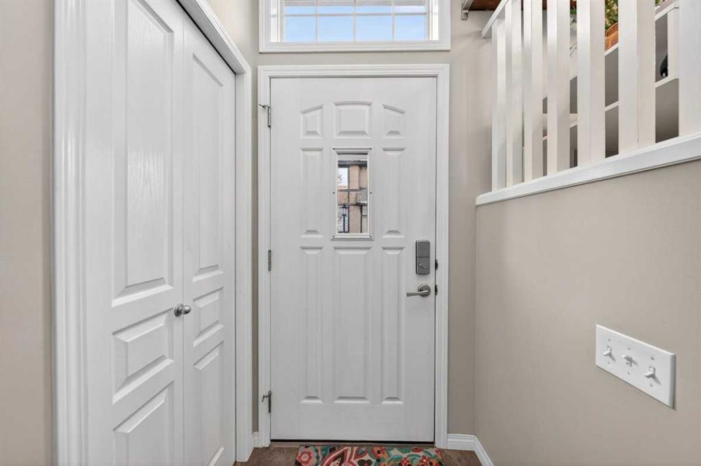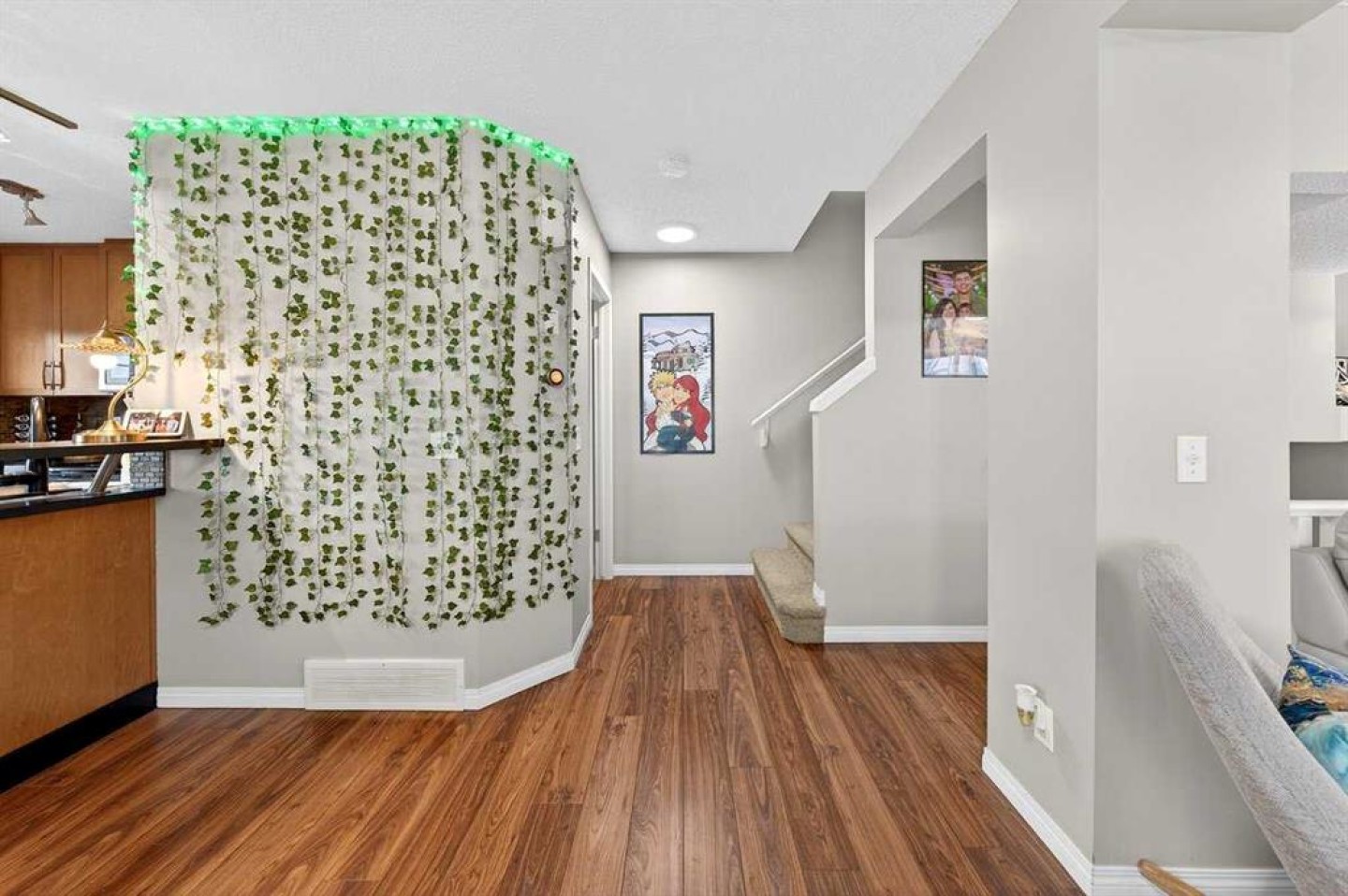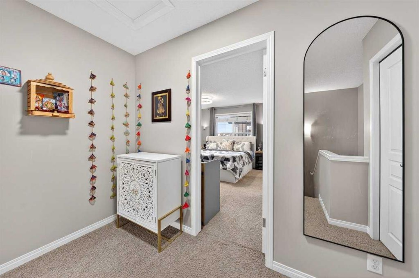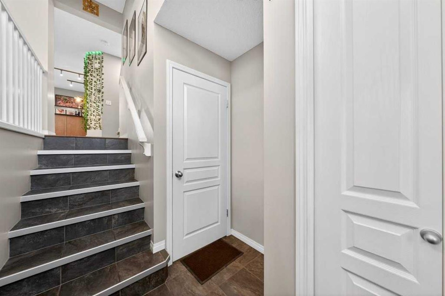 Shoe rack beside the garage door, TV wall mounts in the bedroom and living room