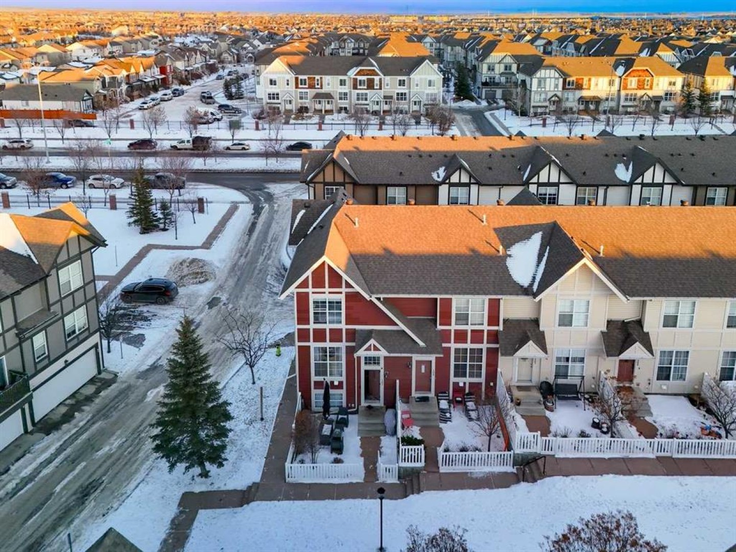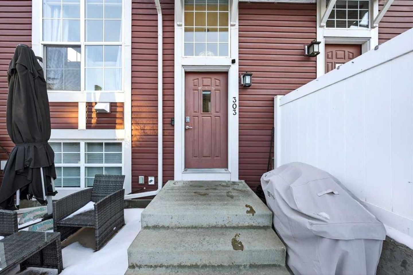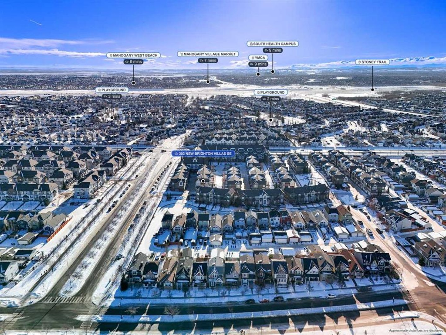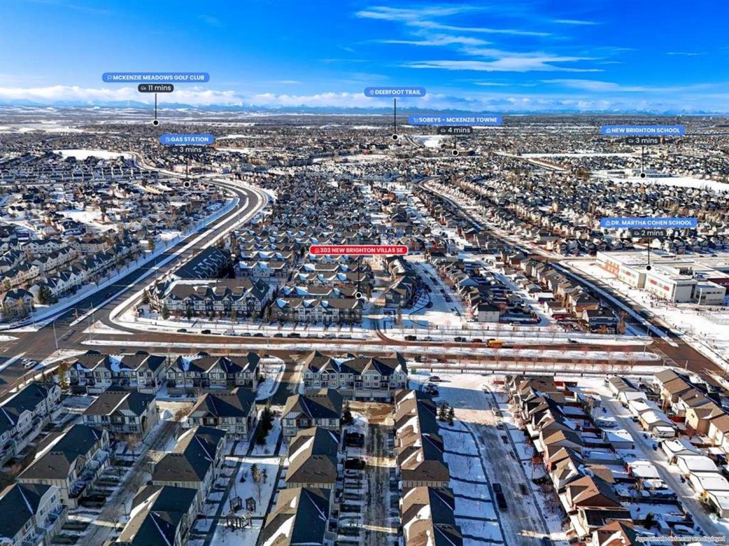 *** OPEN HOUSE SATURDAY JANUARY 10TH AND SUNDAY JANUARY 11TH 12-4 PM *** Welcome to your new home at 303 New Brighton Villas SE! A truly impressive and majestic end unit townhome that immediately captivates right as you enter with its high ceiling, tiled entryway, stunning chandelier, and an abundance of natural light streaming through the extra windows that only an end unit like this can offer. The bright, airy, and thoughtfully designed open concept main level is ideal for both everyday living and entertaining, featuring a spacious living room that flows effortlessly into a dining room and beautiful kitchen with ample cabinetry, generous counter space, and a convenient breakfast bar. A 2 piece bathroom completes the main floor, while air conditioning ensures year round comfort throughout your home. Adding exceptional value and convenience is the fully drywalled double attached garage, perfect for secure parking that can fit 2 bigger SUV's and additional storage. Upstairs, the home truly shines with two impressively large primary bedrooms, each designed as its own private retreat, both complete with a walk in closet and a full ensuite bathroom, a rare and highly desirable layout that offers outstanding comfort, flexibility, and privacy. Pride of ownership is evident throughout with numerous updates including a new hot water tank (2022), dishwasher (2022), microwave hood fan (2023), hand held shower head (2023), washer and dryer (2023), and all lighting upgraded in 2023. The well managed complex has also seen a full roof replacement approximately three years ago, offering peace of mind while maintaining impressively low condo fees. Enjoy the charming front patio for relaxing mornings or evenings, and take advantage of the unbeatable location in the vibrant community of New Brighton, close to playgrounds, schools, walking and biking paths, and nearby shopping plazas. This is a home that feels special from the moment you arrive and continues to impress at every turn. Make it yours today!