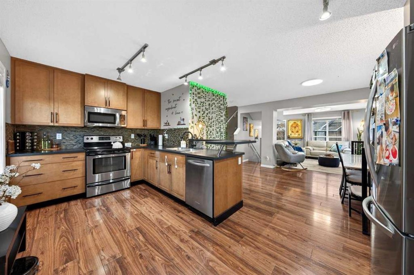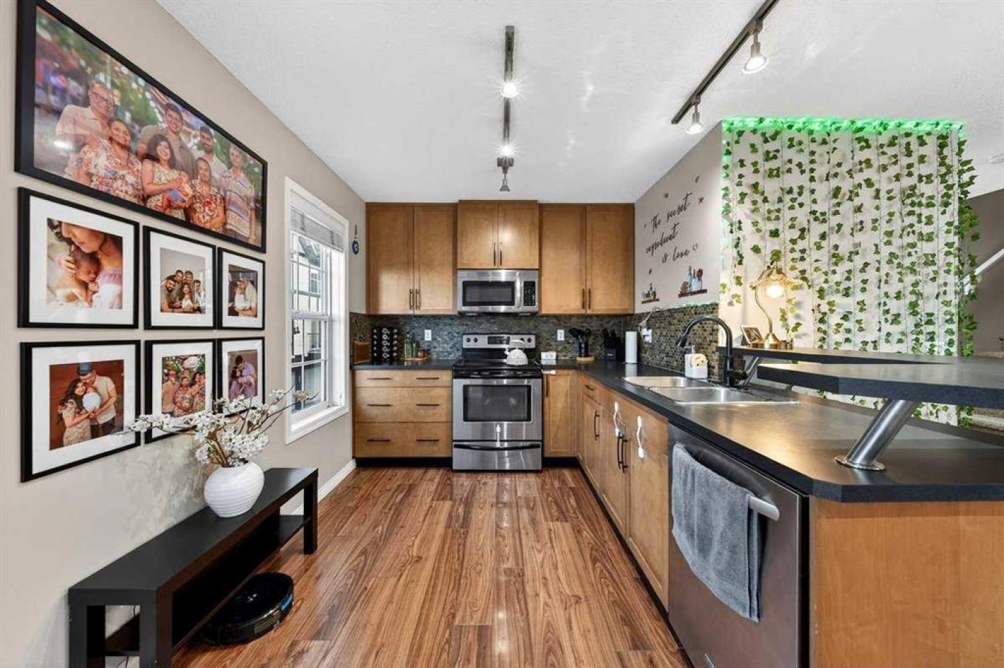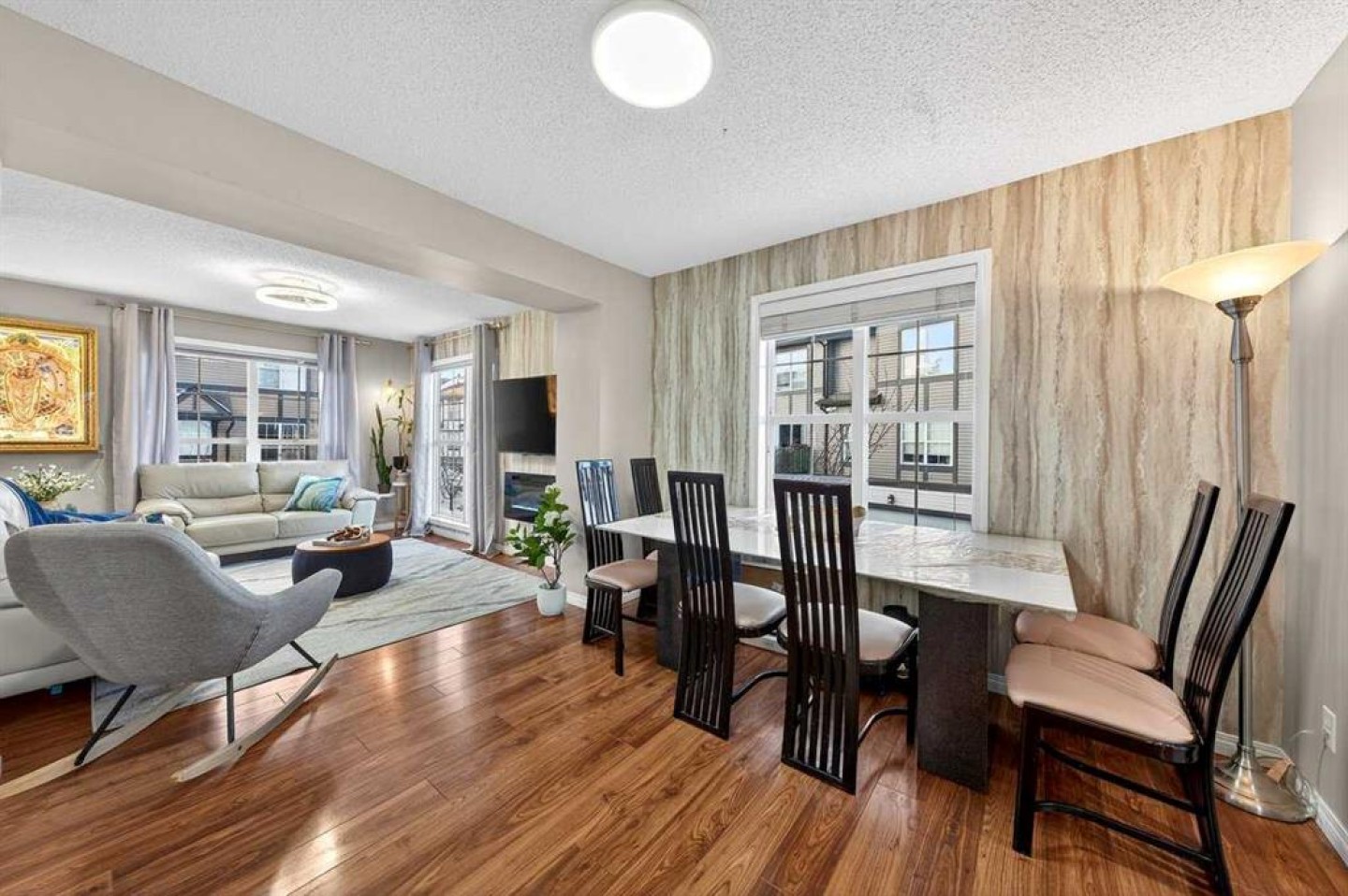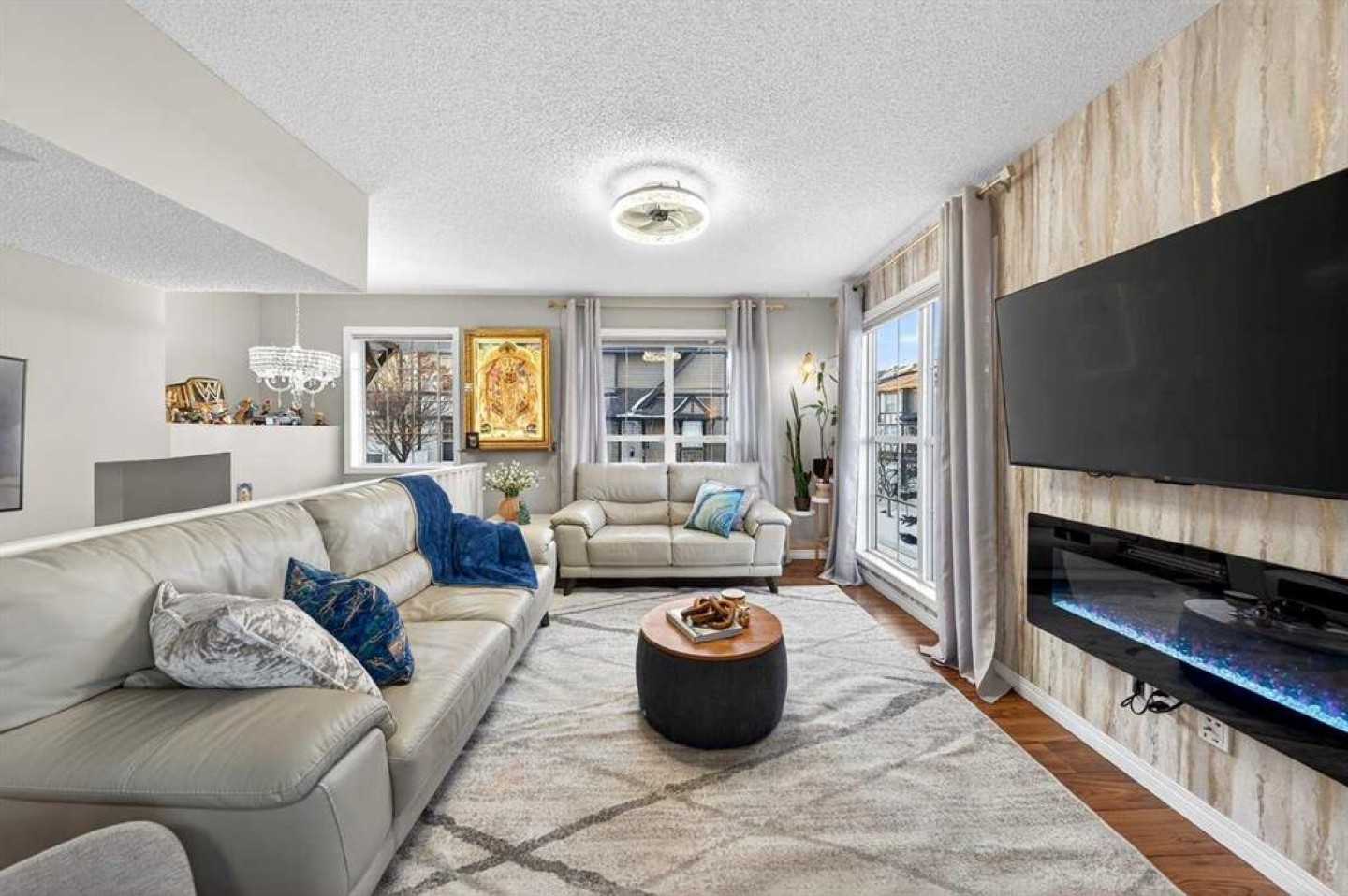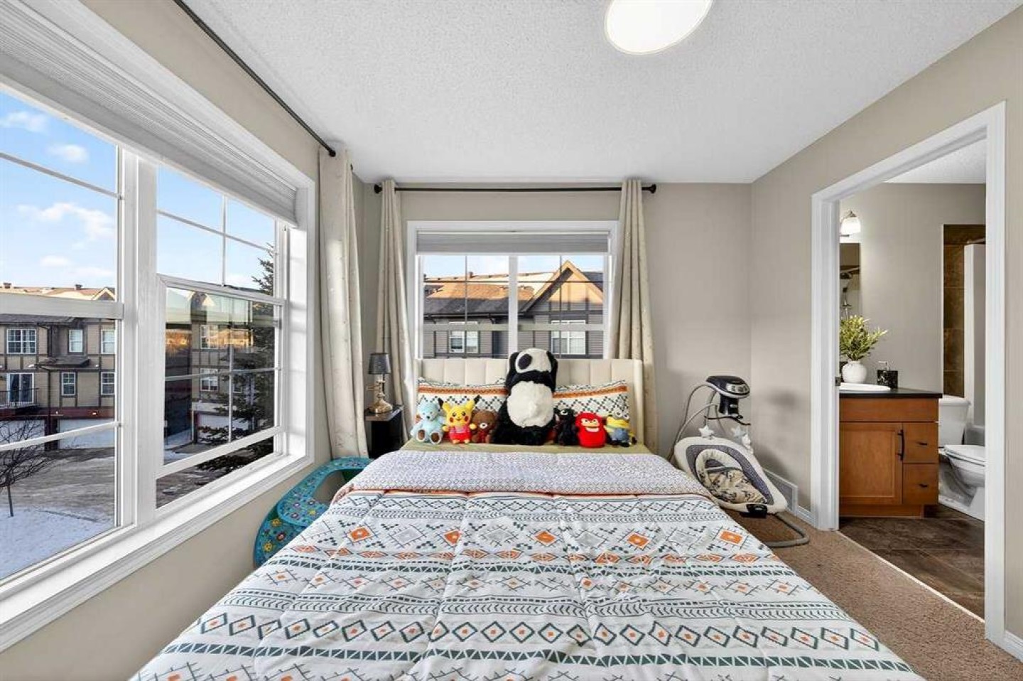 *** OPEN HOUSE SATURDAY JANUARY 10TH AND SUNDAY JANUARY 11TH 12-4 PM *** Welcome to your new home at 303 New Brighton Villas SE! A truly impressive and majestic end unit townhome that immediately captivates right as you enter with its high ceiling, tiled entryway, stunning chandelier, and an abundance of natural light streaming through the extra windows that only an end unit like this can offer. The bright, airy, and thoughtfully designed open concept main level is ideal for both everyday living and entertaining, featuring a spacious living room that flows effortlessly into a dining room and beautiful kitchen with ample cabinetry, generous counter space, and a convenient breakfast bar. A 2 piece bathroom completes the main floor, while air conditioning ensures year round comfort throughout your home. Adding exceptional value and convenience is the fully drywalled double attached garage, perfect for secure parking that can fit 2 bigger SUV's and additional storage. Upstairs, the home truly shines with two impressively large primary bedrooms, each designed as its own private retreat, both complete with a walk in closet and a full ensuite bathroom, a rare and highly desirable layout that offers outstanding comfort, flexibility, and privacy. Pride of ownership is evident throughout with numerous updates including a new hot water tank (2022), dishwasher (2022), microwave hood fan (2023), hand held shower head (2023), washer and dryer (2023), and all lighting upgraded in 2023. The well managed complex has also seen a full roof replacement approximately three years ago, offering peace of mind while maintaining impressively low condo fees. Enjoy the charming front patio for relaxing mornings or evenings, and take advantage of the unbeatable location in the vibrant community of New Brighton, close to playgrounds, schools, walking and biking paths, and nearby shopping plazas. This is a home that feels special from the moment you arrive and continues to impress at every turn. Make it yours today!