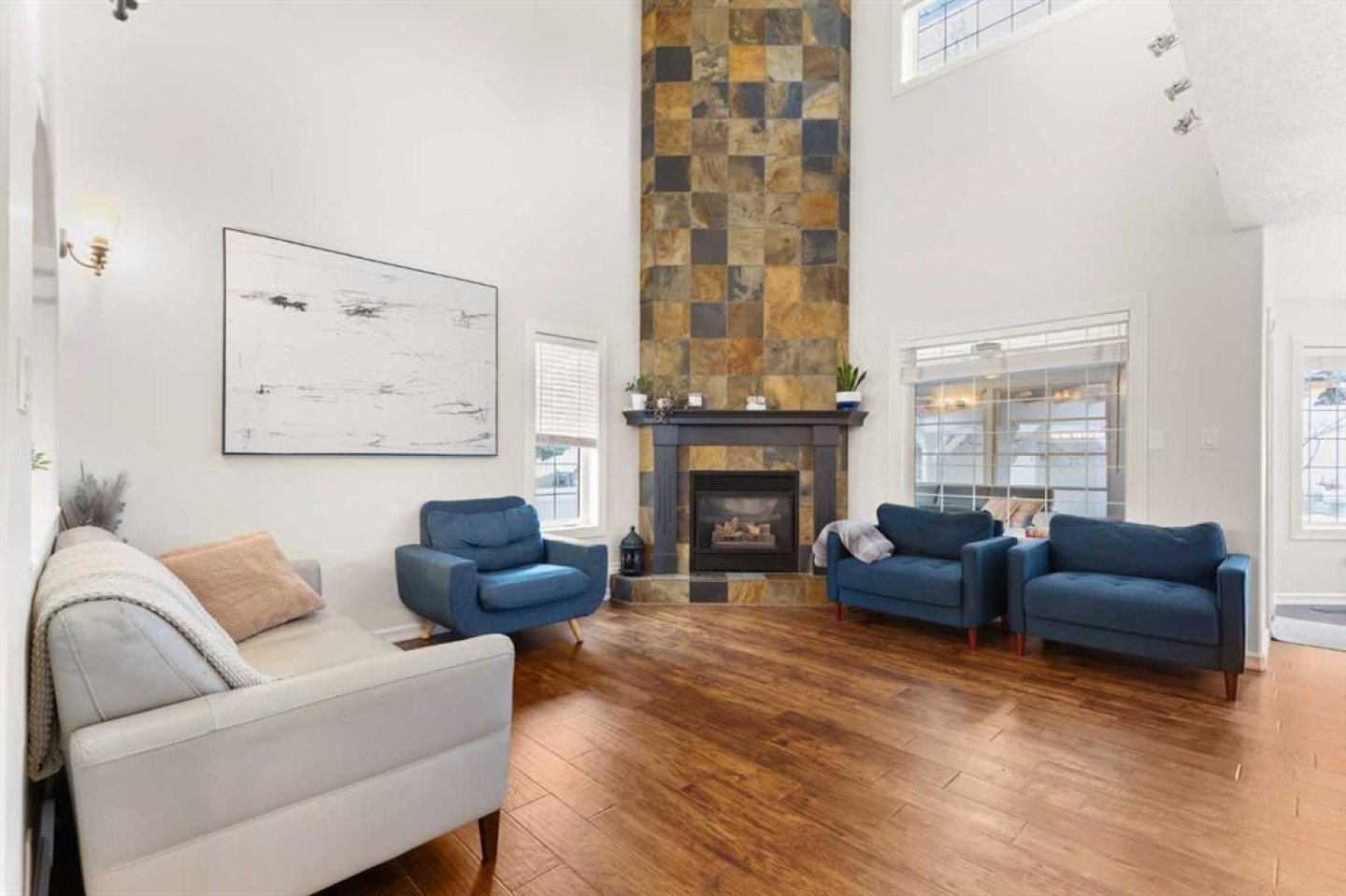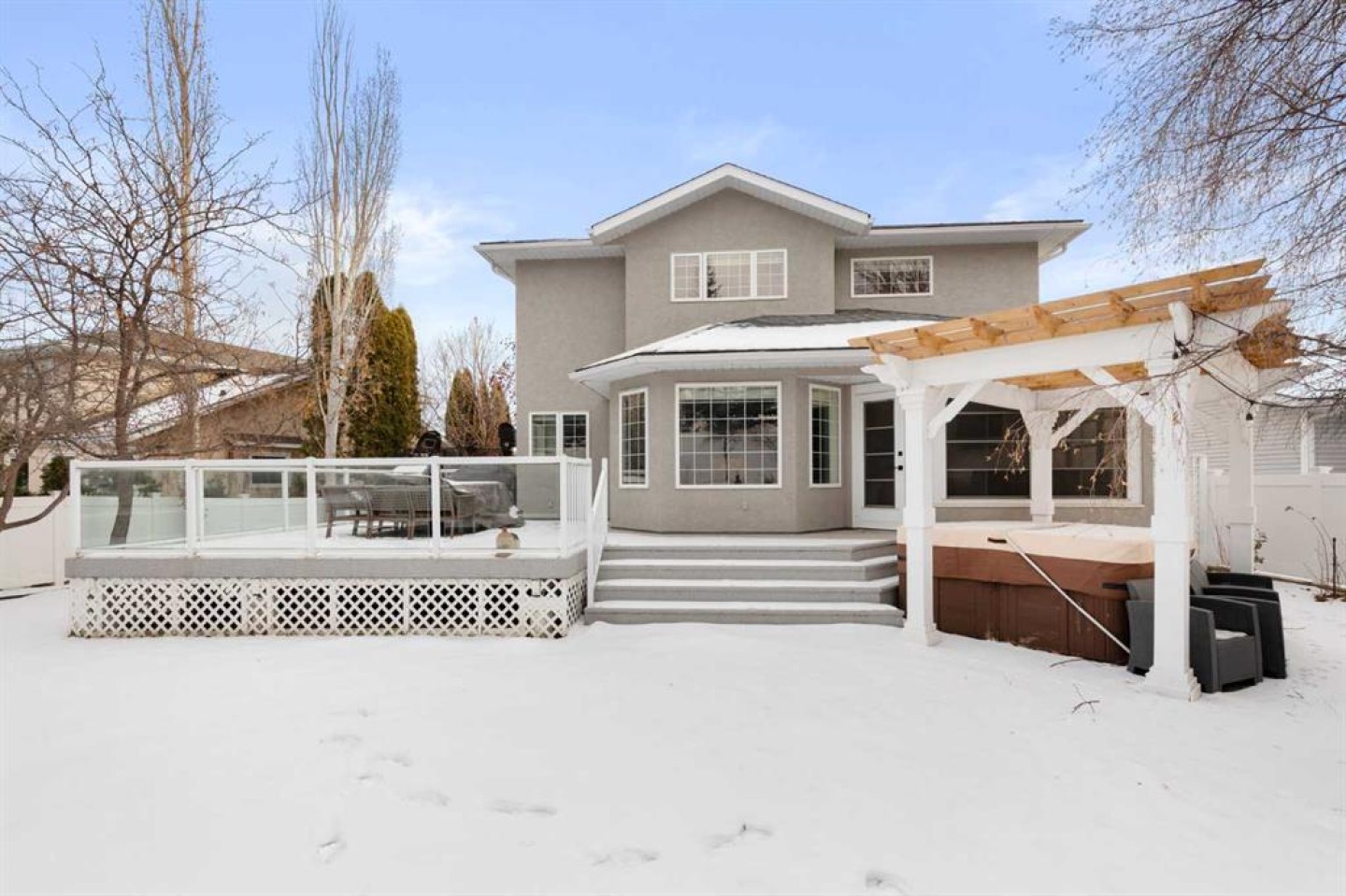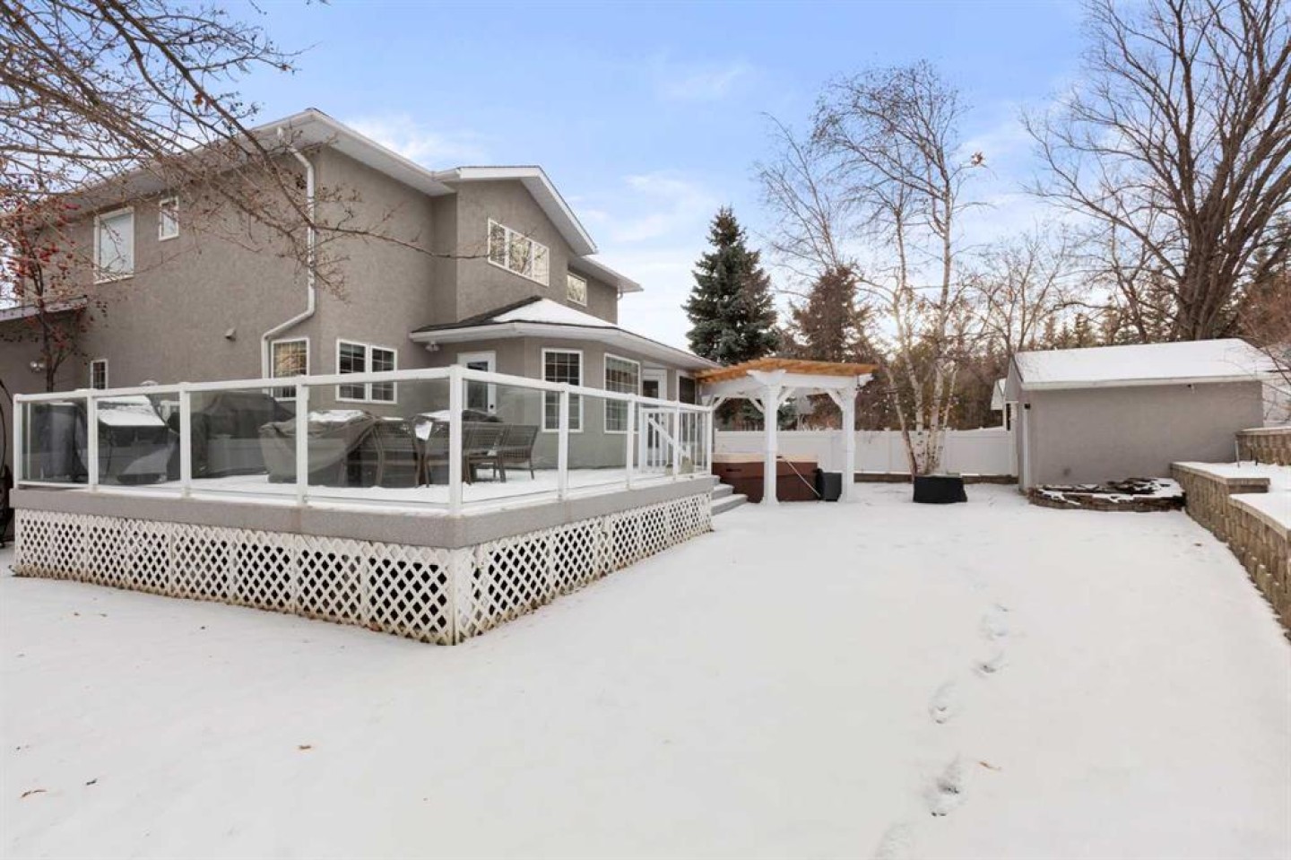 Welcome to this exceptional, stylish 2-storey family home in the sought-after community of Parkview, offering over 2,200 sq ft of thoughtfully designed and beautifully finished living space. From the moment you step inside, the quality of craftsmanship and clear pride of ownership are evident throughout. The open-concept main floor is ideal for both everyday living and entertaining, featuring a large, well-appointed kitchen that flows effortlessly into the family room. Vaulted ceilings and a striking floor-to-ceiling tiled fireplace create a warm yet impressive focal point, while expansive windows fill the space with natural light. A main-floor office with large windows provides a bright and functional workspace. The upper level offers three spacious bedrooms, including a peaceful primary retreat complete with a walk-in closet and a full 4-piece ensuite. The fully finished basement continues the home’s high standard of finish, featuring a comfortable family room, a fourth bedroom, and a versatile flex space currently used as a gym—ideal for fitness, hobbies, or a play space. Step outside to discover one of the home’s standout features: a private, beautifully maintained yard designed for relaxation and entertaining. Enjoy quiet mornings or summer evenings on the deck, surrounded by privacy, or unwind in the enclosed three-season sunroom that extends your outdoor living well beyond the summer months. This is a meticulously cared-for home where quality construction, thoughtful design, and true pride of ownership come together to create an outstanding family property.