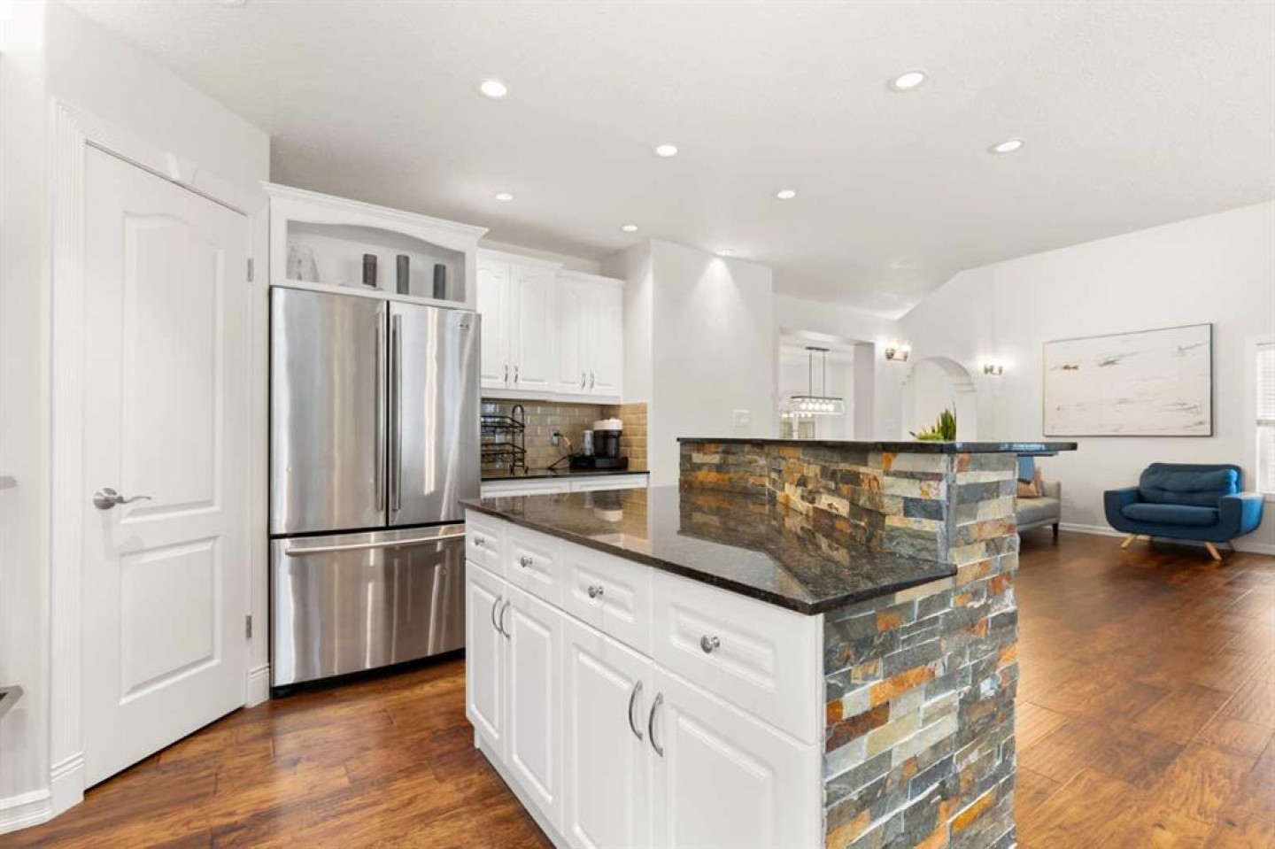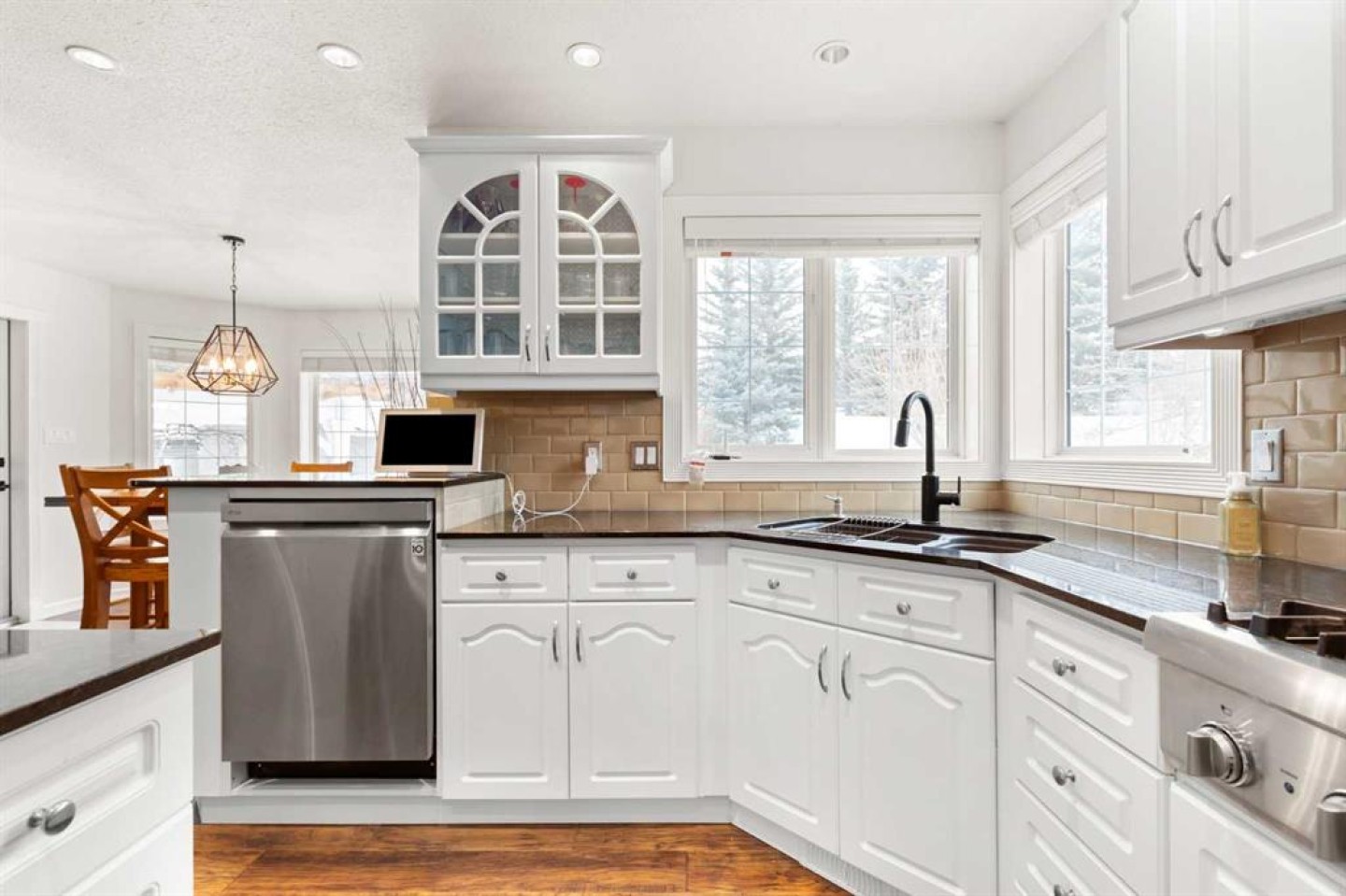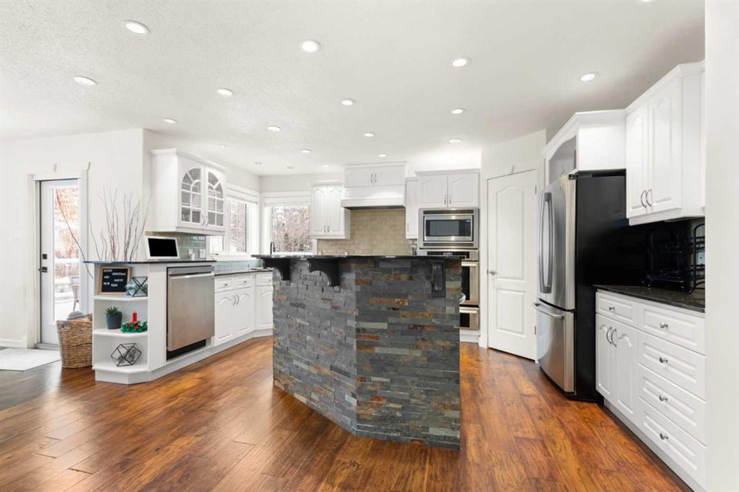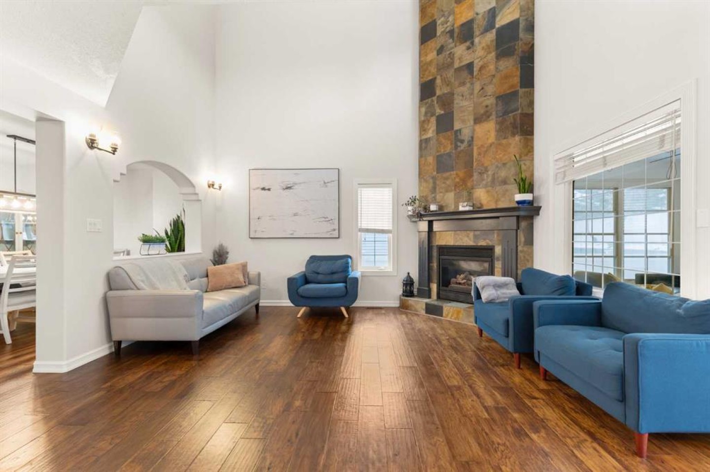 Welcome to this exceptional, stylish 2-storey family home in the sought-after community of Parkview, offering over 2,200 sq ft of thoughtfully designed and beautifully finished living space. From the moment you step inside, the quality of craftsmanship and clear pride of ownership are evident throughout. The open-concept main floor is ideal for both everyday living and entertaining, featuring a large, well-appointed kitchen that flows effortlessly into the family room. Vaulted ceilings and a striking floor-to-ceiling tiled fireplace create a warm yet impressive focal point, while expansive windows fill the space with natural light. A main-floor office with large windows provides a bright and functional workspace. The upper level offers three spacious bedrooms, including a peaceful primary retreat complete with a walk-in closet and a full 4-piece ensuite. The fully finished basement continues the home’s high standard of finish, featuring a comfortable family room, a fourth bedroom, and a versatile flex space currently used as a gym—ideal for fitness, hobbies, or a play space. Step outside to discover one of the home’s standout features: a private, beautifully maintained yard designed for relaxation and entertaining. Enjoy quiet mornings or summer evenings on the deck, surrounded by privacy, or unwind in the enclosed three-season sunroom that extends your outdoor living well beyond the summer months. This is a meticulously cared-for home where quality construction, thoughtful design, and true pride of ownership come together to create an outstanding family property.