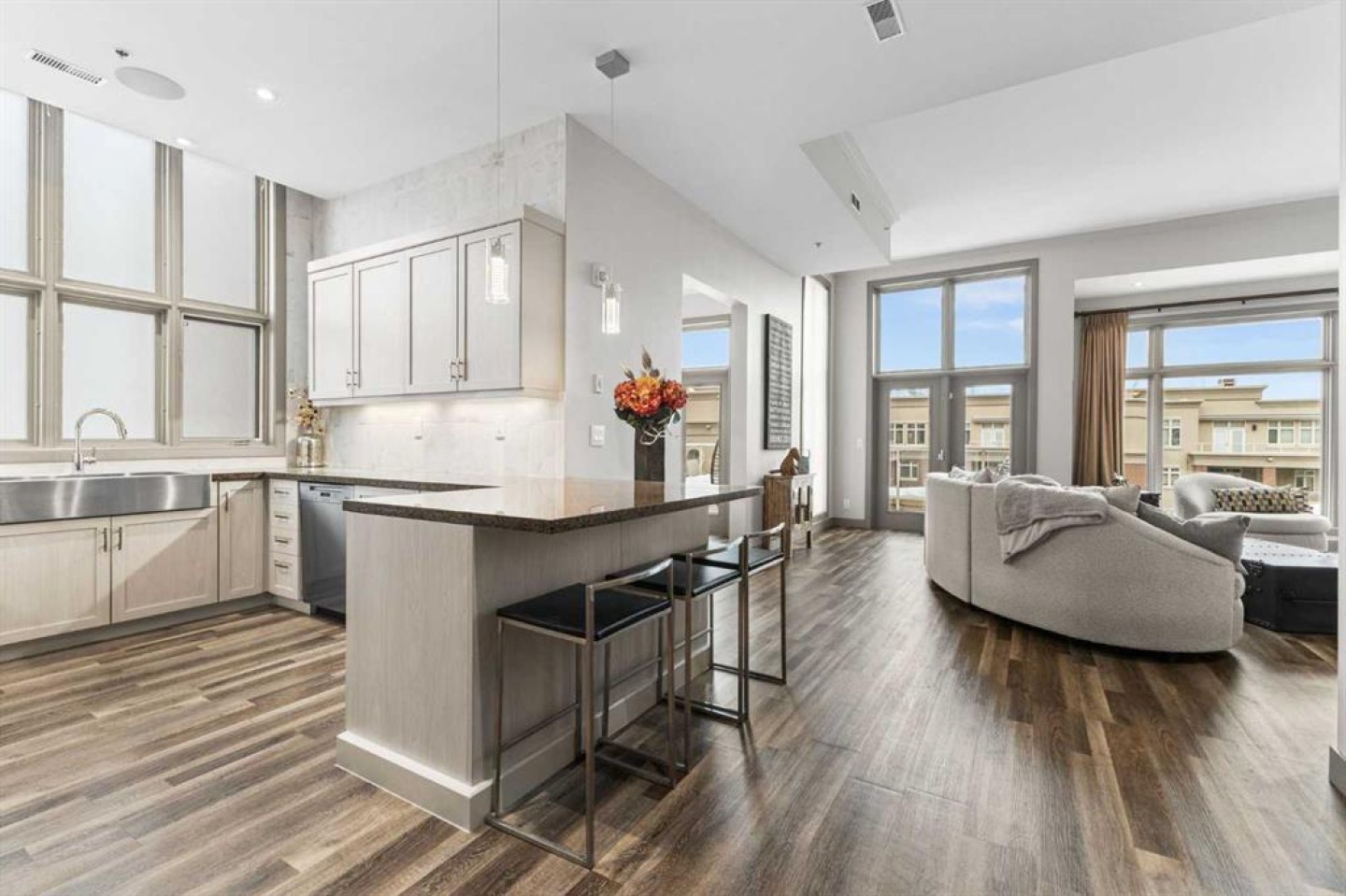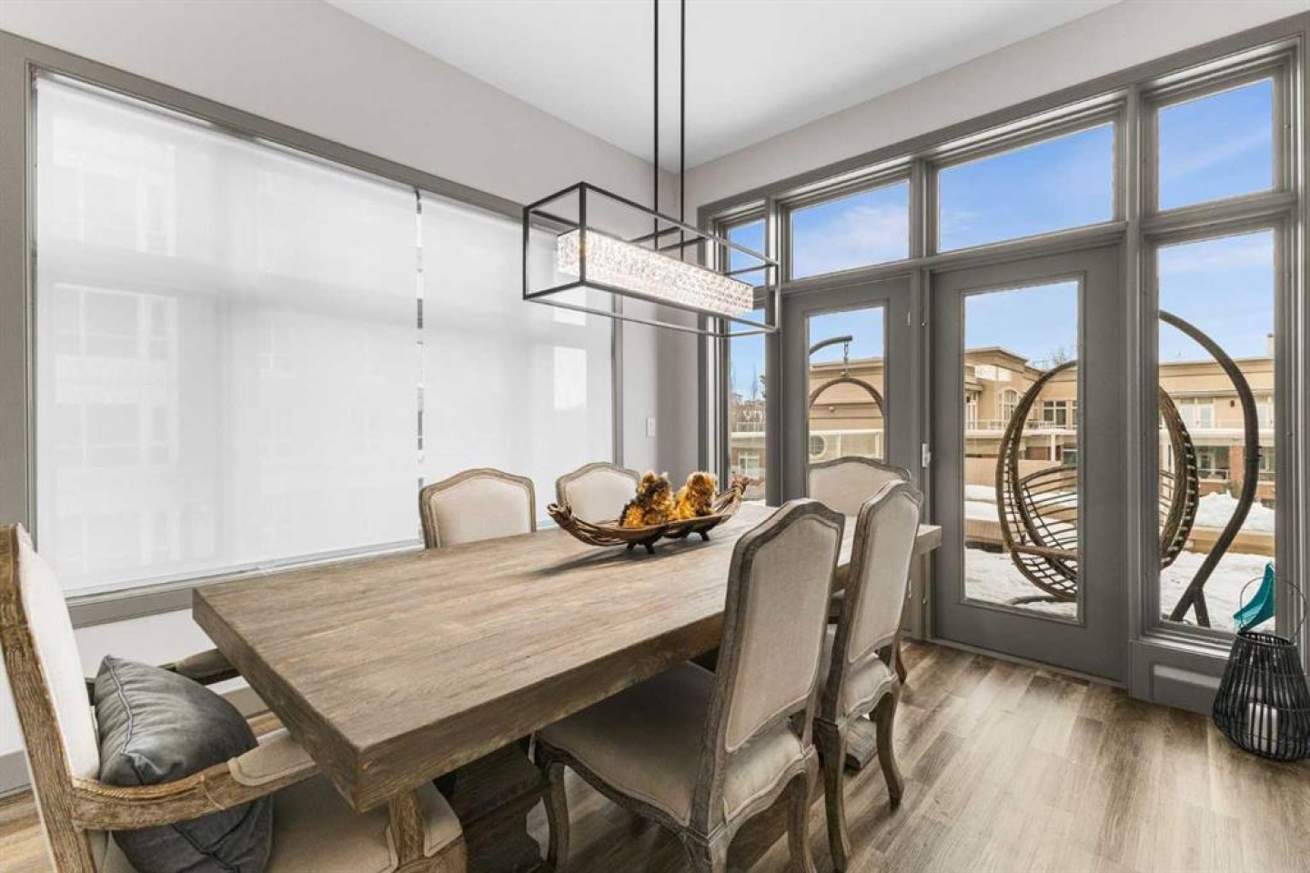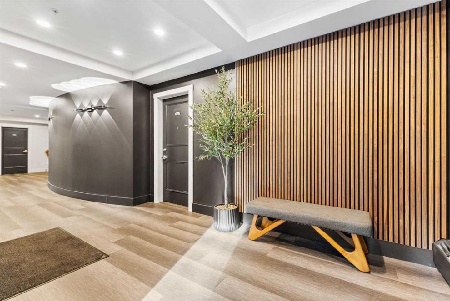 Exceptional completely renovated 2 bedroom, 2 bath penthouse residence offering over 1500 sq ft of luxurious living space in coveted Eau Claire, just steps to picturesque Prince’s Island Park & scenic Bow River pathways. This well-appointed condo presents hardwood floors, soaring ceilings & is drenched in natural light, showcasing a spacious living room with terrace access & anchored by a stunning floor to ceiling fireplace. A formal dining room adorned with an elegant chandelier affords ample space to entertain family & friends. The kitchen is beautifully finished with granite counter tops, eating bar, plenty of storage space & all new high-end stainless steel appliances. Just off the living room, the primary bedroom with balcony access features abundant closet space & private 5 piece ensuite with dual sinks, relaxing freestanding soaker tub & separate shower. The second bedroom & 3 piece bath are ideal for guests. Other notable features include in-suite laundry, 3 large terraces with north & west views, halogen recessed lighting, in-floor heat, central air conditioning, humidification through forced air & power blinds on high windows. Also enjoy the convenience of 2 titled underground parking stalls near the elevator, one titled storage space & recently renovated common areas. The central location can’t be beat – Bow River pathways & Prince’s Island Park & the Peace Bridge are just steps away plus downtown restaurants & amenities are close by. This elegant residence offers the ultimate in exclusivity & privacy with only 4 units on the floor & no noise from above.