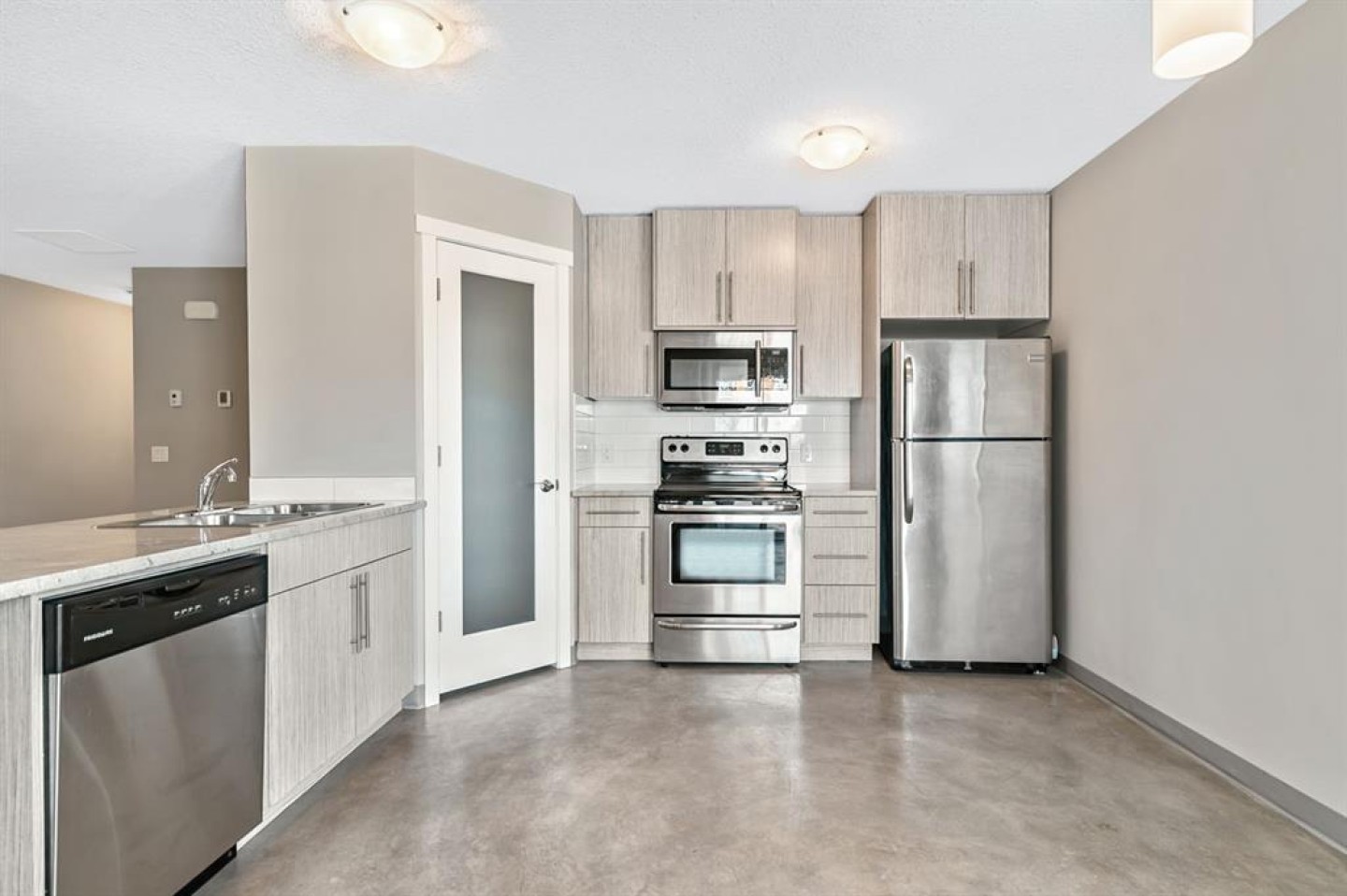 Dishwasher, Microwave Hood Fan, Refrigerator, Stove(s), Washer/Dryer Stacked