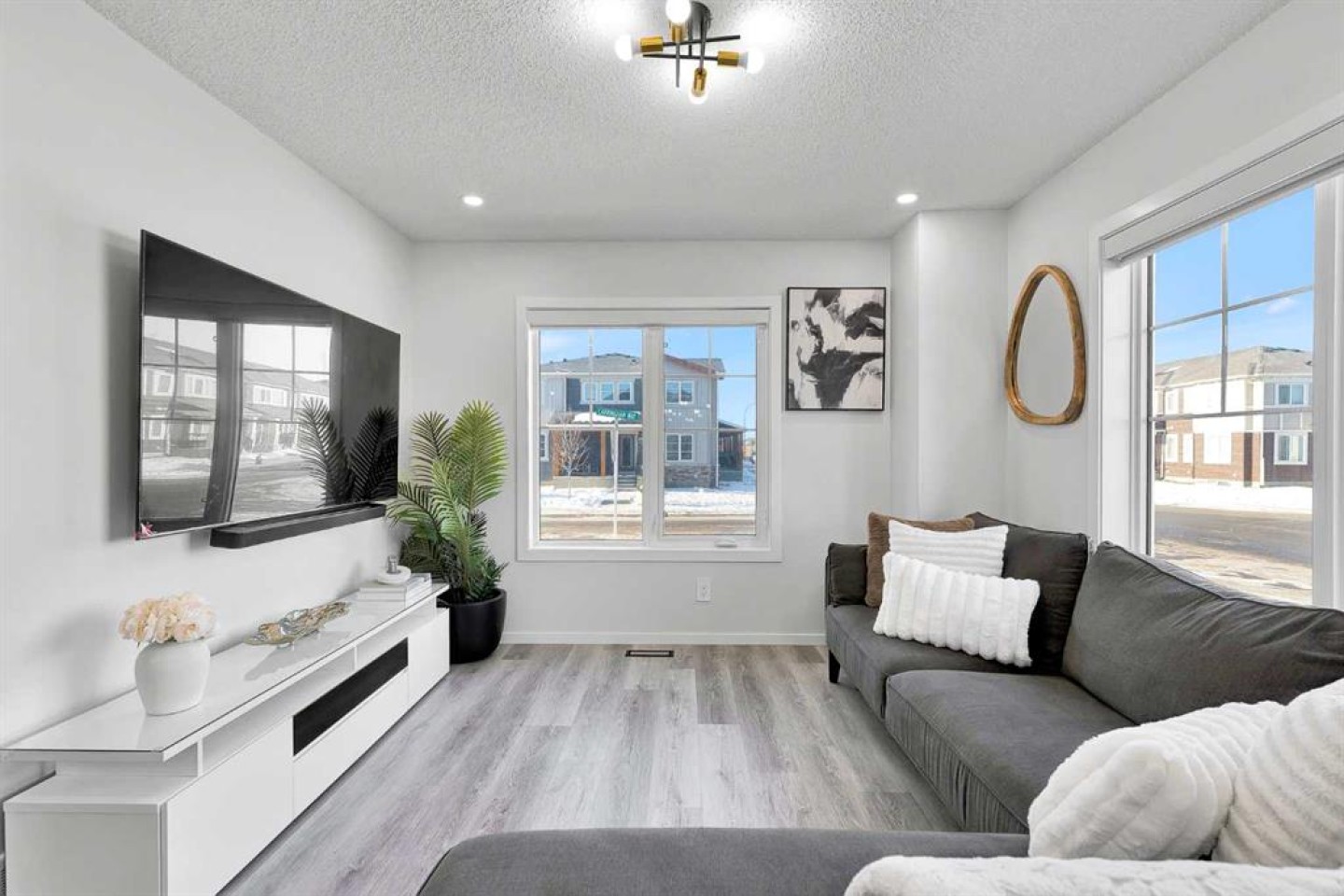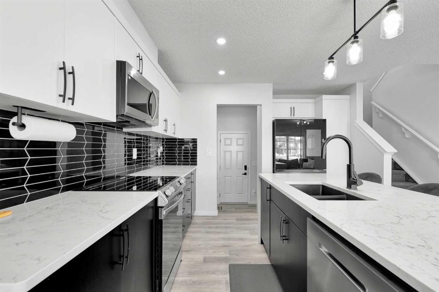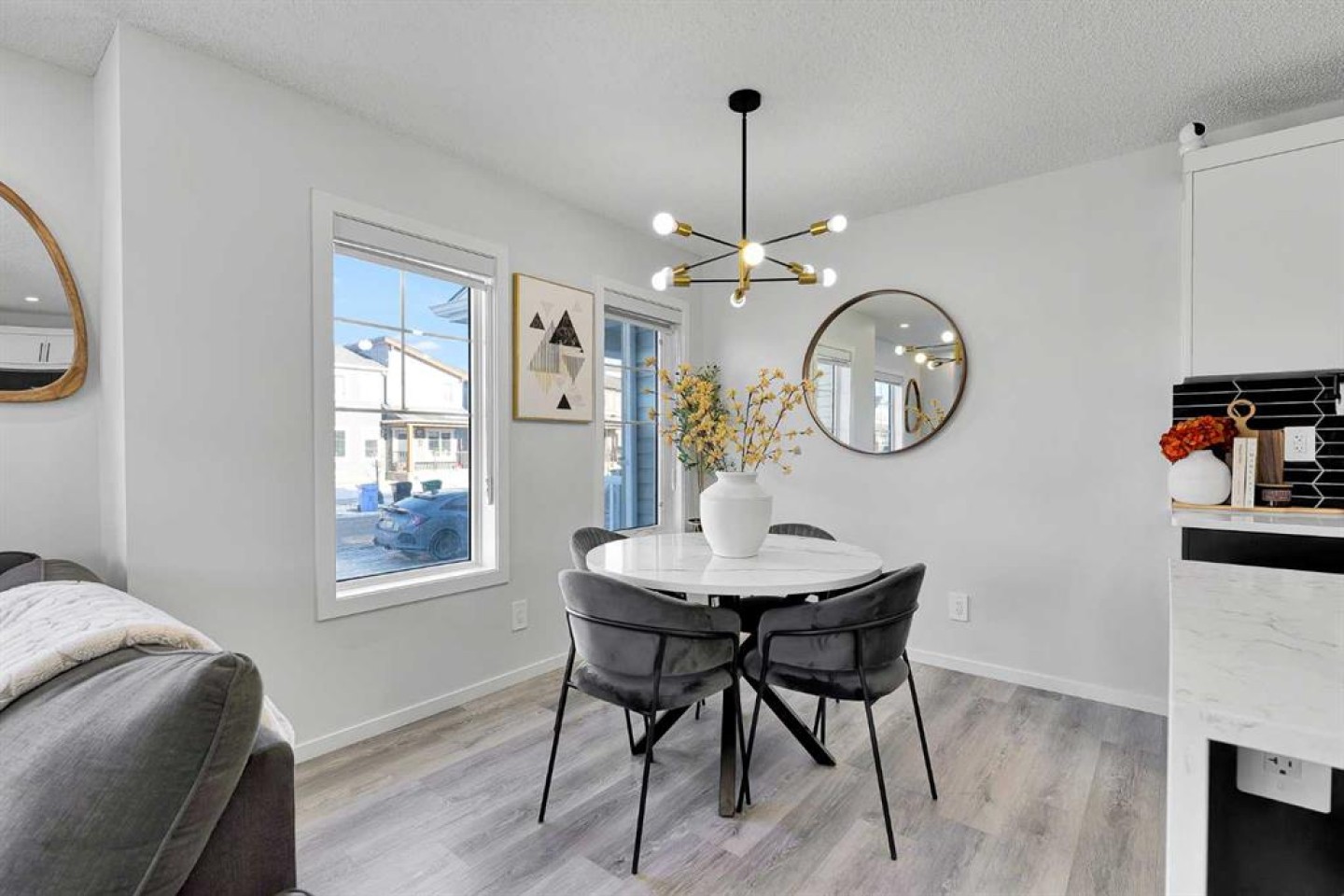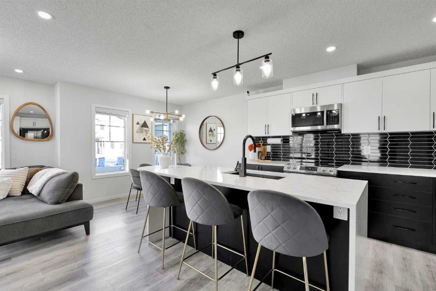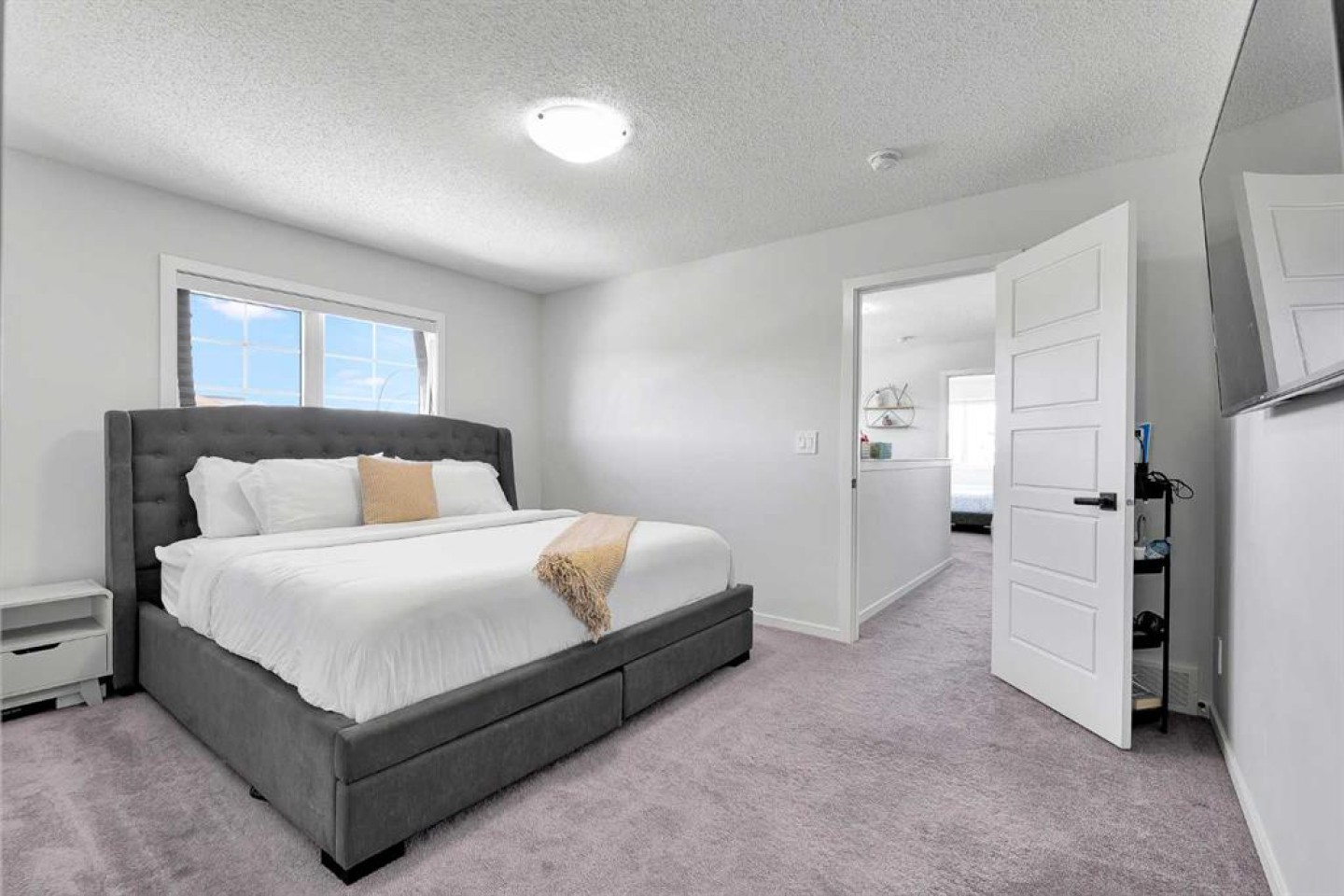 Located in the family-centric community of Carrington, this nearly new and impeccably maintained 3 Bed 3 Bath, air conditioned home, is the one you’ve been waiting for. Welcome to 11 Carringham Way NW! This unique corner unit features a private side entrance, offering the feel and look of a detached home. Upon entry, the main floor showcases impressive upgrades, including luxury vinyl plank flooring, a custom blind package, and stylish light fixtures. The kitchen is designed for both everyday living and entertaining, featuring a large quartz island, upgraded appliances, and ample cabinetry to meet all your storage needs. The open-concept layout includes a dedicated dining area and a bright front living room, perfect for gatherings. Extra windows throughout this corner unit flood the space with natural light thanks to its desirable west exposure. Upstairs, the primary bedroom provides a comfortable retreat with a walk-in closet and a four-piece ensuite—an ideal space for Mom and Dad as well as a private balcony that benefits from those sunny SW Mountain views. Two additional bedrooms, another four-piece bathroom, and convenient upper-level laundry complete the second floor. The basement is unfinished and ready for your creative vision. Outside, this oversized corner lot offers the option to fence the west and northwest sides, creating a private outdoor space. The insulated double attached garage is a welcome feature during Calgary’s cold winter months. Ideally located close to parks, playgrounds, shopping, and schools, with quick access to Stoney Trail and Deerfoot Trail. A future LRT extension and additional commercial development further enhance the long-term value of this fantastic home. Book your private showing today!