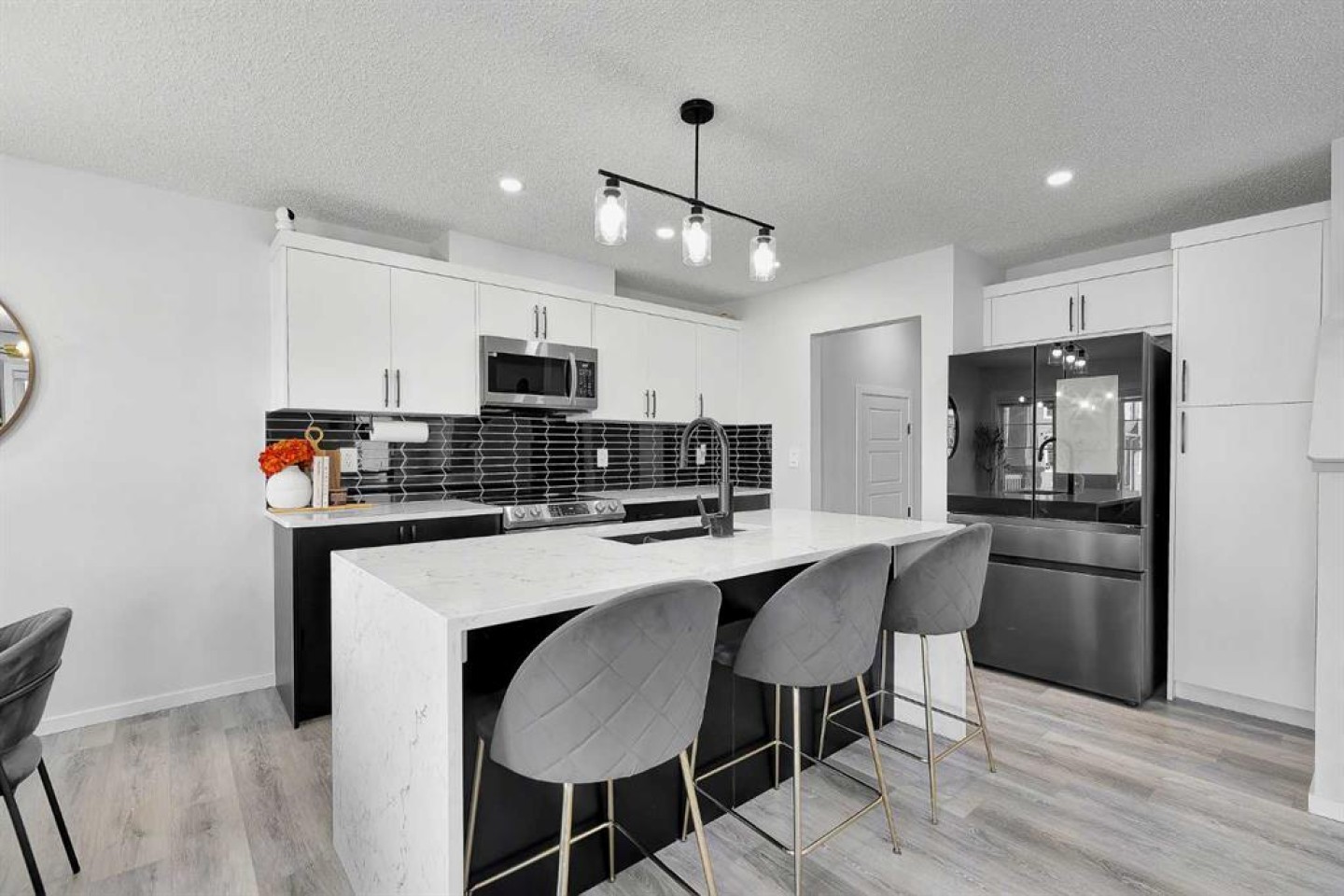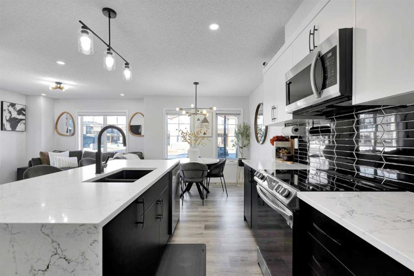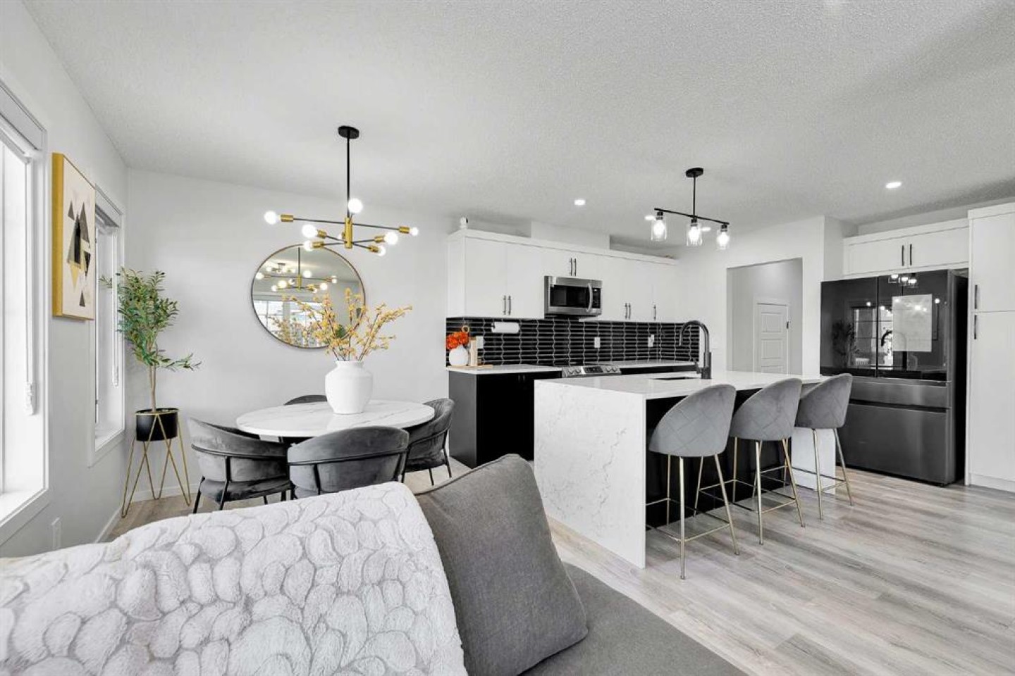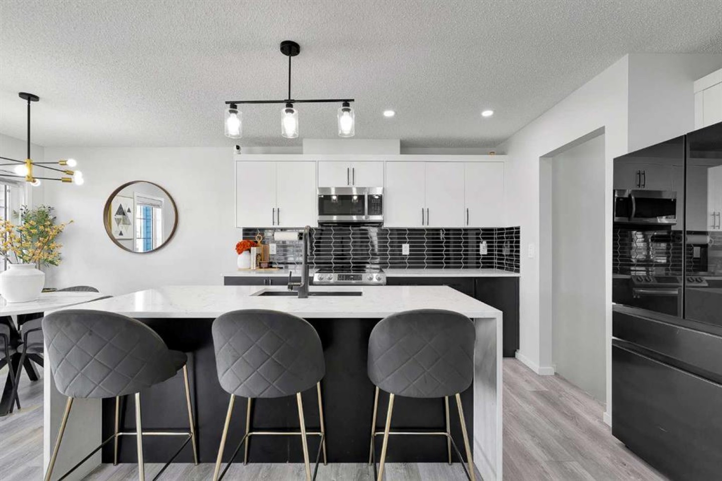 Located in the family-centric community of Carrington, this nearly new and impeccably maintained 3 Bed 3 Bath, air conditioned home, is the one you’ve been waiting for. Welcome to 11 Carringham Way NW! This unique corner unit features a private side entrance, offering the feel and look of a detached home. Upon entry, the main floor showcases impressive upgrades, including luxury vinyl plank flooring, a custom blind package, and stylish light fixtures. The kitchen is designed for both everyday living and entertaining, featuring a large quartz island, upgraded appliances, and ample cabinetry to meet all your storage needs. The open-concept layout includes a dedicated dining area and a bright front living room, perfect for gatherings. Extra windows throughout this corner unit flood the space with natural light thanks to its desirable west exposure. Upstairs, the primary bedroom provides a comfortable retreat with a walk-in closet and a four-piece ensuite—an ideal space for Mom and Dad as well as a private balcony that benefits from those sunny SW Mountain views. Two additional bedrooms, another four-piece bathroom, and convenient upper-level laundry complete the second floor. The basement is unfinished and ready for your creative vision. Outside, this oversized corner lot offers the option to fence the west and northwest sides, creating a private outdoor space. The insulated double attached garage is a welcome feature during Calgary’s cold winter months. Ideally located close to parks, playgrounds, shopping, and schools, with quick access to Stoney Trail and Deerfoot Trail. A future LRT extension and additional commercial development further enhance the long-term value of this fantastic home. Book your private showing today!