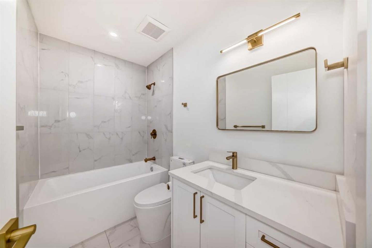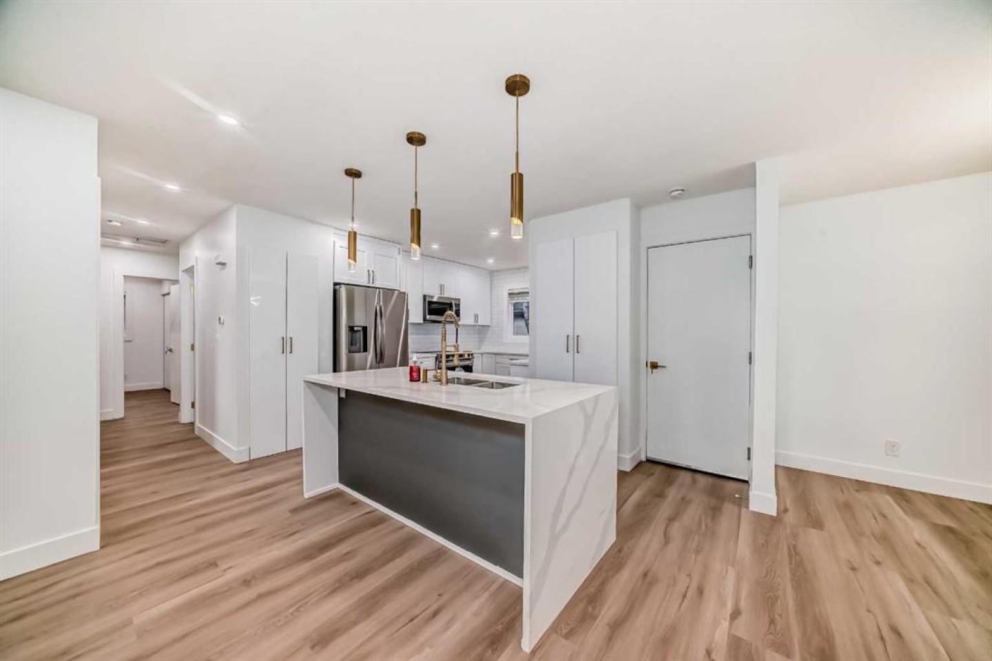 Beautiful, substantially renovated and remodeled bungalow in a superb Huntington Hills location. Original floor plan has been opened up providing spacious contemporary living spaces. 4 bedrooms up plus a new LEGAL 3-bedroom suite down. Luxury vinyl plank flooring stretches throughout the main and lower level. The oversized central island highlights the substantial kitchen. Ample amounts of crisp white cabinetry and beautiful quartz countertops. Classic subway tile backsplash. New stainless-steel appliances include a French door fridge. The adjacent open dining and living room areas are bright and spacious. Lovely primary suite features a 2-piece ensuite bath. New main bath contains a soaker tub/shower with tile surround, tiled floor and new white vanity. The lower legal suite offers a separate entrance and stress-free generational living or mortgage helper. The open plan is highlighted by a large white kitchen with loads of cabinet space and quartz countertops. Central island and stainless-steel appliances round out the kitchen. Large adjacent rec room/living room. 3 more generous bedrooms plus another new full bath complete the lower level. Updated landscaping included the removal of some intrusive trees, new deck, some new concrete walkways, new retaining wall, new sod and exterior paint and stucco. Interior updates included all new plumbing up and down, New electrical panel, new wiring down, most windows are new and window coverings, all new kitchens and baths, new plumbing hardware, new light fixtures, new interior doors, trim, baseboard and casing, new paint, new knockdown ceilings, new flooring. Quiet location backing onto a well treed greenspace. Minutes to all levels of schools, major road arteries, public transit & shopping. The total package!