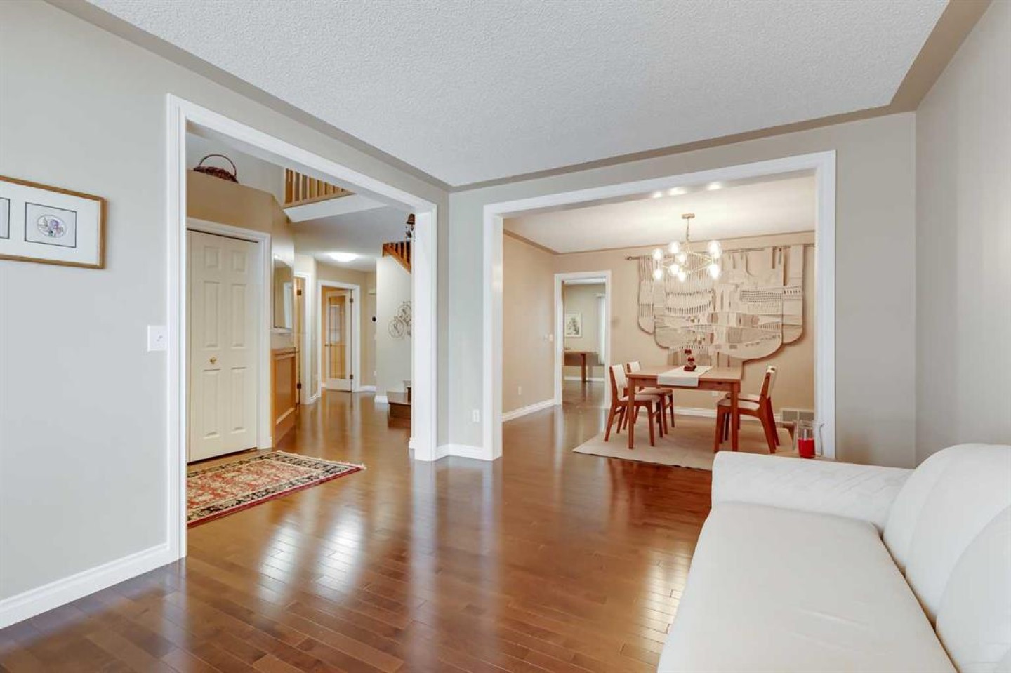 Offered for the first time, this original-owner home is in truly immaculate condition and has been thoughtfully updated over the years. With spacious principal rooms, timeless finishes (including gleaming hardwood floors on the main, stairway and upper hallway) and exceptionally cared for throughout, this is a property that stands out from the moment you arrive. A welcoming front foyer opens to a bright front living room and adjacent dining room, perfect for hosting family and friends. The chef-friendly kitchen is the heart of the home, featuring an expansive granite island, custom full-height oak cabinetry, pantry, new vinyl plank flooring and a sunny dining nook. The main-floor family room offers a cozy place to relax, while a main-floor den provides ideal space for a home office or quiet retreat. Upstairs, the generous size primary bedroom is finished with warm cork flooring, a large walk-in closet, and a luxurious spa-like ensuite with jetted tub, separate shower, twin-sink vanity, and heated floor. Two additional bedrooms, a bonus room with closet (could be used as a 4th bedroom), plus a 5-piece family bathroom with heated flooring and a huge laundry room for added convenience complete this level. The fully developed lower level features a recreation room with electric fireplace, a games room, and roughed-in plumbing for a future bathroom. Practical upgrades include two furnaces, two hot water tanks, and two air-conditioning units, ensuring comfort and efficiency year-round. Additional highlights include an oversized double attached garage that is insulated and drywalled, updated windows, 40-year shingles installed in 2009, and low-maintenance Trex decking on both the front verandah and rear decks. Ideally located just minutes from the recreation centre and lake, local schools, Fish Creek Park, and with excellent access to LRT, Stoney Trail, and Deerfoot Trail, plus shopping and entertainment at The Shoppes of Shawnessy and Shawnessy Village. This is a rare opportunity to own a beautifully maintained, move-in-ready home in an outstanding location. Don’t miss this exceptional property.