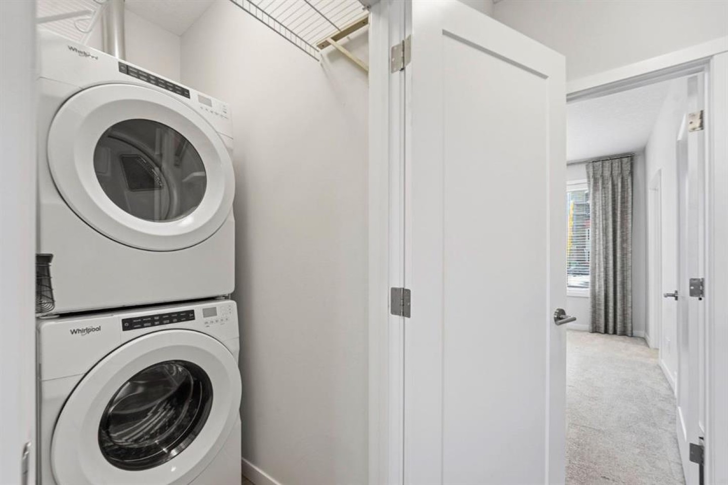 Welcome to this beautifully designed former show home, where modern style meets everyday functionality. Thoughtfully laid out with two private primary suites—each featuring its own ensuite and walk-in closet—this home is perfectly suited for professionals, first-time buyers, investors, or small families. A tandem attached garage offers added convenience and extra storage. The open-concept living space is highlighted by designer finishes and upgrades throughout, including quartz countertops, upgraded cabinetry, a gas range, stainless steel appliances, durable vinyl plank flooring, and a sleek eat-up island ideal for entertaining. Eye-catching feature walls add character to both bedrooms and the dining area, while raised ensuite vanities and upper-level laundry enhance daily comfort. Flexible spaces on both the main and upper levels allow for a home office or study area. Step out onto the private balcony off the dining area—perfect for grilling or relaxing outdoors. Additional value comes from thoughtful inclusions such as a custom closet organizer with full-length mirror, premium Sanus full-motion TV mount, modern window coverings, and wall shelving.. Ideally located in Calgary’s sought-after southwest, this home offers easy access to major roadways and transit, on-site amenities, and is just steps from tennis courts, playgrounds, the C-Train, and scenic Fish Creek pathways. Shopping and everyday conveniences are only minutes away. Stylish, move-in ready, and perfectly located—this is modern living at its best. Book your showing today.