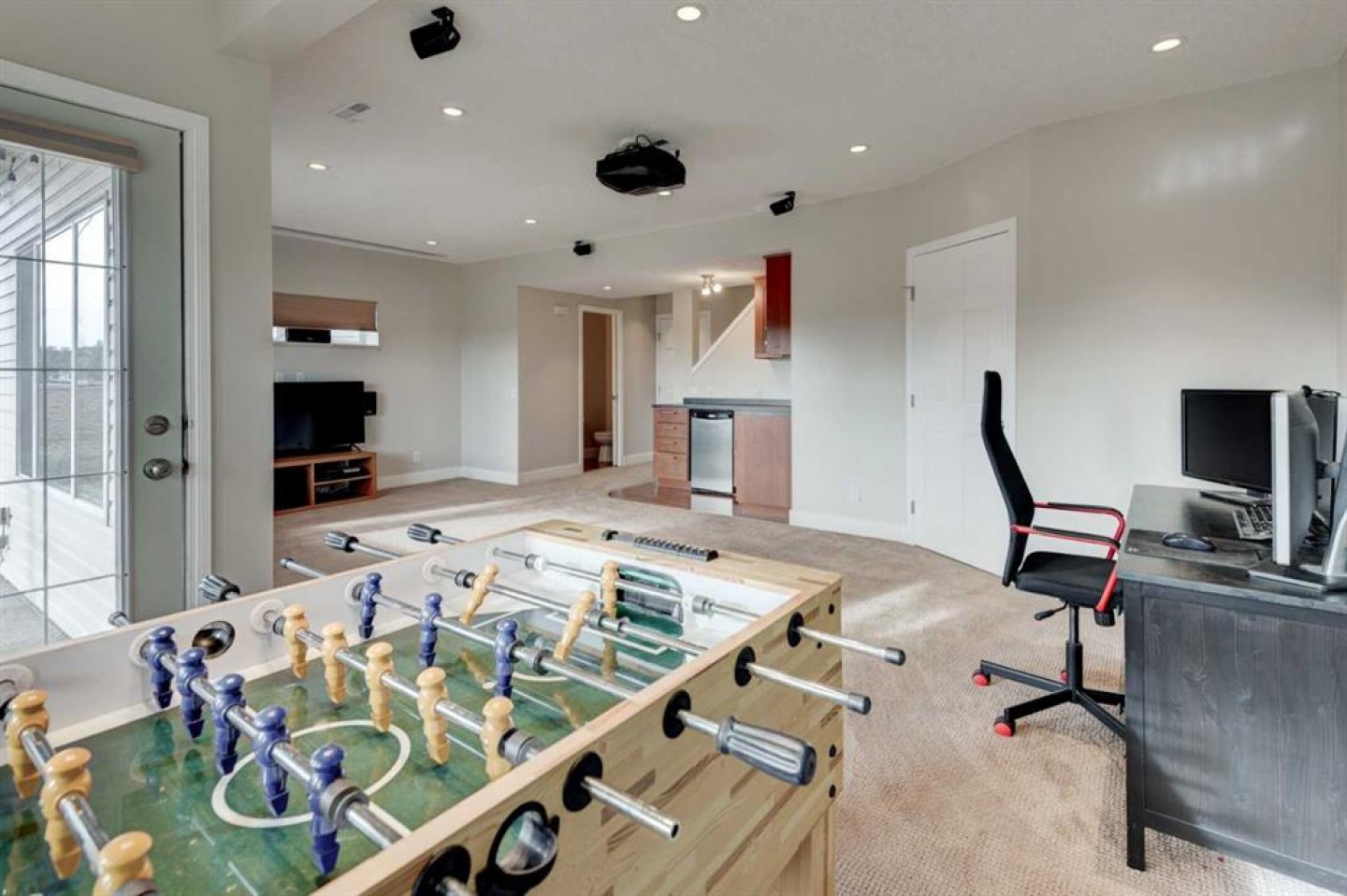 Welcome to 45 Cougarstone Place SW, a beautifully maintained south-facing WALKOUT half duplex offering a rare combination of mountain views, a large pie-shaped lot, no condo fees, and exceptional privacy—all nestled on a quiet cul-de-sac in desirable Cougar Ridge. This is a unique opportunity to own a home that blends comfort, modern upgrades, and one of the most convenient yet peaceful locations in the west end. As you step inside, pride of ownership is immediately evident. The bright, open-concept main floor features abundant natural light, fresh designer paint, and a spacious living and dining area perfect for everyday living or entertaining. The well-appointed kitchen offers brand-new matching stainless-steel appliances, generous storage, ample counter space, and a functional breakfast bar. The rear door leads to a 268 sq. ft. south-facing deck, ideal for morning sun, evening BBQs, or enjoying Calgary’s beautiful Rocky Mountain sunsets. Upstairs, you’ll find three comfortable bedrooms and two full bathrooms, including a serene primary suite with a walk-in closet and a luxurious ensuite featuring dual sinks, a corner jetted tub, and a separate glass shower. A convenient upper-level laundry closet with extra shelving completes this thoughtful layout. The fully finished walkout basement provides an additional level of versatile living space with 9 ft ceilings and large windows. Enjoy movie nights in the cozy media room with a 110-inch retractable projection screen, entertain at the built-in wet bar, or set up a home office or hobby room in the flexible additional room. Step outside to a 283 sq. ft. covered patio and a private, fenced yard with mature trees. Backing onto a solid sound wall, the interior and yard remain remarkably quiet, offering excellent privacy while still benefiting from fast, direct access to major routes. Additional features include a new hot water tank, a newer washer/dryer, extensive Cat5e and coaxial wiring to every room, and a double-attached insulated garage. The expansive pie-shaped lot offers space rarely found in villa-style homes—perfect for gardening, pets, or play. Located near top-rated schools and within walking distance to West District shops, WinSport/COP, Westside Recreation Centre, and minutes to downtown or the mountains, this location offers both convenience and lifestyle. Flexible possession available. Note: annual HOA is a low $119/year (not a condo fee). Homes with this blend of privacy, upgrades, and walkout design are rarely available in Cougar Ridge—come experience it in person.