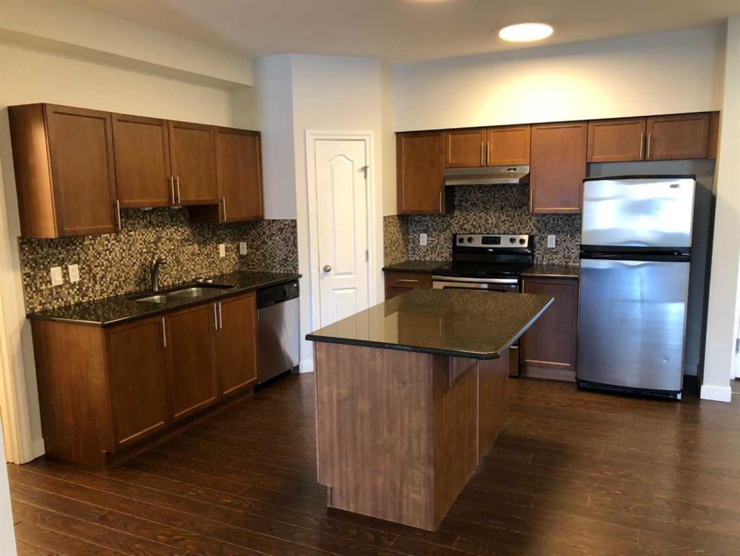 Dishwasher, Electric Stove, Range Hood, Refrigerator, Washer/Dryer Stacked