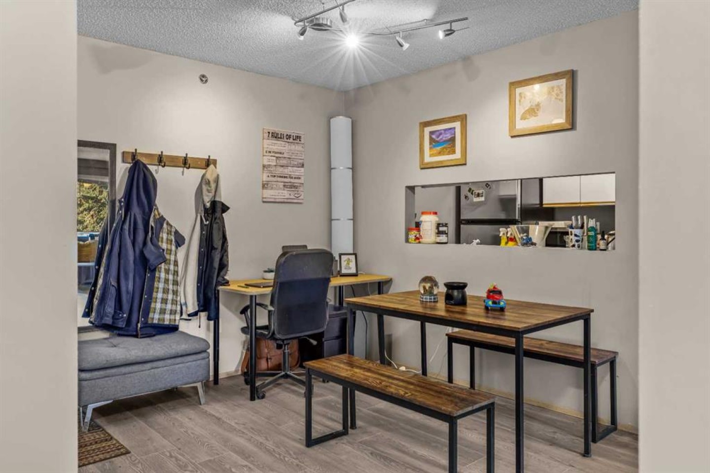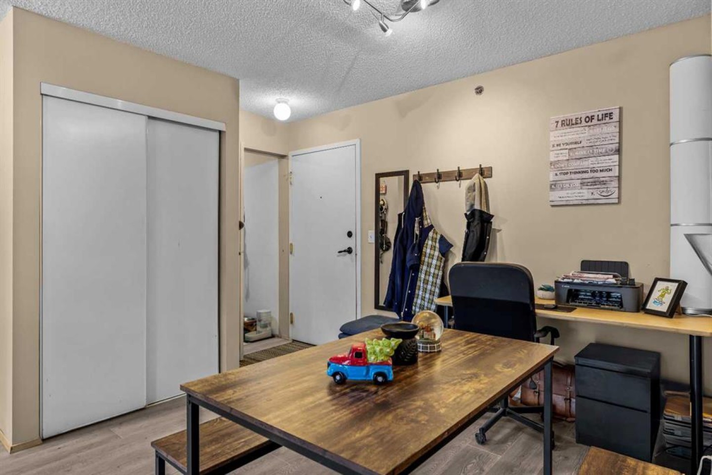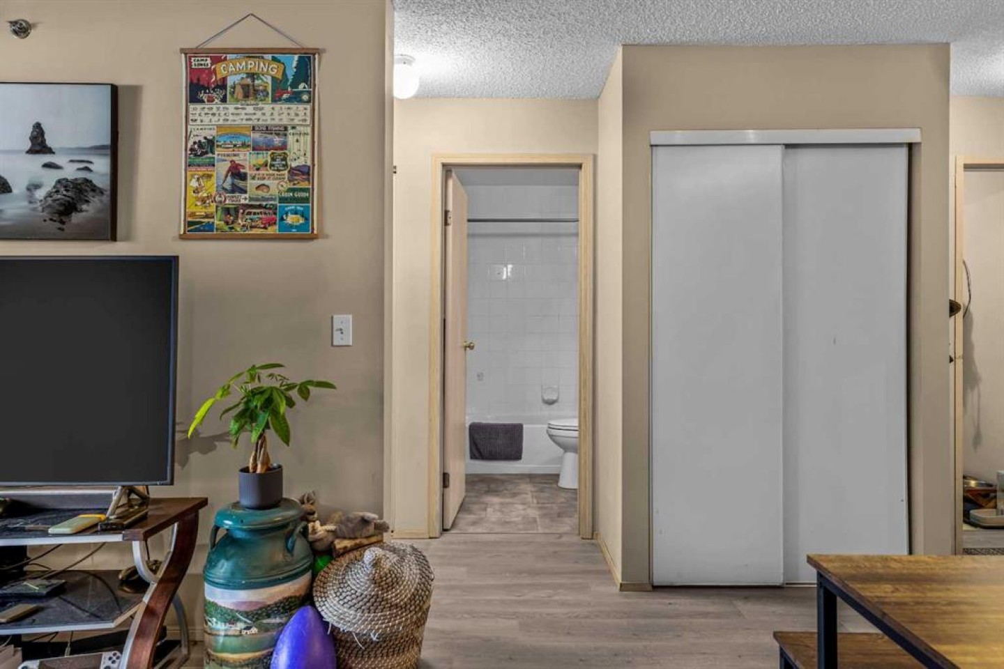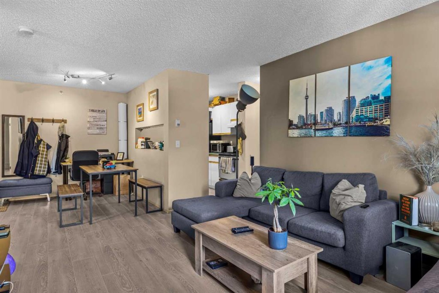 This Point of View condo delivers exceptional value for anyone looking to enter the Canmore market—whether as a first home or a smart investment. This 2-bed, 2-bath top-floor unit sits in a quiet, family- and pet-friendly community and offers over 800 sq ft of inviting, functional living space. Recent flooring updates complement the open-concept layout, with seamless flow into the kitchen and living area. The ideal split-bedroom design places each bedroom on opposite sides of the unit, creating privacy for owners, guests, or roommates. The primary suite features a generous walk-through closet and a full ensuite. A standout feature is the large in-suite laundry and storage room, providing secure space for all your mountain gear. Step outside to a comfortable patio with partial mountain views and natural shade from mature trees—perfect for warm summer days. The complex includes 2 outdoor parking stalls, ample visitor parking, and an on-site playground framed by stunning mountain scenery. With its thoughtful layout, peaceful setting, and attractive price point, this condo truly checks all the boxes. Book your showing today.