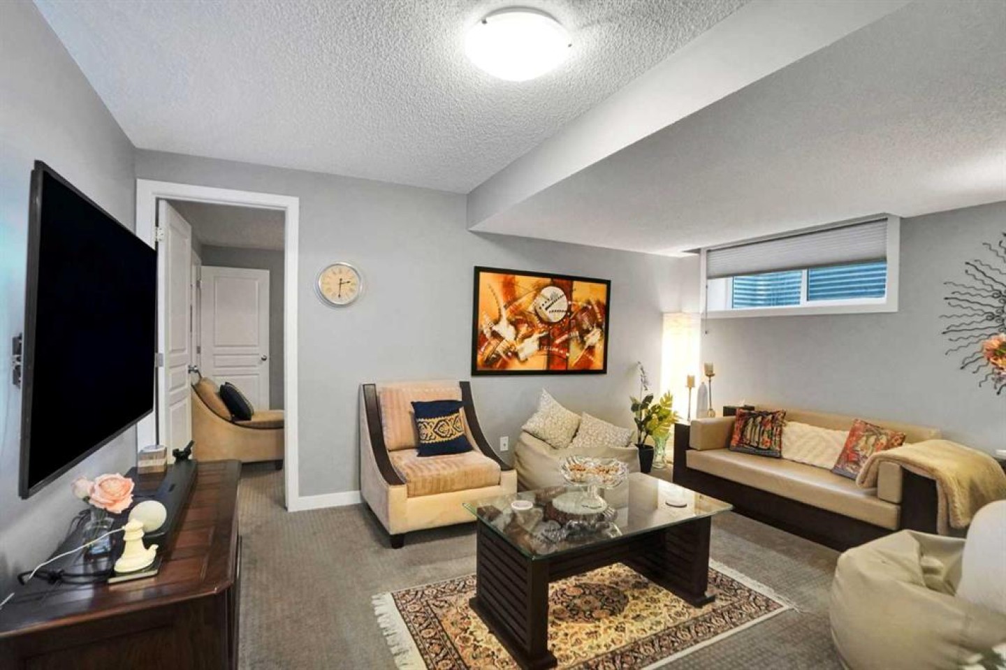 WELCOME TO THE Desirable Community of SAGE HILL, over 2000 sqft 2 story 4 bedrooms townhouse with single front attached garage & 3 full & one half washroom. If you are looking for that first home in a growing community, look no further! This house is loaded with tons of upgrades – 9’ ceilings on the main floor. Basement is fully finished with one bedroom, rec room & one full washroom. Ideally located close to all amenities, Stoney Trail ring road, Shaganappi Trail , minutes away from Sage Hill Shopping Centre, Walmart, Costco, Tim Hortons, McDonalds, Starbucks, and just steps away from green space & walking paths exactly what you are looking for. This east facing home welcomes you with an open concept layout. As you enter, you are met by a decent size foyer. You will love the gleaming LVP flooring on the main floor. Your new kitchen boasts lots of full height cabinetry and a built-in pantry, all stainless steel appliances Gas Stove, Refrigerator, microwave Hood fan, Dish-washer, washer & dryer & Central A/C. The dining area is just off the kitchen with plenty of space for a large table. The spacious living room is flooded with tons of natural light. A 2-piece washroom completes the main floor. Upper level features a large size primary bedroom with a 4-piece bathroom (tub/shower) and walk-in closet, plus 2 other decent size bedrooms and a full 4-piece washroom to complete this level. Fully finished basement with a huge size bedroom, large rec room, one full washroom & laundry. All appliances & central A/C included. Enjoy the nice west backyard & patio where you can BBQ, relax, and enjoy your sunny days*Don't miss your chance to own this exceptional property - schedule a Private viewing today and prepare to be impressed!